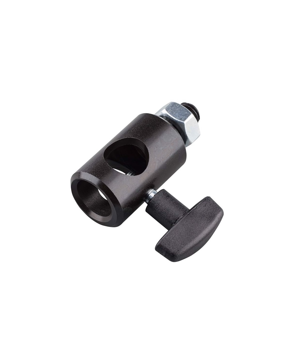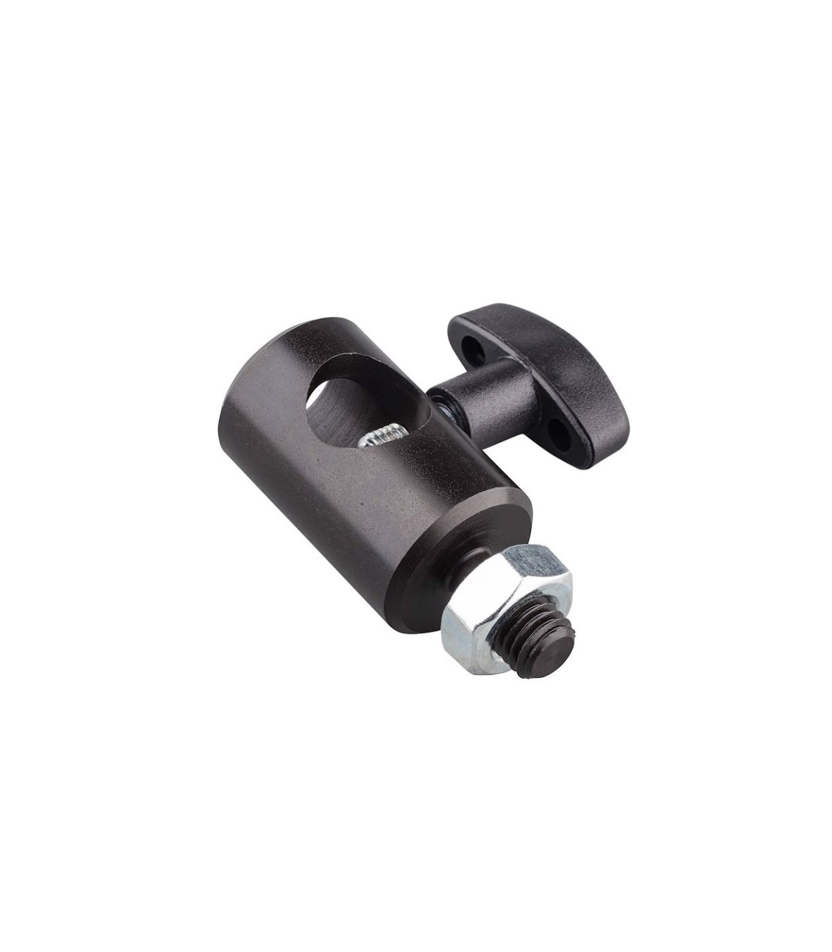 Manguito de 16mm a macho M10; de aluminio negro. También conocido como hembra o adaptador. Longitud 5,8cm y peso 0,09kg. Para adaptar focos y antorchas pequeñas a trípodes y pinzas.