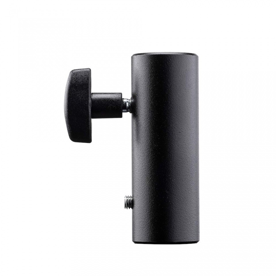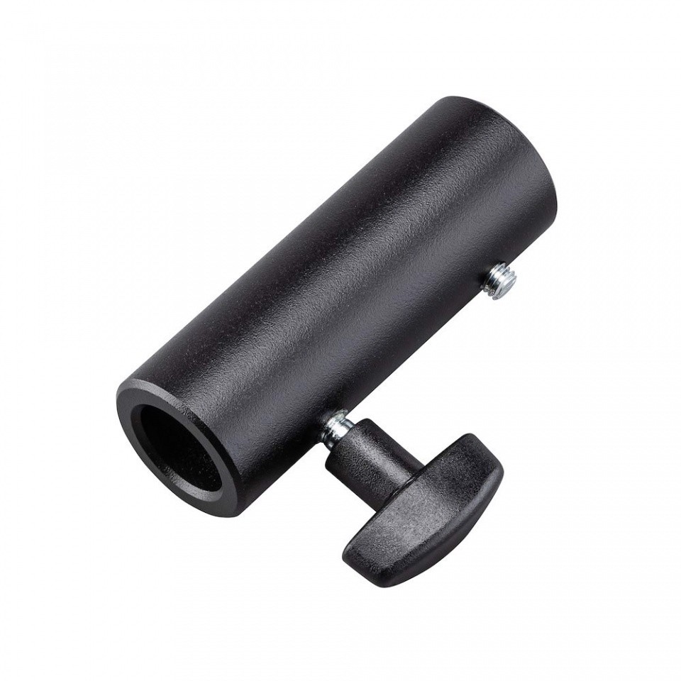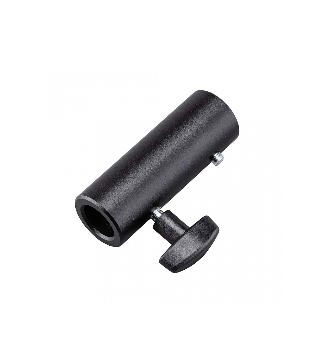 Manguito de 16mm a manguito de 17mm, de aluminio negro. También conocido como hembra o adaptador. Longitud 7,8cm y peso 0,14kg. Para adaptar focos y antorchas pequeñas a trípodes y pinzas.