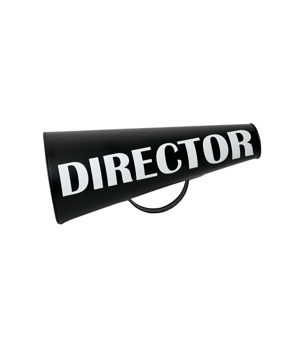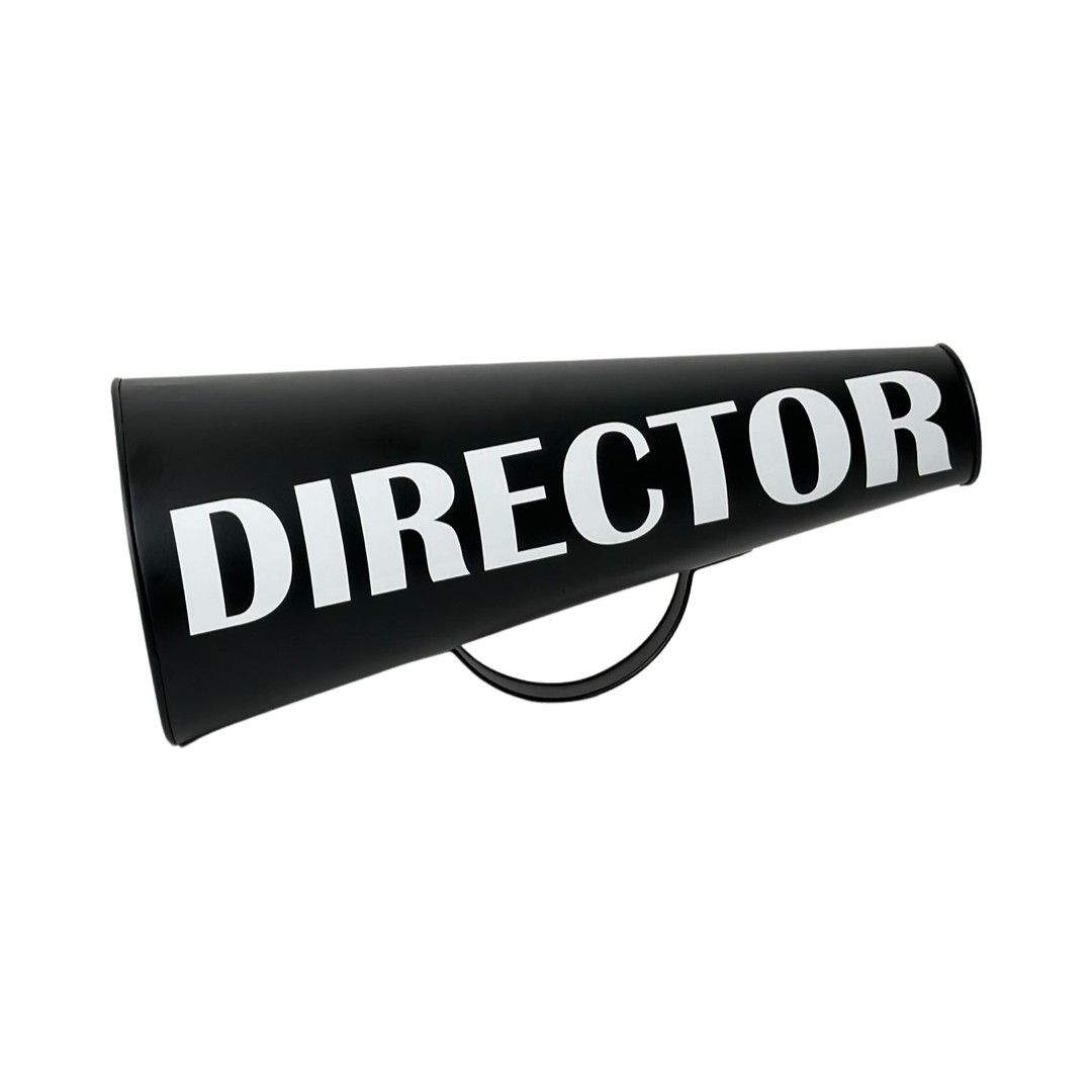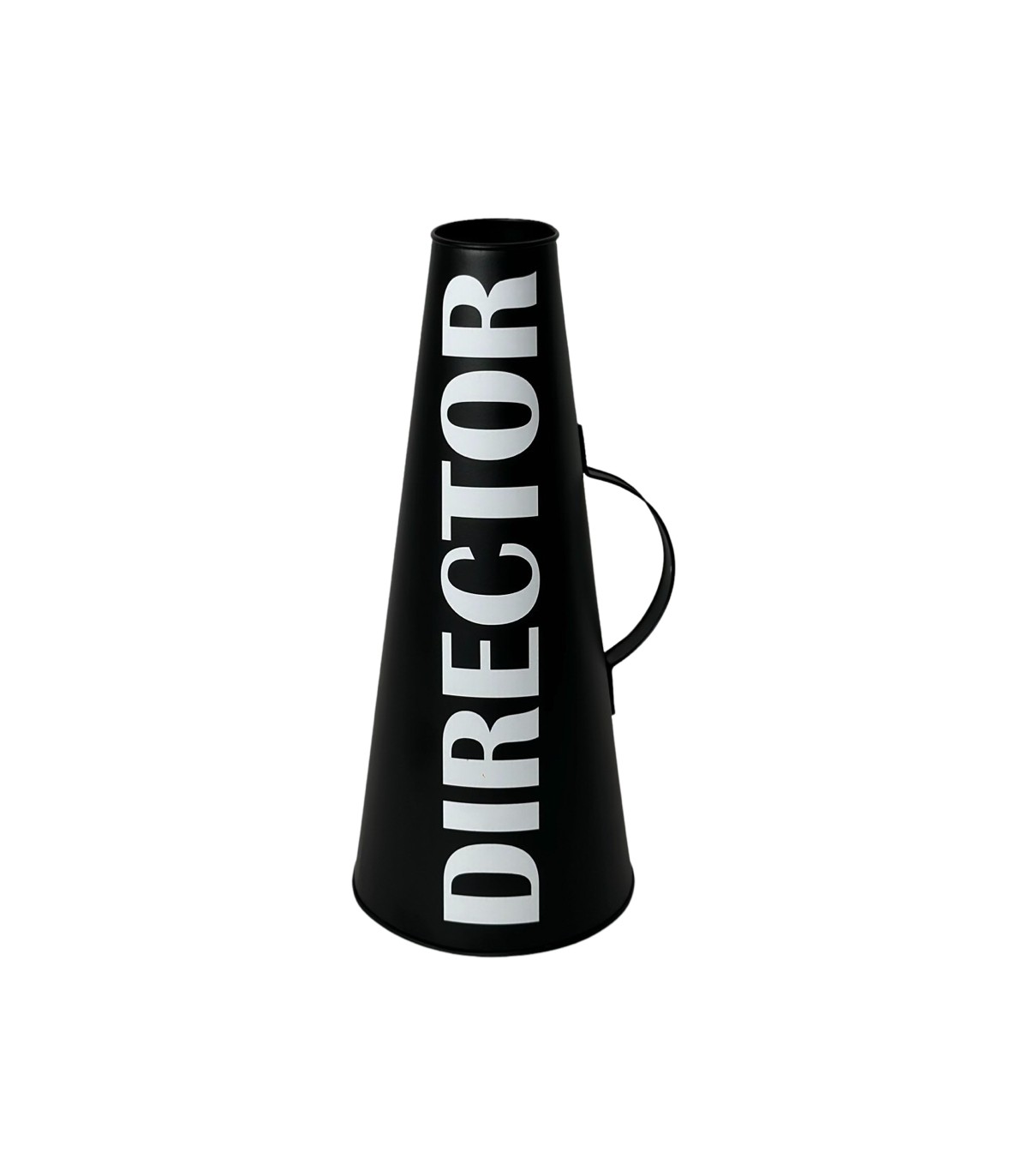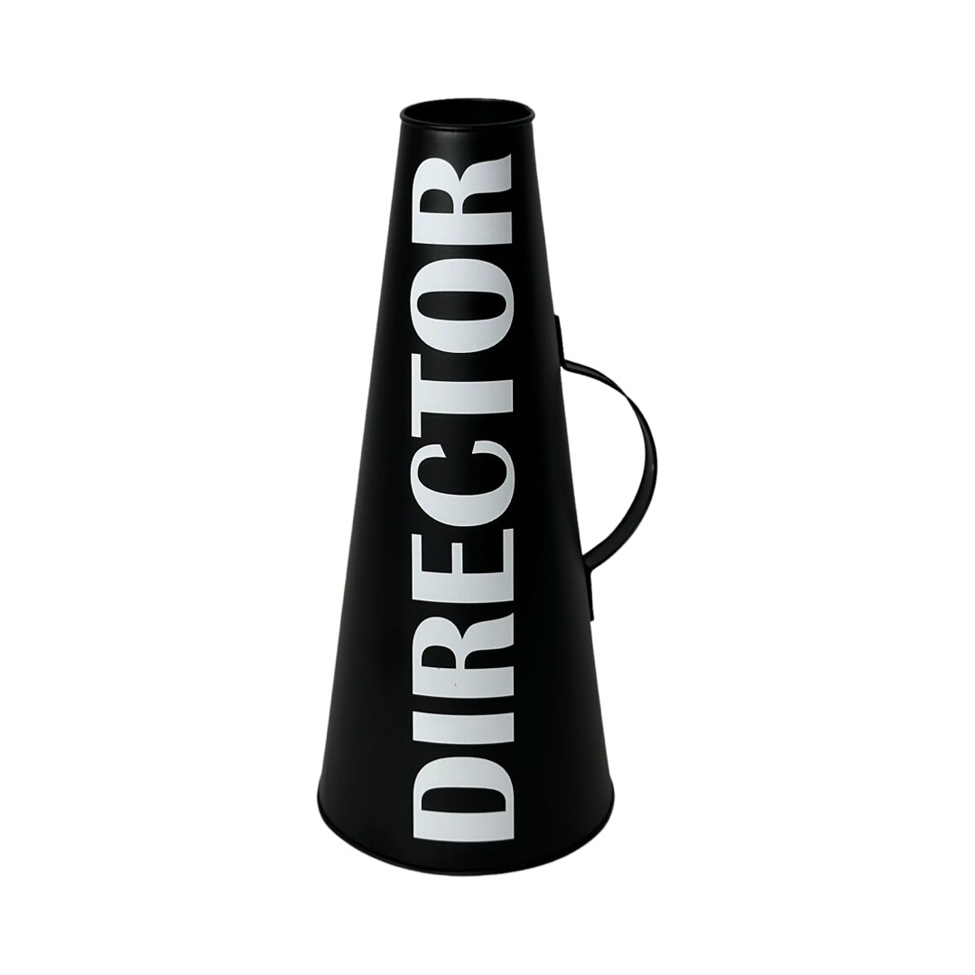 Megáfono retro de Director de cine en color negro y serigrafía en blanco "Director".
