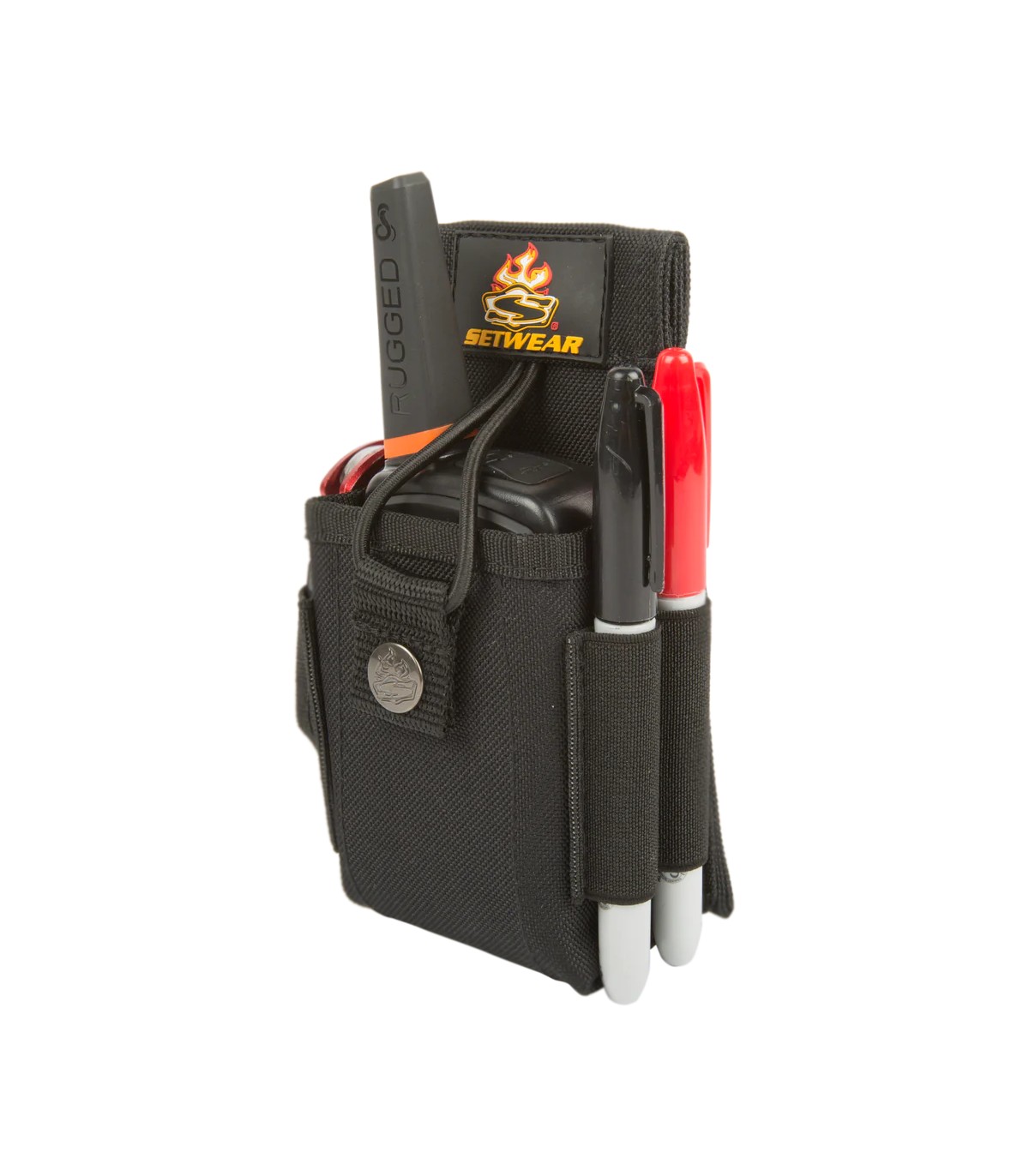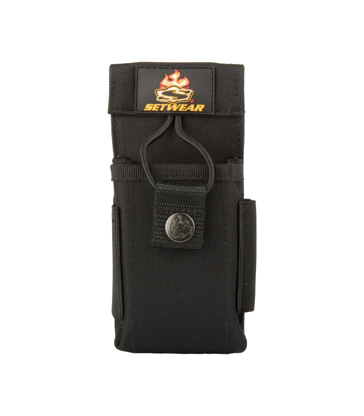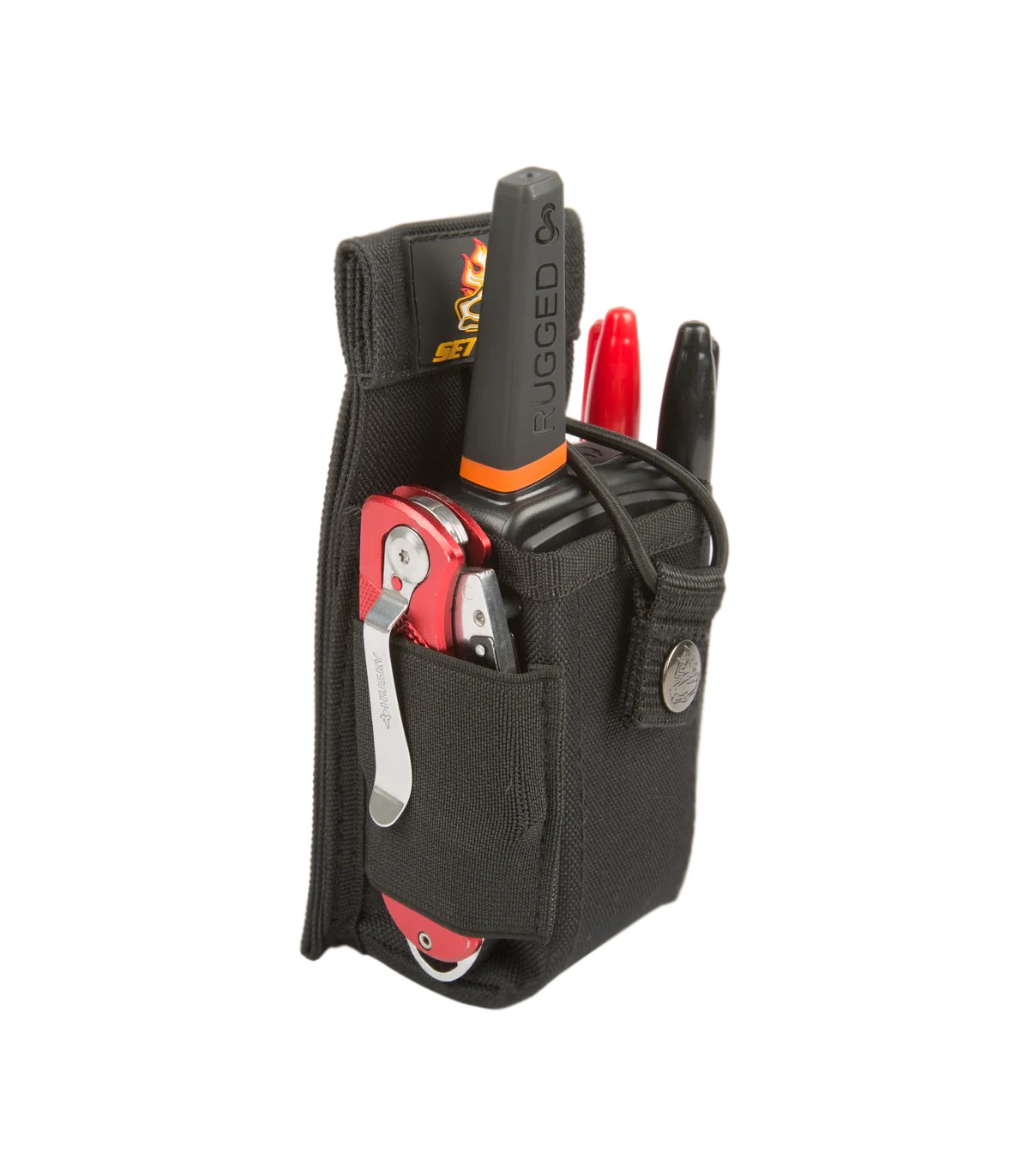 Porta Radio en poliéster, EVA y PVC negro, con trabilla amplia para cinturones de hasta 7,6cm, de Setwear. El Radio Pouch sirve para tener siempre el walki a mano colgado del cinturón. Presenta el nuevo sistema Silent on Set. Los días de preocuparse por ser demasiado ruidoso han terminado. El nuevo sistema de cierre de apertura automática silencioso agrega facilidad a todos los trabajadores detrás de la escena. Ya no tendrás que preocuparte de que el velcro moleste en el set. Esta característica le permite entrar y salir de sus bolsas sin hacer ruido. Todos los productos que cuentan con el cierre Silent on Set también contarán con un sistema de retención ajustable. El usuario tiene control total sobre la holgura o la tensión del cordón de cierre. Esto también permite al usuario reemplazar el cordón en caso de que pierda elasticidad.