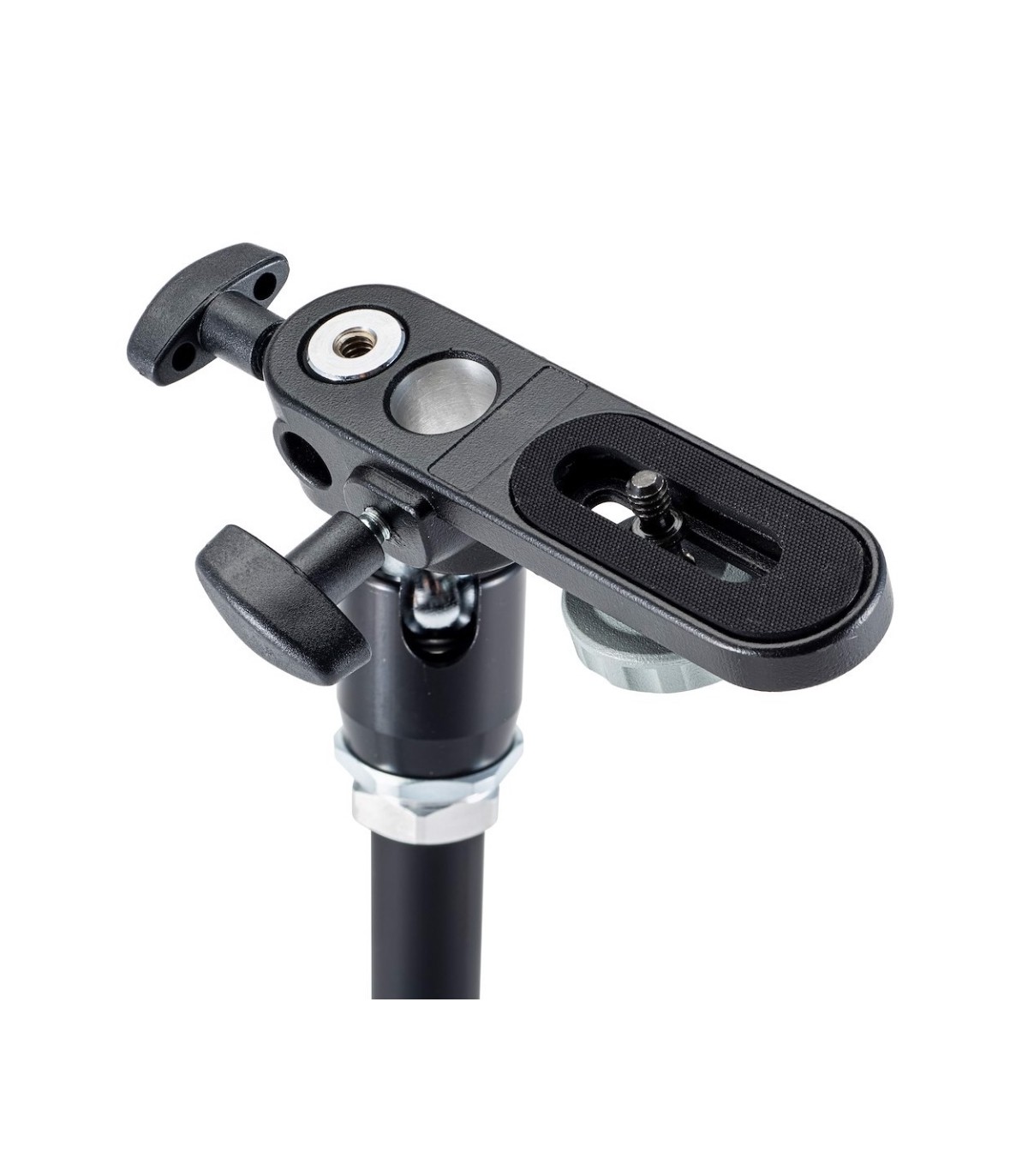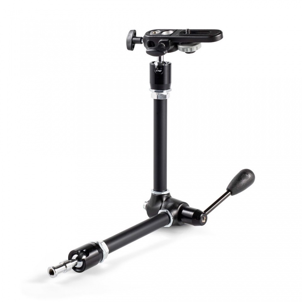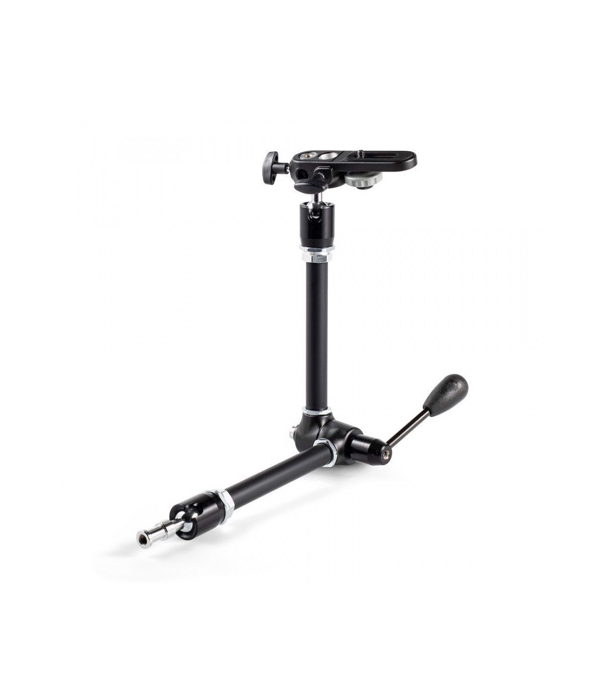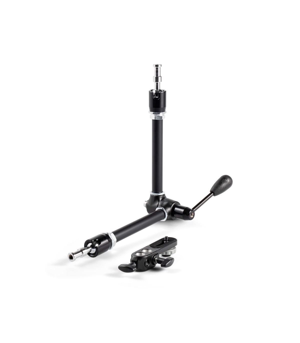 Brazo Mágico de aluminio negro y acero con palanca de bloqueo automática. Con 2 espárragos 16mm con hembras 1/4" y 3/8", y palanca de bloqueo automática.Incluye también soporte a cámara 143BKT, pinza Súper 035 y base trípode 003 con manguito 16mm. Longitud 53cm. Capacidad 3kg, peso 2,55kg. Válido tanto para cámara como para focos.