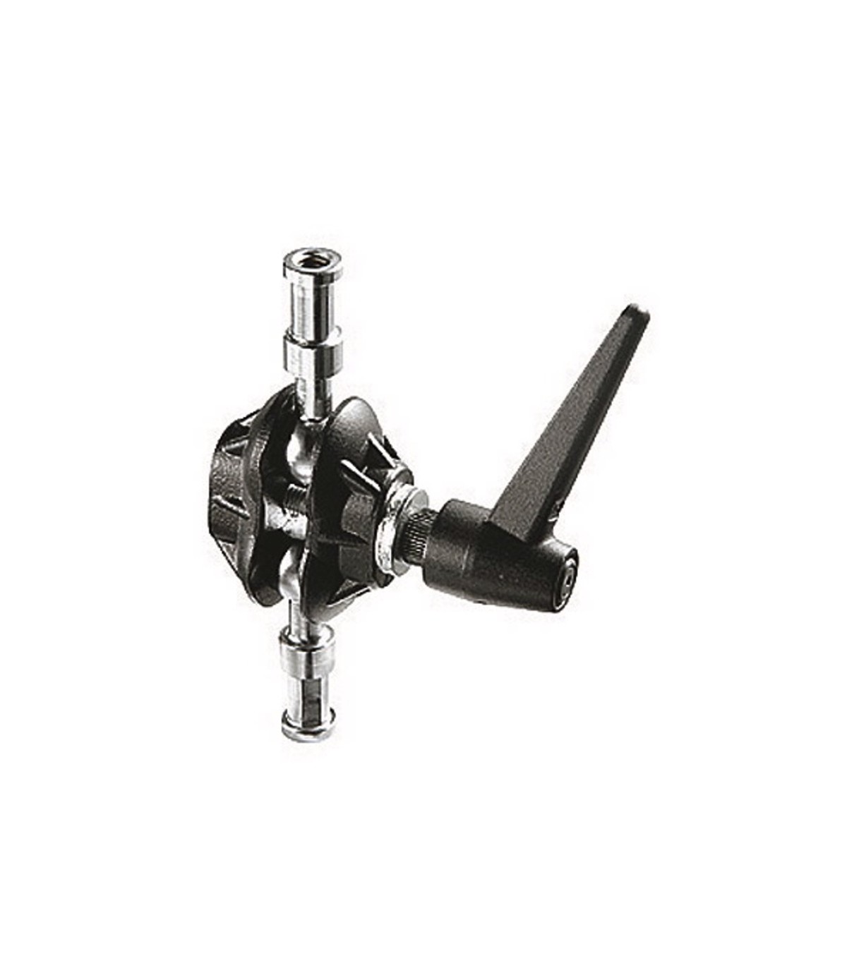 Rótula Tilt-Top de aluminio negro y acero para montar un foco en un trípode y darle la inclinación deseada. Con 2 espárragos de 16mm y hembras de 1/4" y 3/8", y palometa libre. Compatible con pinza Súper 035 y C1575B.