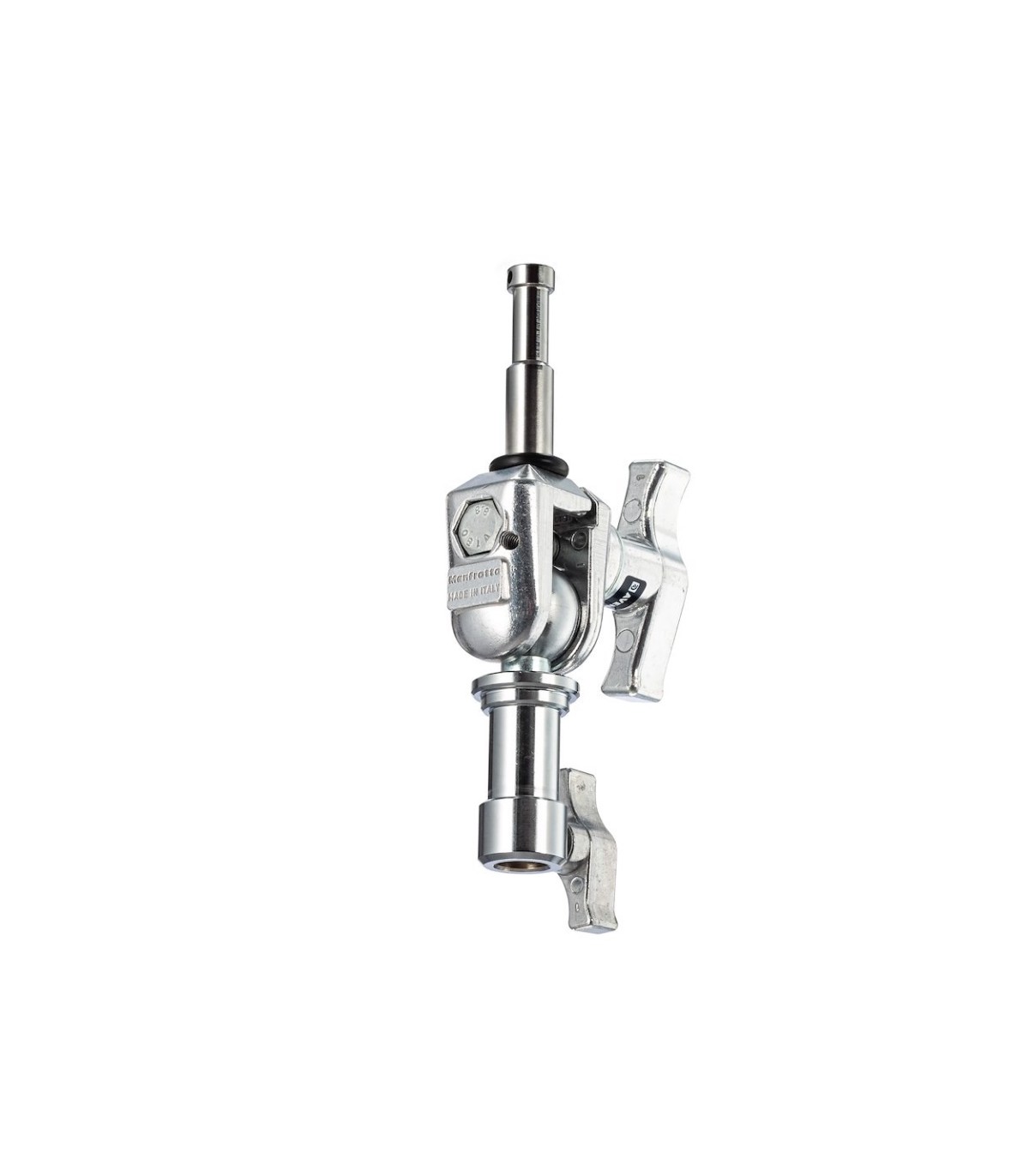 Rótula Tilt Top de acero cromado para montar un foco en una rótula Ceferino o un trípode y darle la inclinación deseada. Con espárrago de 16mm, espárrago de 29mm con palometa y palometa ergonómica de fijación.