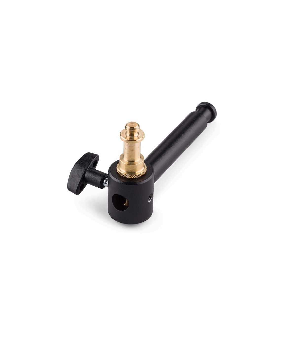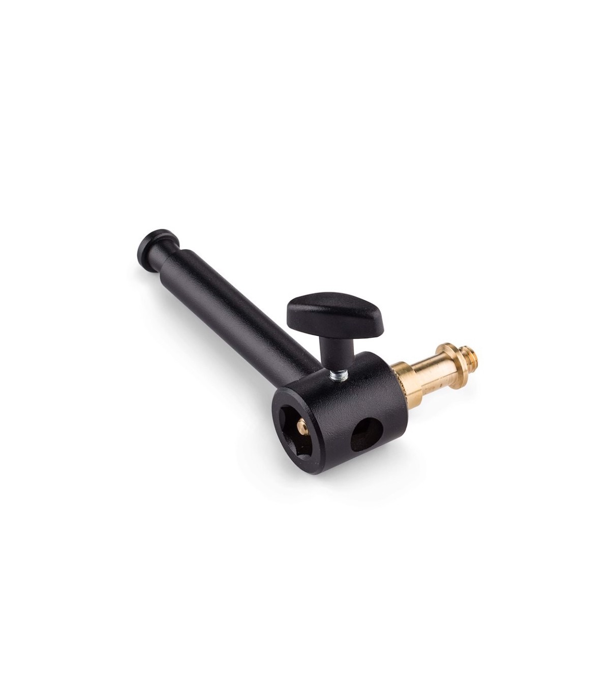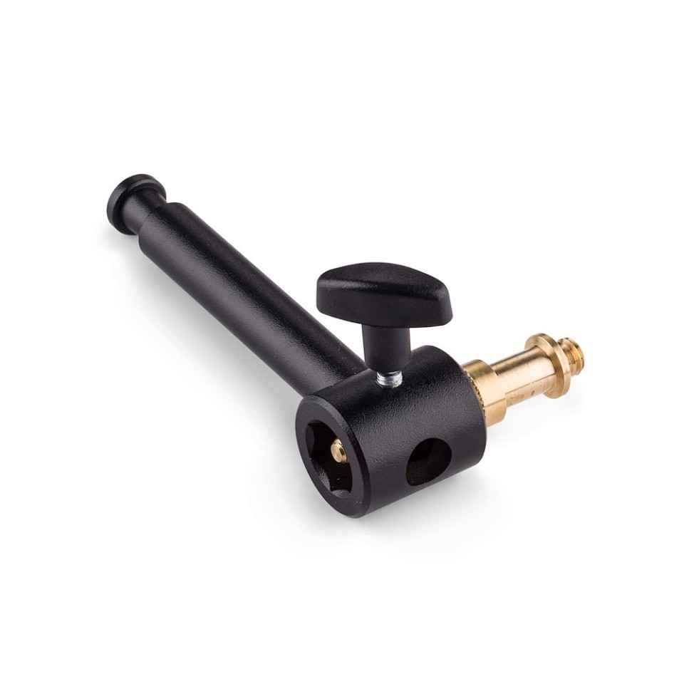 Mini Brazo extensible de aluminio negro de Manfrotto. Con manguito 16mm con palometa y 1 espárrago 16mm (013), y con espárrago 16mm en el otro extremo. Longitud 12cm. Peso 0,15kg.