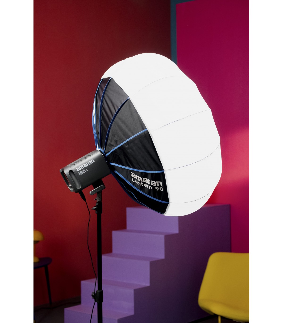 Lantern 90 de Amaran, de 90x57cm, con montura Bowens universal. Produce una luz de relleno 360º suave y envolvente. Incluye bolsa de transporte.