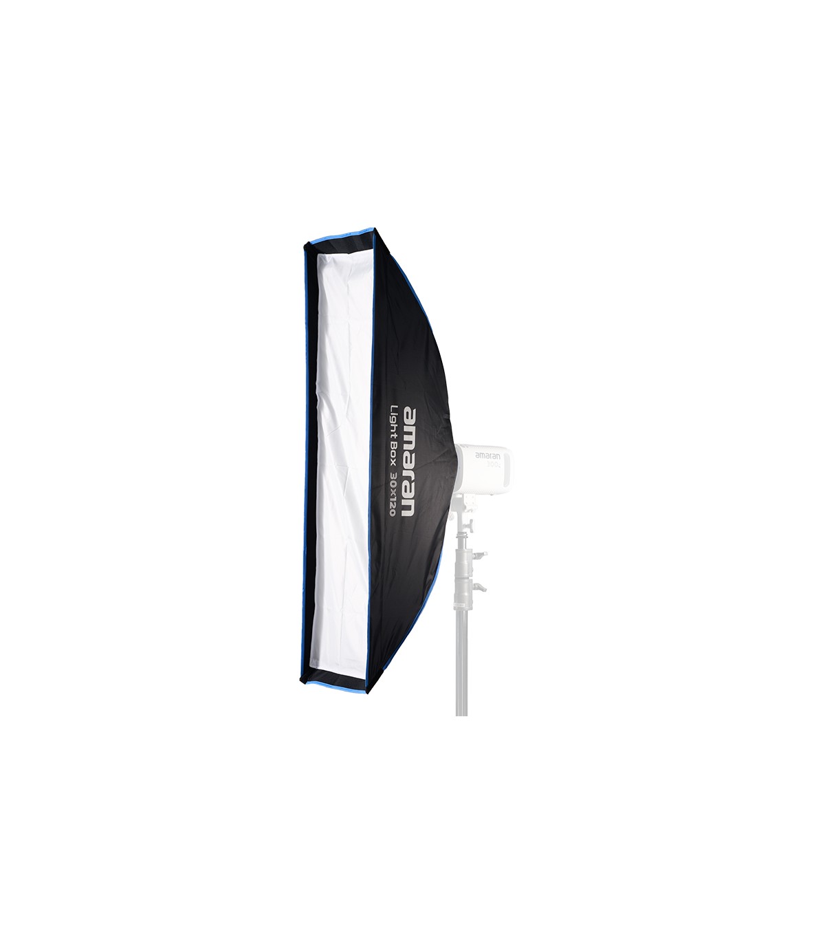 Caja de luz de 30x120cm con adaptador Bowens universal para los COB de Amaran (hasta 600W). Suaviza la luz y produce una amplia área de relleno suave y envolvente; reduce 1.5 stops.