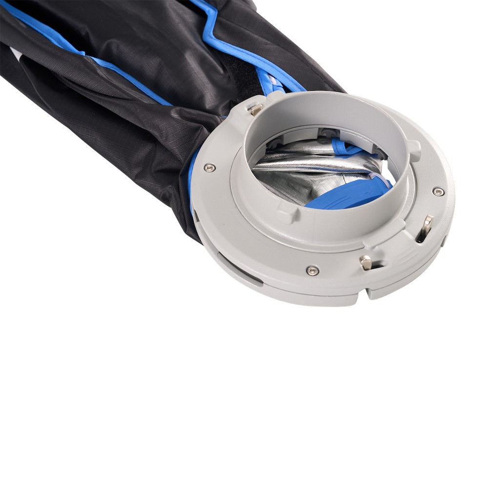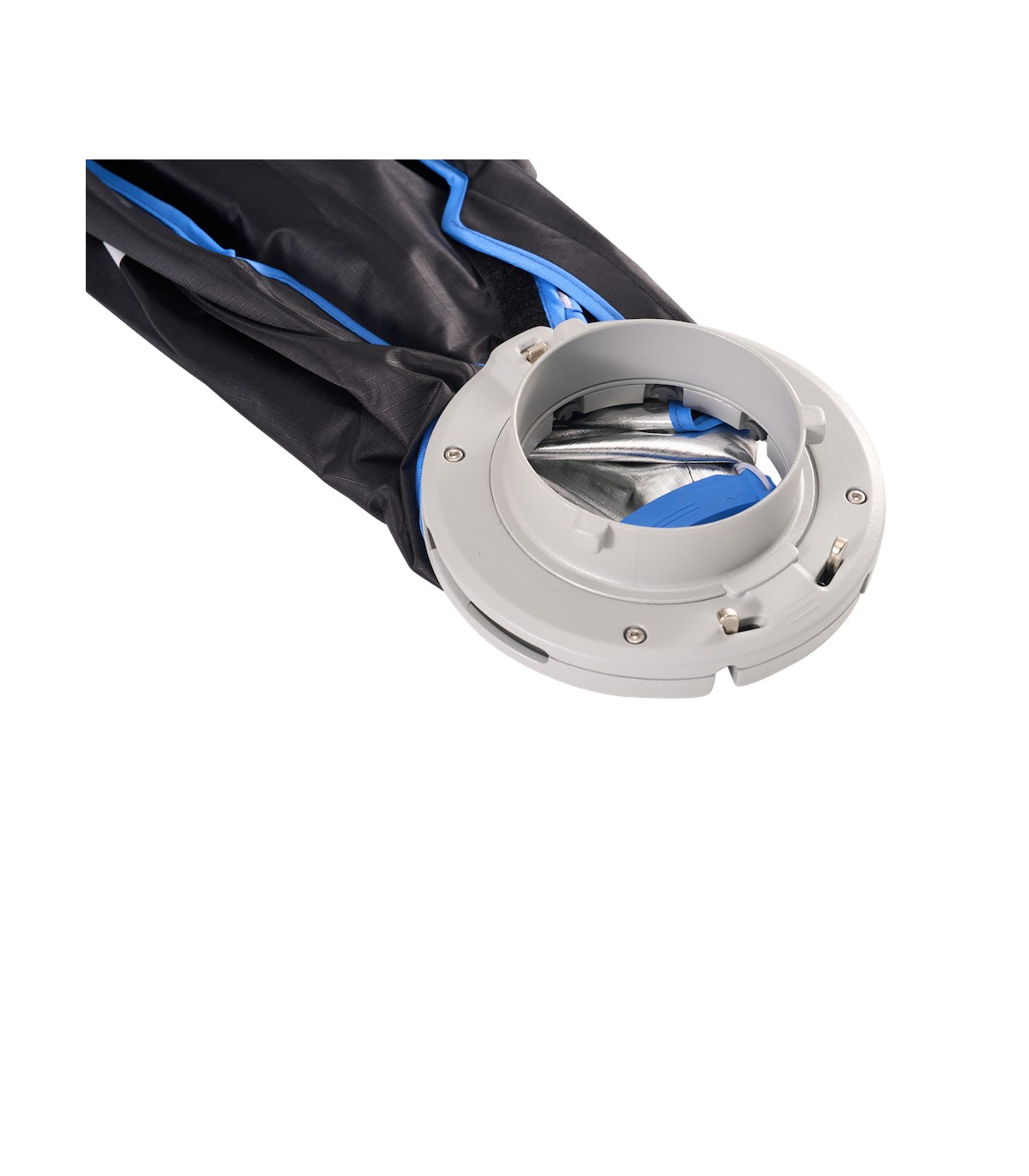 Incluye caja de luz, difusor externo de 1.5 stops, difusor interno, nido de abeja y bolsa de transporte. Indicada para luz de retrato, y para simular luces lineares.