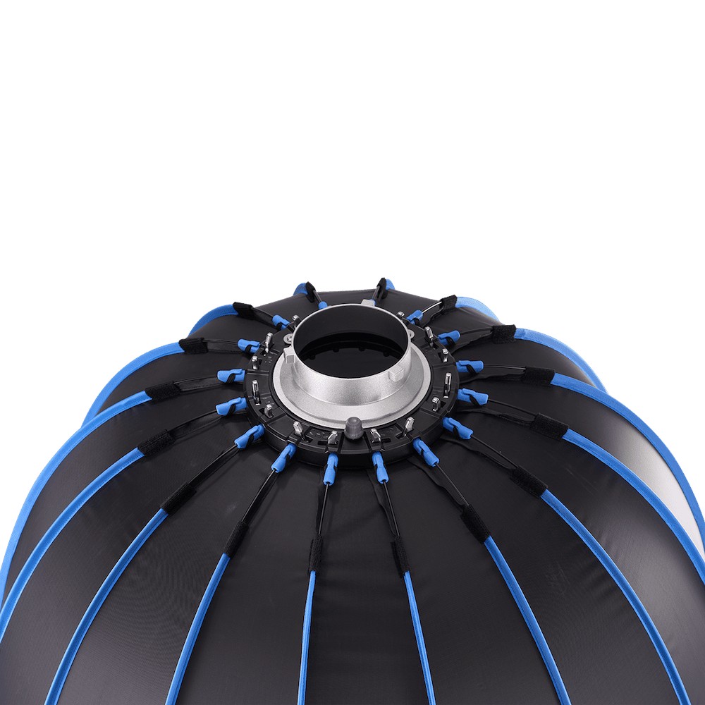 Caja de luz circular Light Dome 90, de 92x59cm con montura Bowens universal, para los COB Amaran. Suaviza la luz y produce una agradable área de relleno suave, circular y envolvente; reduce 1.5 stops.