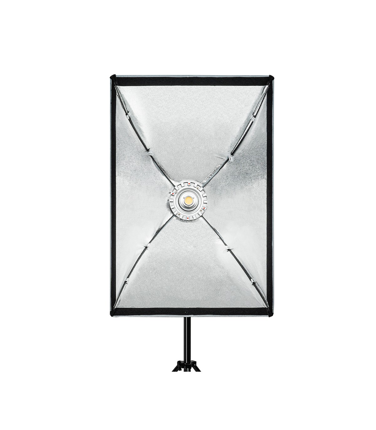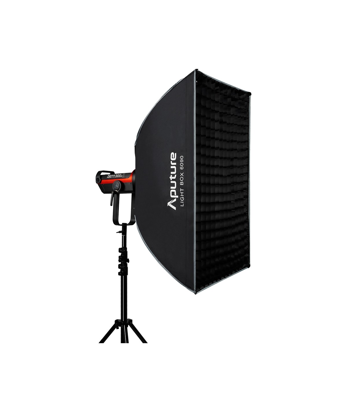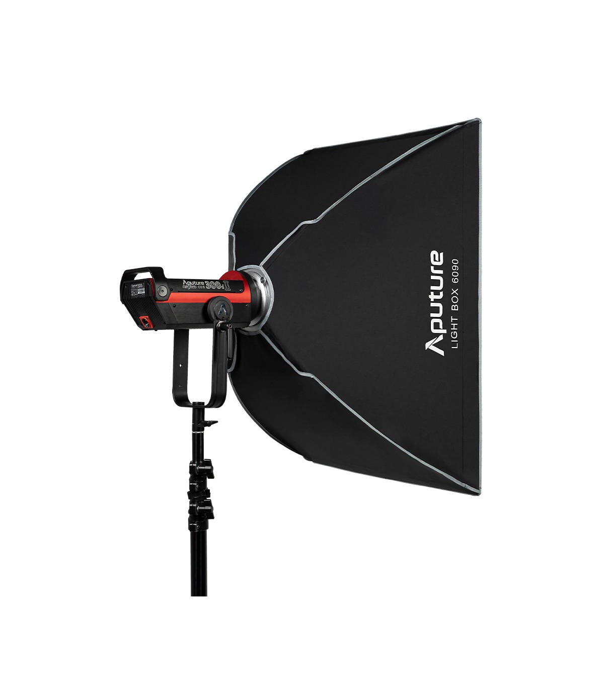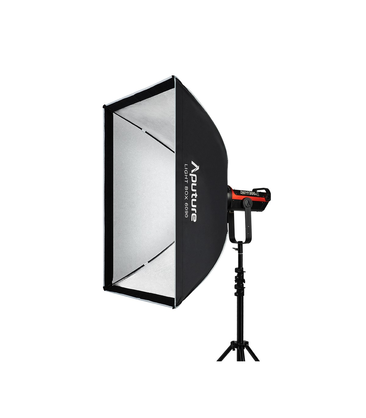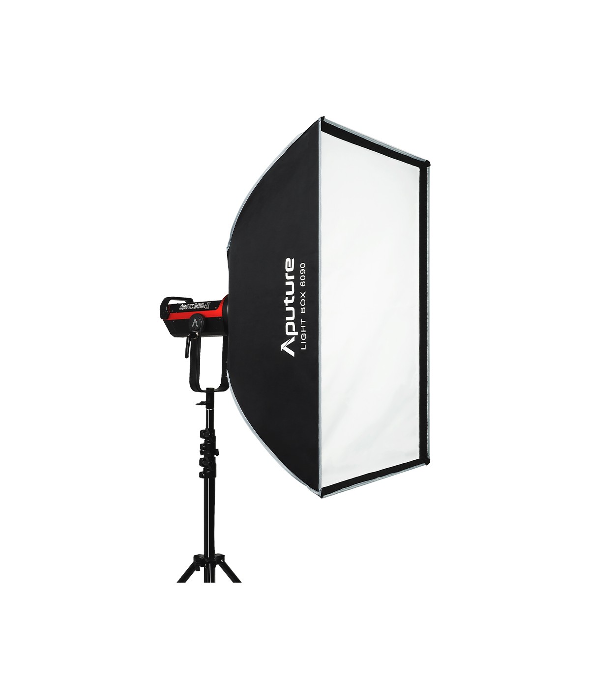Caja de luz de 60x90cm con adaptador Bowens para los Light Storm LS 1200, LS 600, LS 300, LS 60, COB 200, COB 100 y COB 60 de Aputure. Suaviza la luz y produce una amplia área de relleno suave y envolvente; reduce desde 1.5 stops hasta 4 stops dependiendo de la tela frontal.