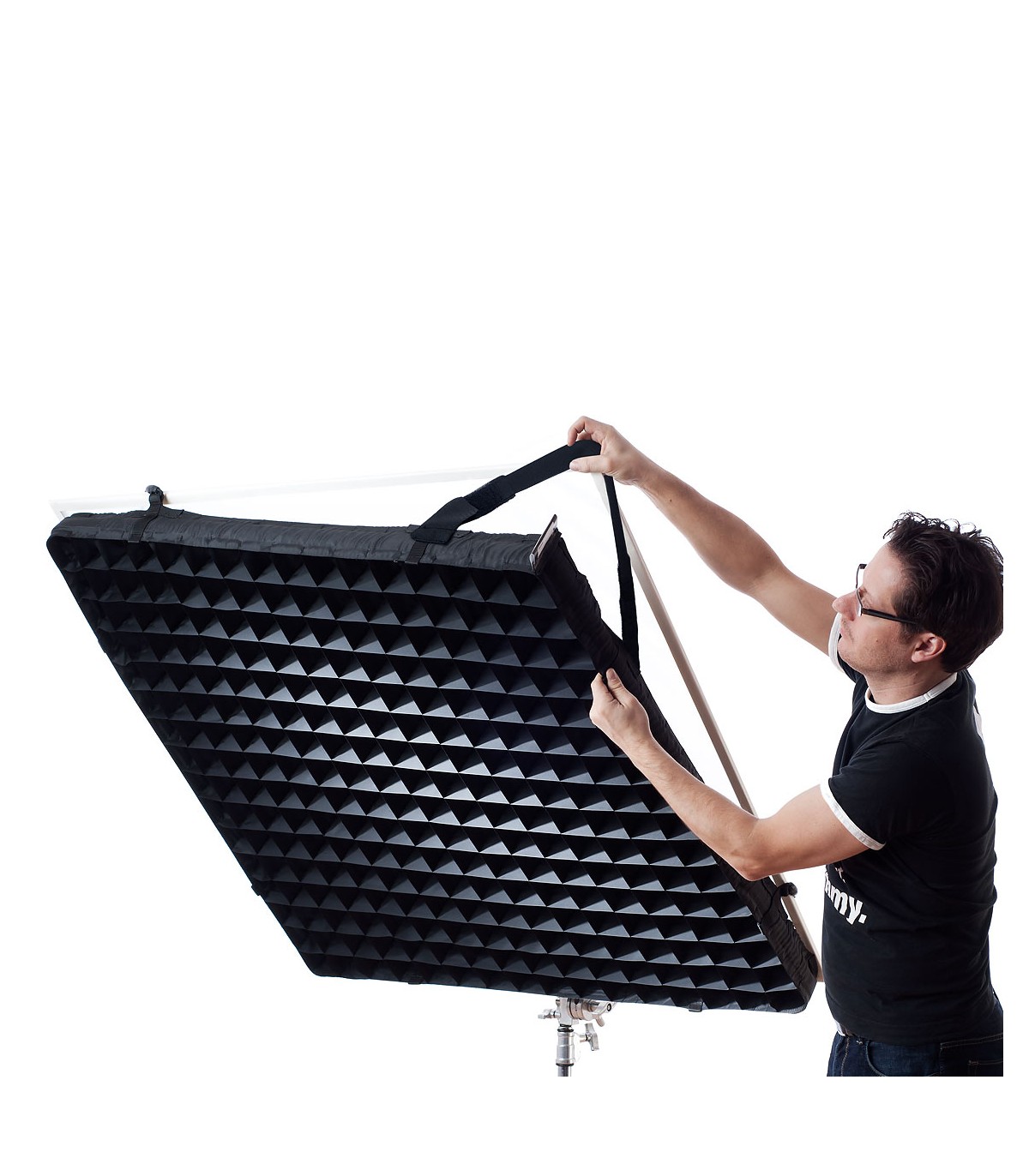 Eggcrate textil SNAPGRID® 50º para marco o SNAPBOX™ de 122x122cm de DoPchoice. También conocido como nido de abeja. Indicado para recortar la luz dejando sólo pasar un haz de 50º, impidiendo que la luz bañe zonas fuera del campo que nos interesa y también impidiendo que entre luz parásita a la óptica de la cámara.
