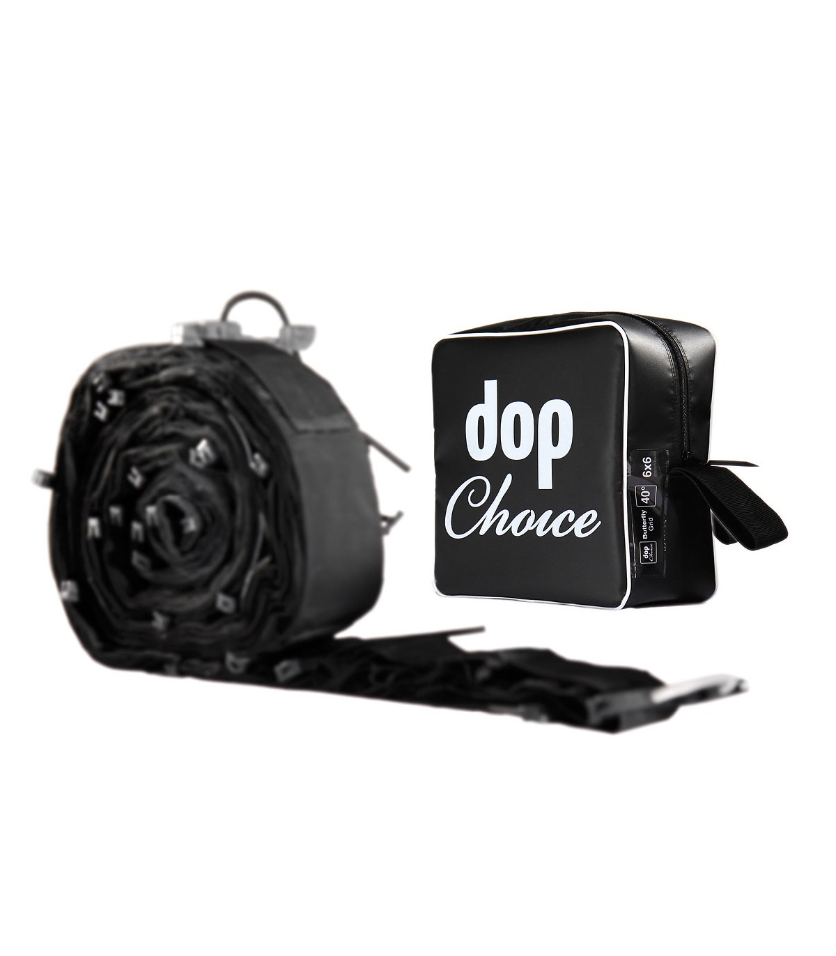 Eggcrate textil (Butterfly Grid) 40º para palio de 366x366cm, de DoPchoice. También conocido como nido de abeja. Indicado para recortar la luz dejando sólo pasar un haz de 40º, impidiendo que la luz bañe zonas fuera del campo que nos interesa y también impidiendo que entre luz parásita a la óptica de la cámara.