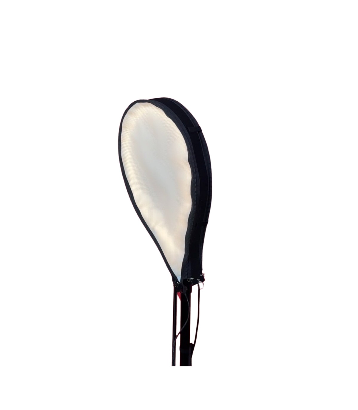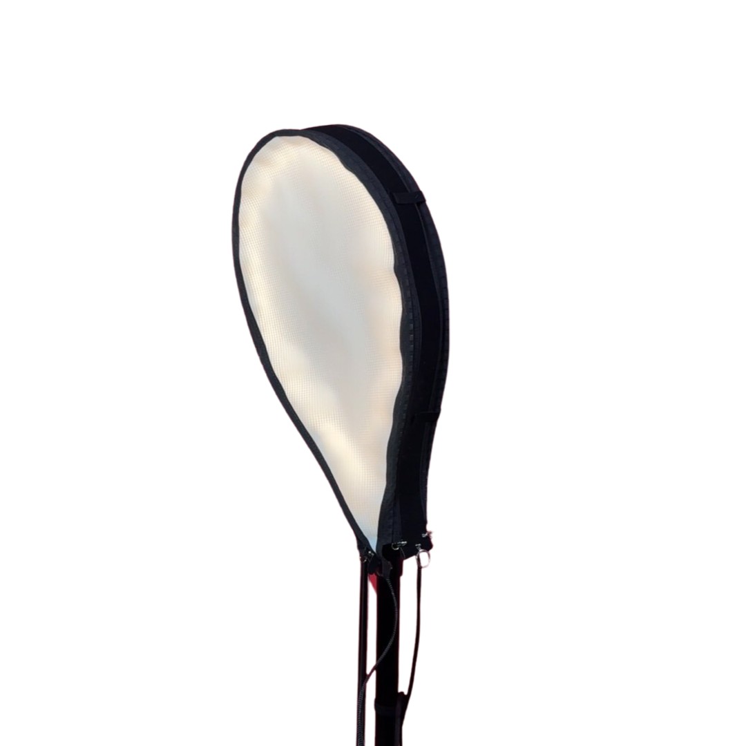 Caja de luz con forma de lágrima de 58x30cm, y 8cm de profundidad, para la Boa LED de 120cm de RubyLight. También conocida como ventana de luz en forma de gota de agua. Suaviza la luz y produce una área de relleno suave y ovalada que da un brillo especial a los ojos; reduce 2 stops. Incluye caja de luz de cierre magnético con difusor externo Magic Cloth de 2 stops y pletina con velcro y espárrago 16mm para montarla en un ceferino. Se monta directamente en la Boa con imanes