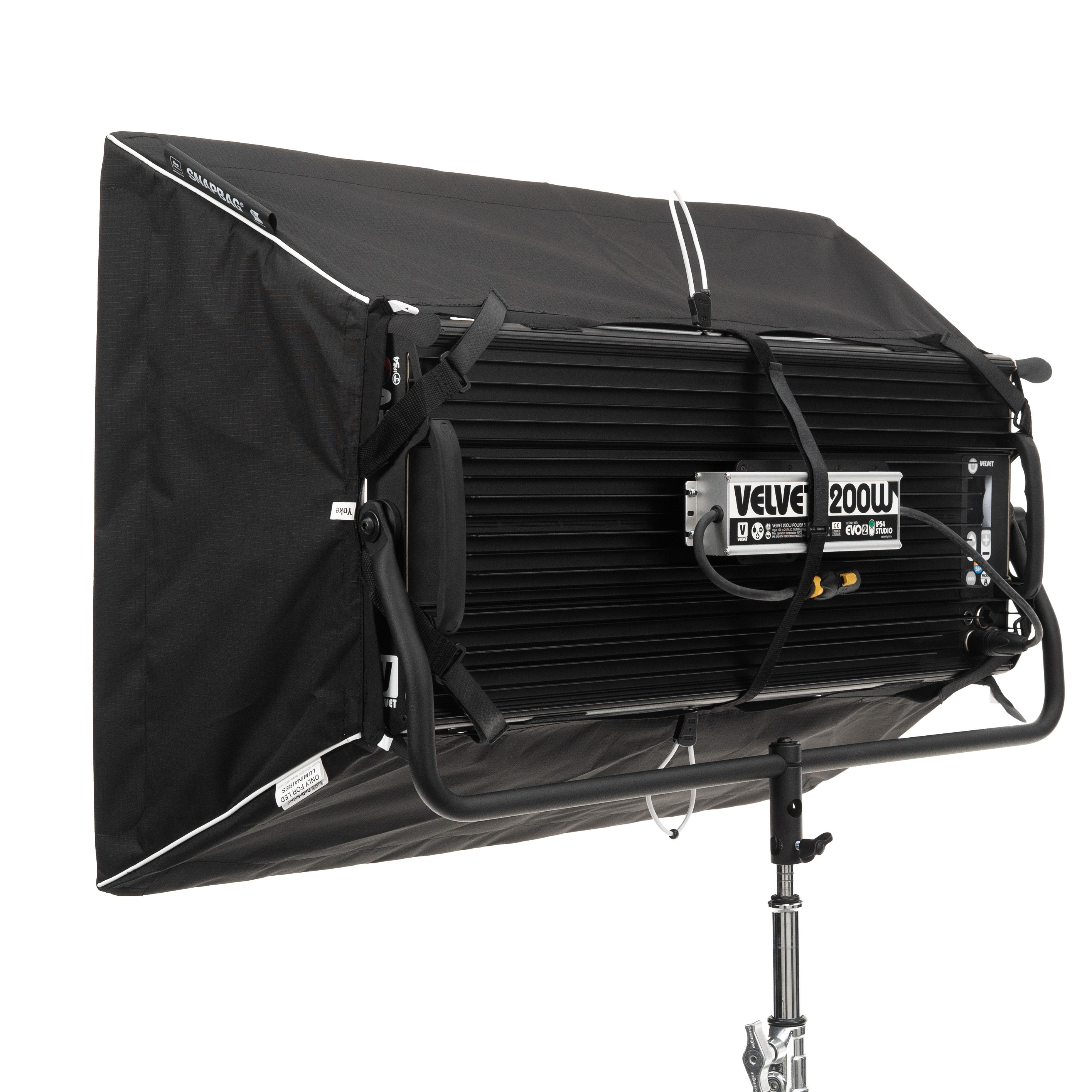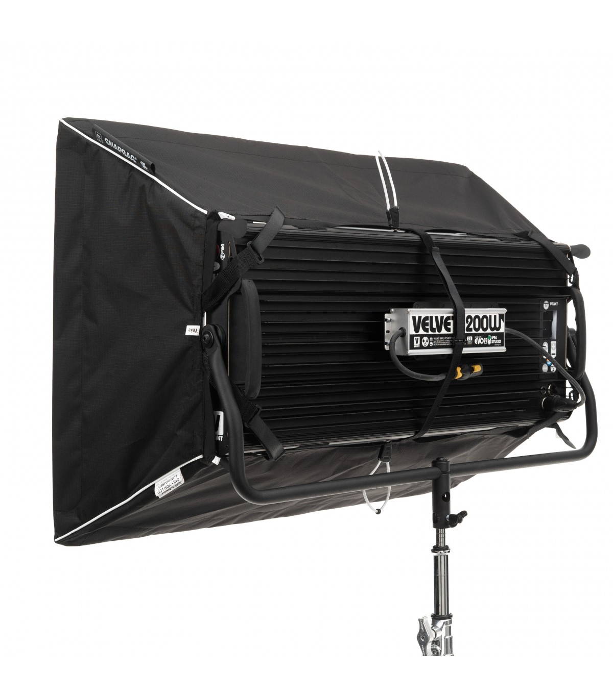 Caja de luz SNAPBAG® de DoPchoice, de 90x62cm y 30cm de profundidad, para panel Velvet Evo 2. También conocida como ventana de luz. Suaviza la luz y produce una amplia área de relleno suave y cuadrangular; reduce 1 stop. Incluye caja de luz, difusor externo Half Silent Grid Cloth de 1 stop y bolsa de transporte. Se monta directamente en el panel.