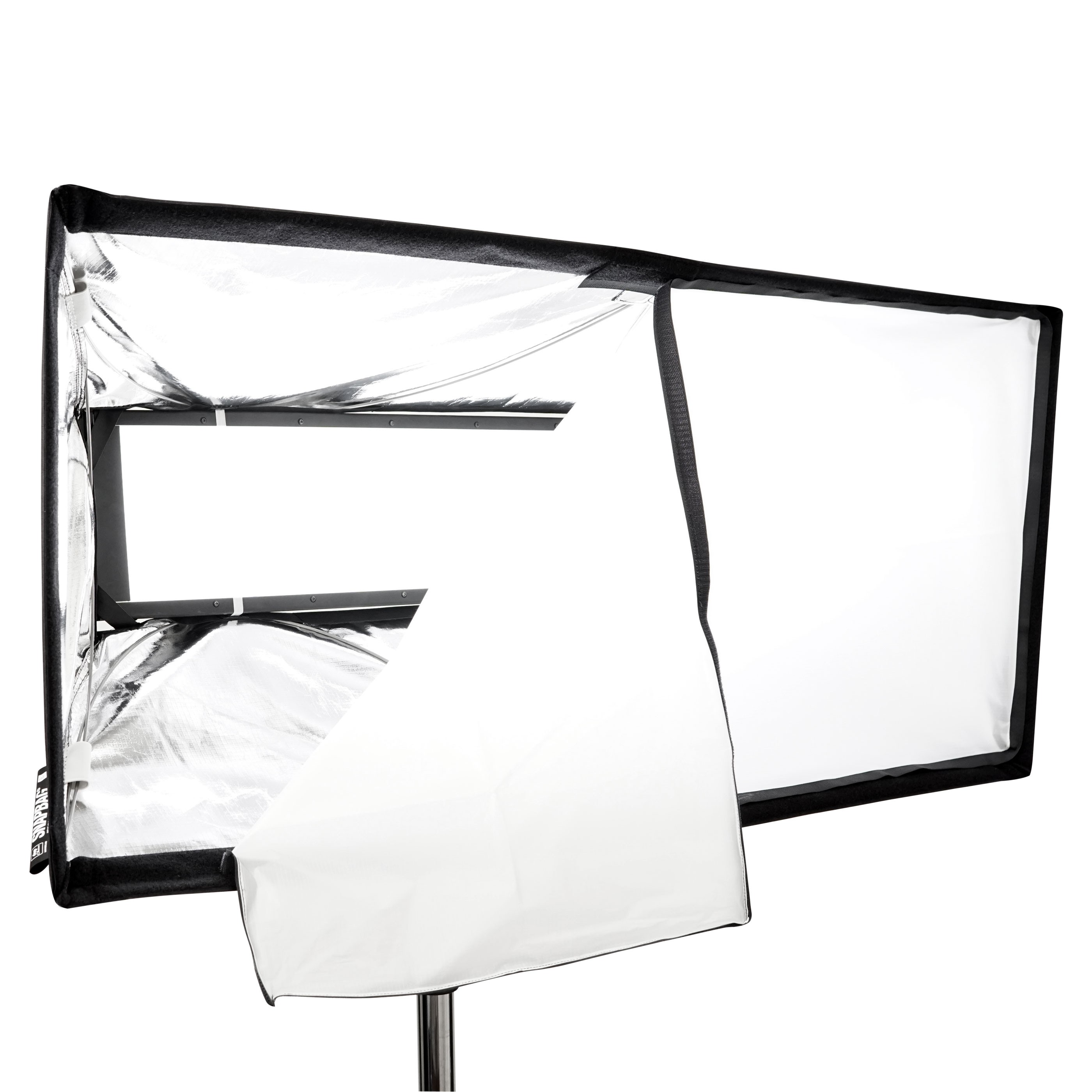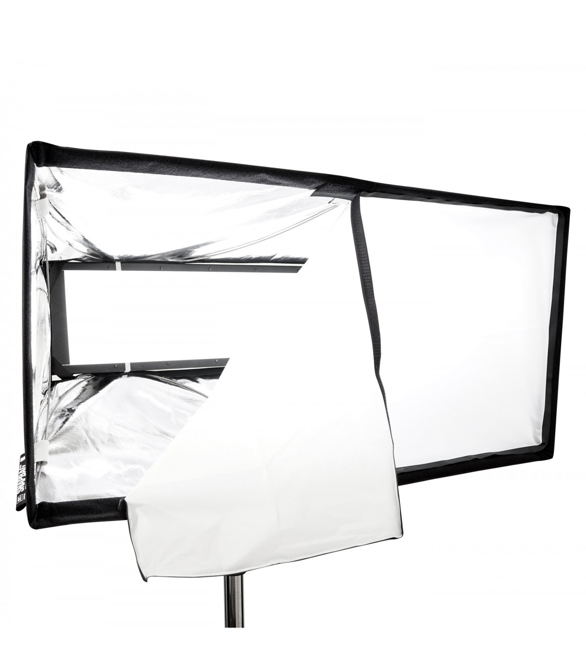 Caja de luz SNAPBAG® de DoPchoice, de 90x51cm y 30cm de profundidad, para paneles Velvet Mini Light 2 y Mini Power 2. También conocida como ventana de luz. Suaviza la luz y produce una amplia área de relleno suave y cuadrangular; reduce de 1 a 2 stops. Incluye caja de luz, difusor externo Half Silent Grid Cloth de 1 stop, 2 difusores internos y bolsa de transporte. Se monta directamente en el panel.