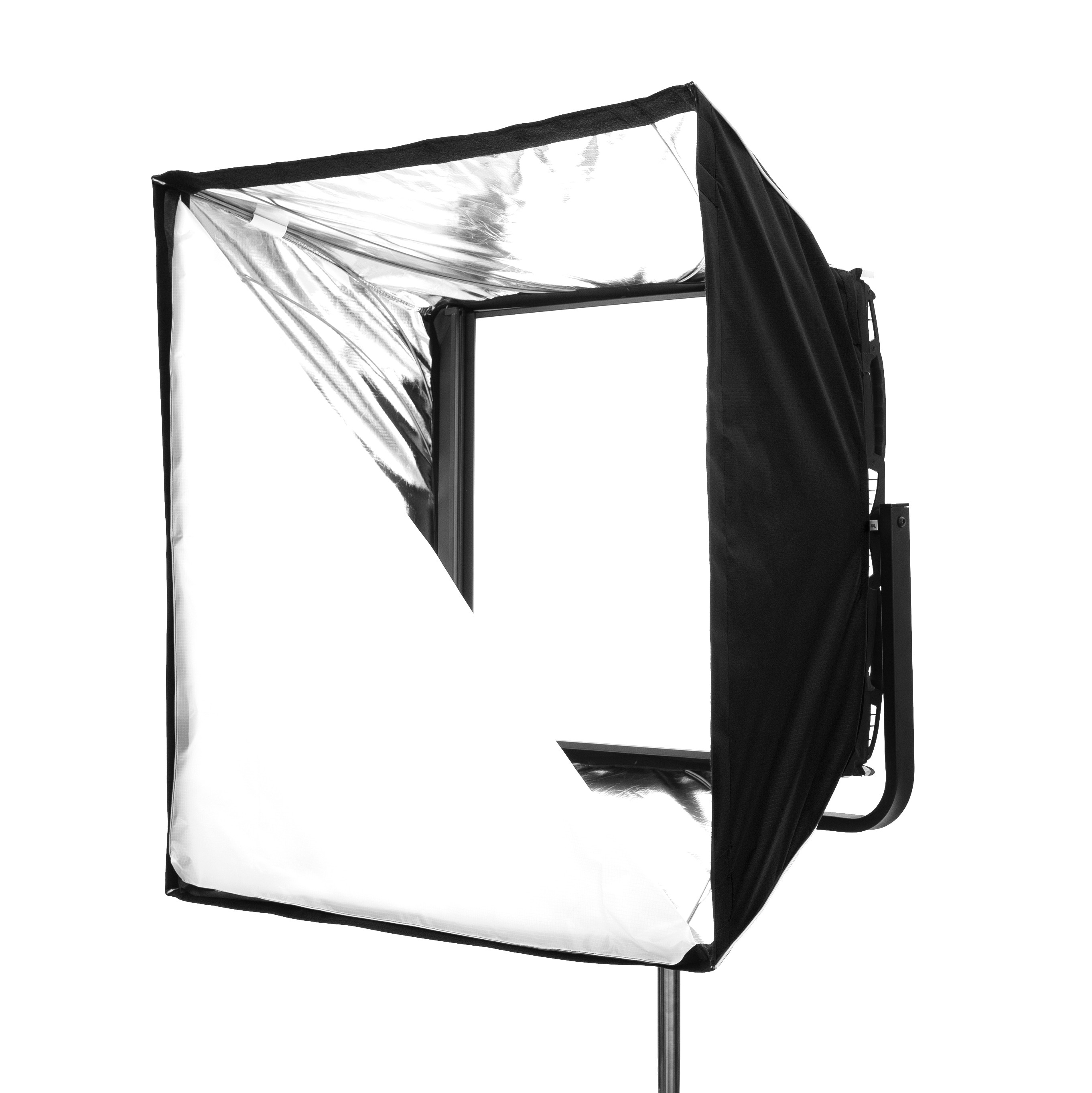 Caja de luz SNAPBAG® de DoPchoice, de 100x100cm y 47cm de profundidad, para panel Velvet Evo2x2. También conocida como ventana de luz. Suaviza la luz y produce una amplia área de relleno suave y cuadrangular; reduce 1 stop. Incluye caja de luz, difusor externo Half Silent Grid Cloth de 1 stop y bolsa de transporte. Se monta directamente en el panel.