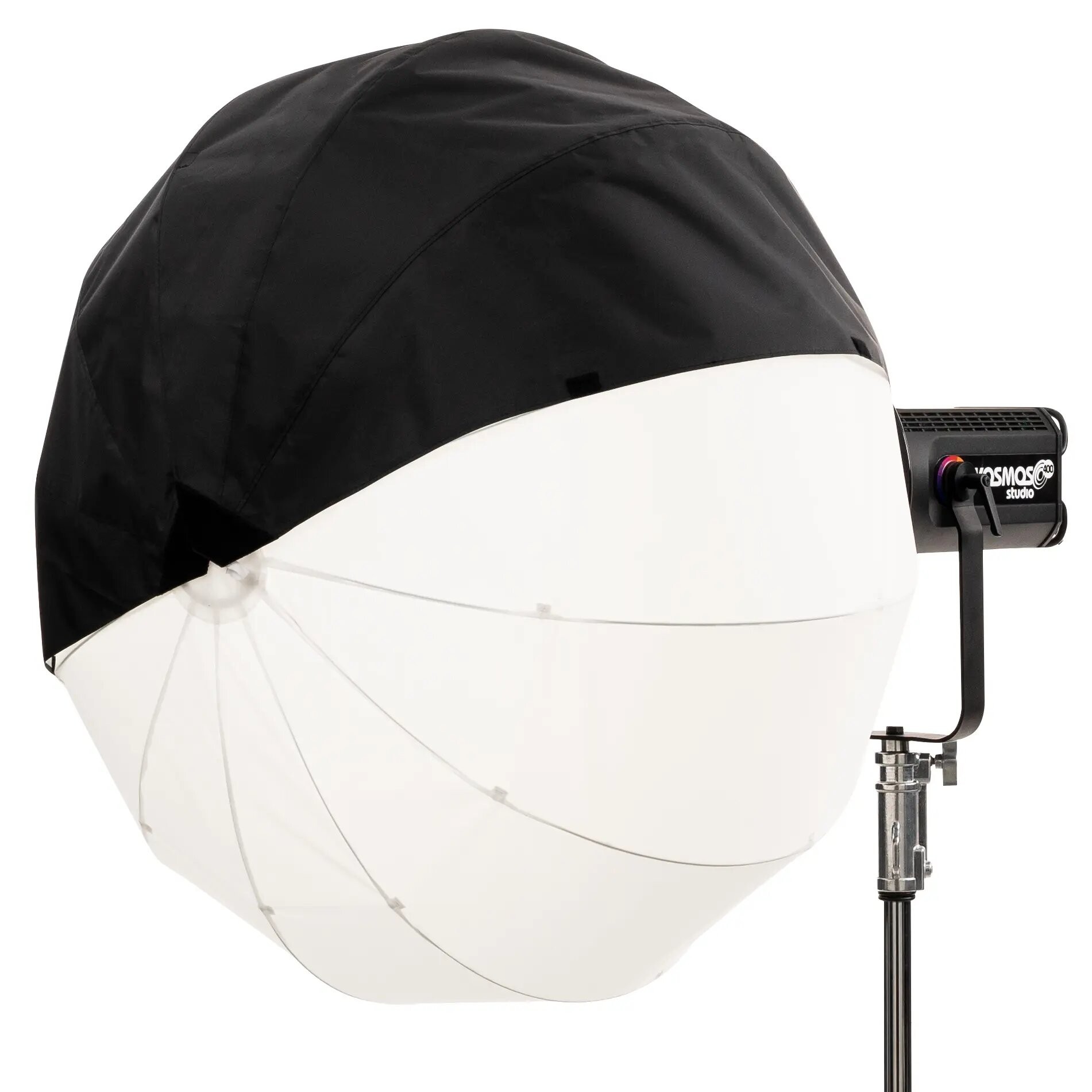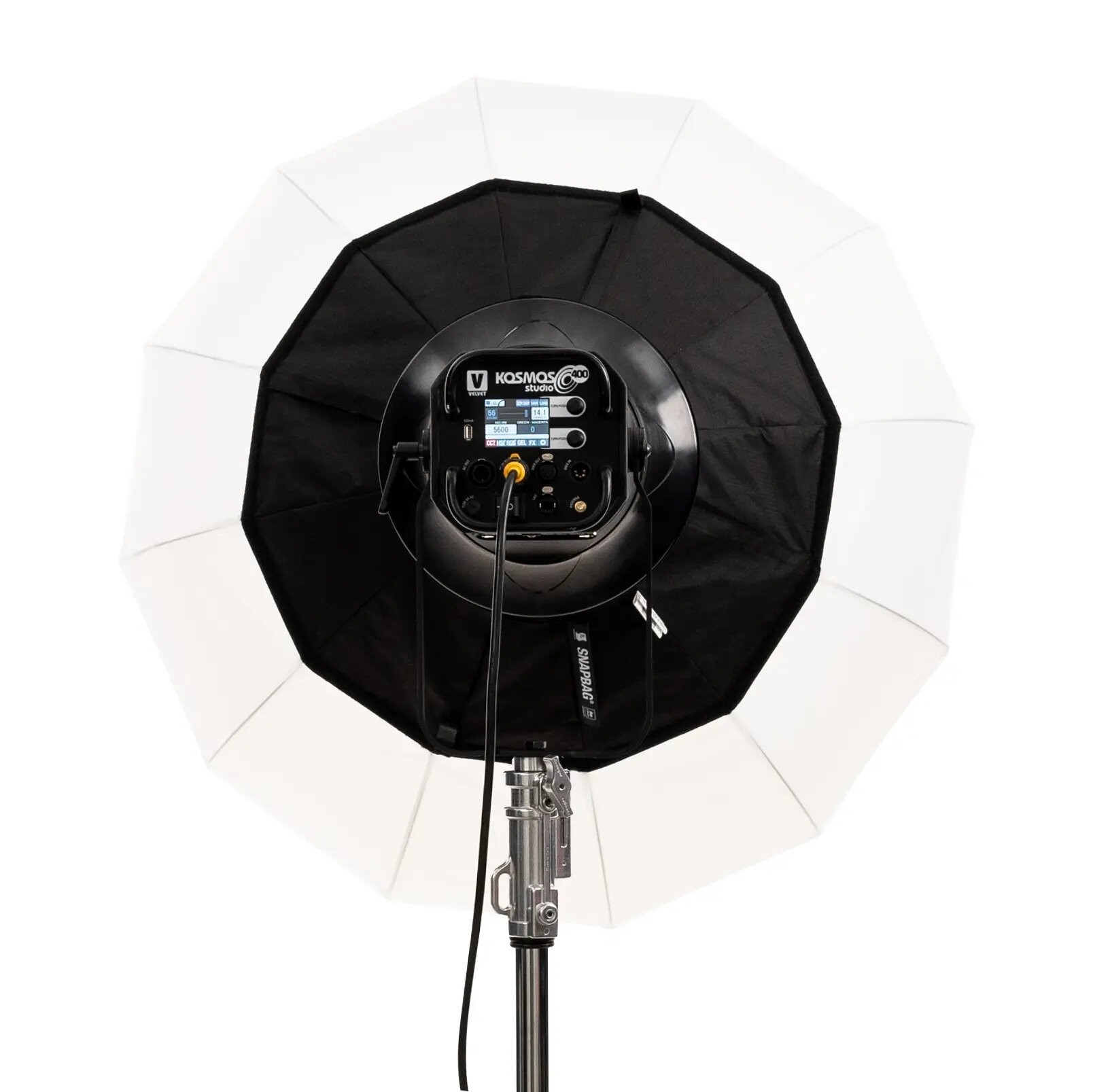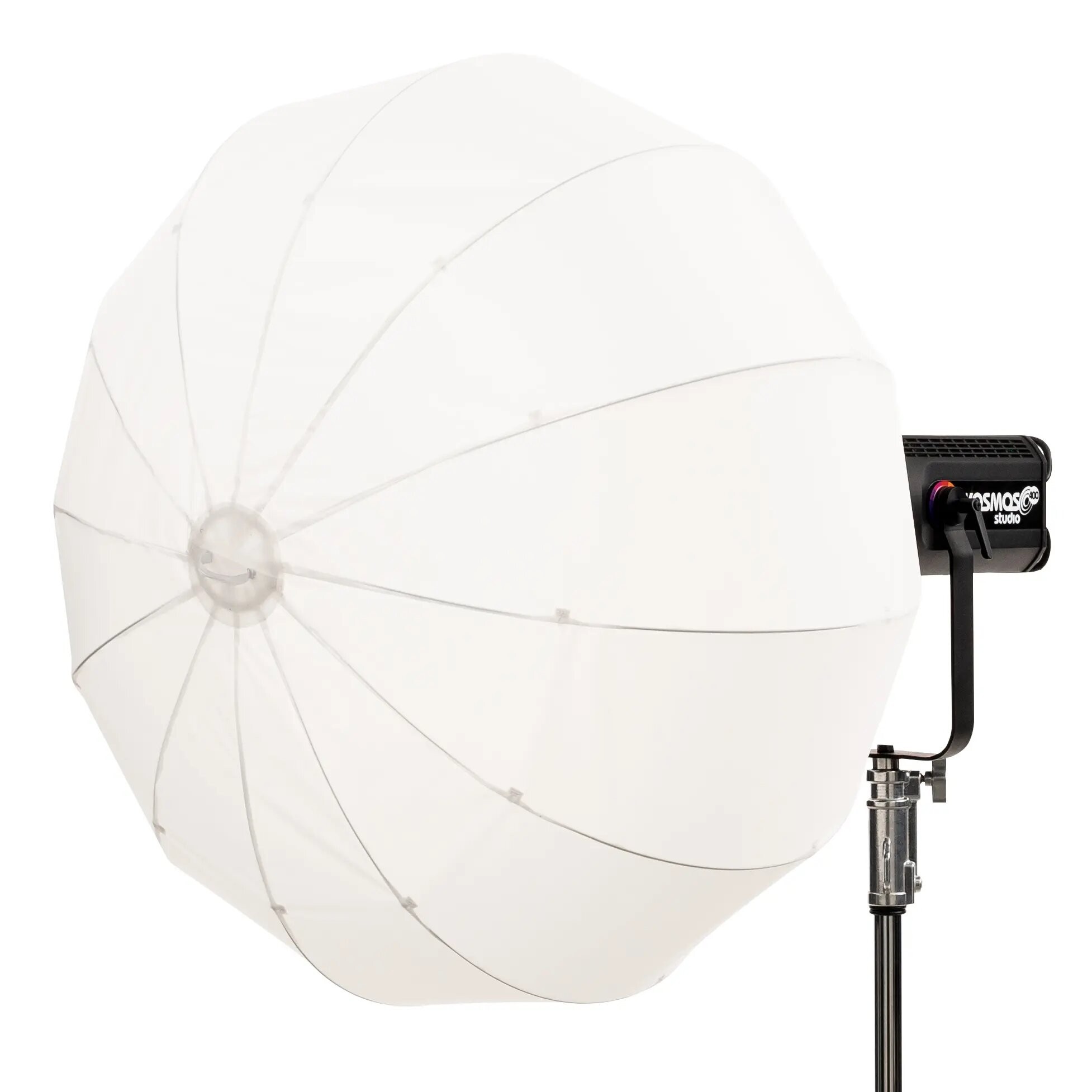 Caja de luz SNAPBAG® Lantern L de DoPchoice, circular de 100cm y 80cm de profundidad, para el proyector Velvet Kosmos 400. También conocida como lantern o lámpara china. Suaviza la luz y produce una amplia área de relleno suave, circular y envolvente; reduce 2 stops. Incluye caja de luz, difusor externo Magic Cloth de 2 stops, 2 tapas traseras de 90º y bolsa de transporte. Se monta directamente en el panel. Indicada para luz cenital o muy alta y dispersa para cobertura 340º.