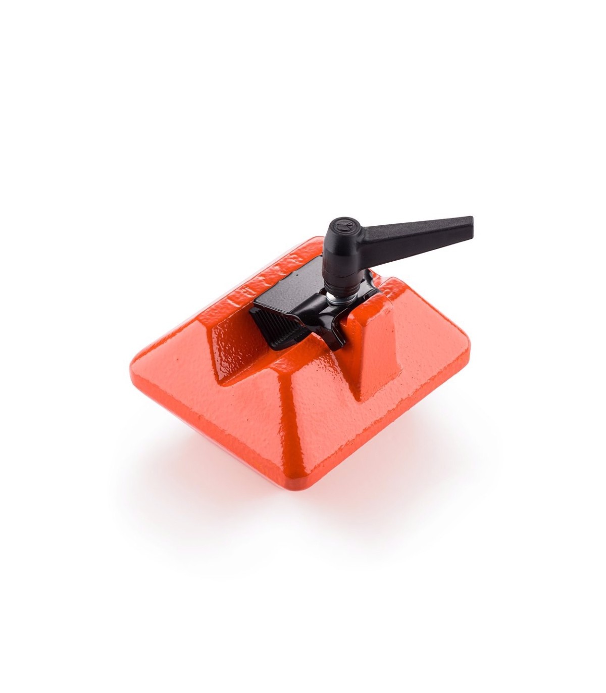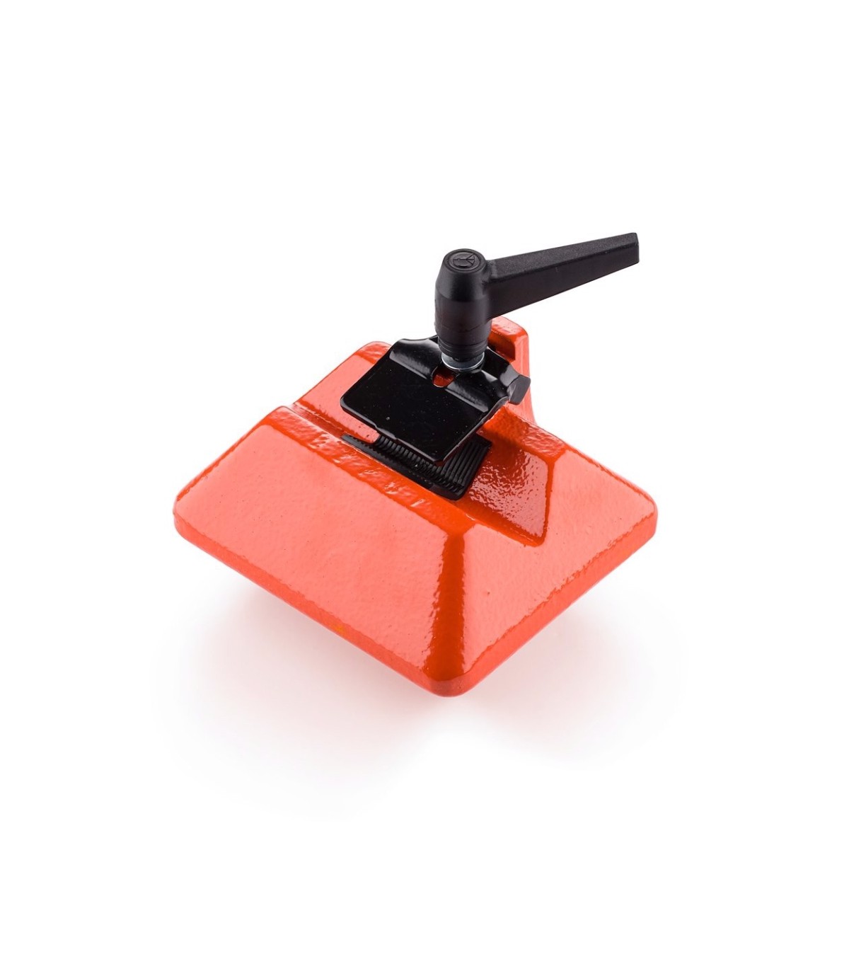 Contrapeso 6,7kg de hierro pintado naranja, con palometa de apriete. Para jirafas, barras y tubos de diámetro 2,2cm hasta 3,5cm.