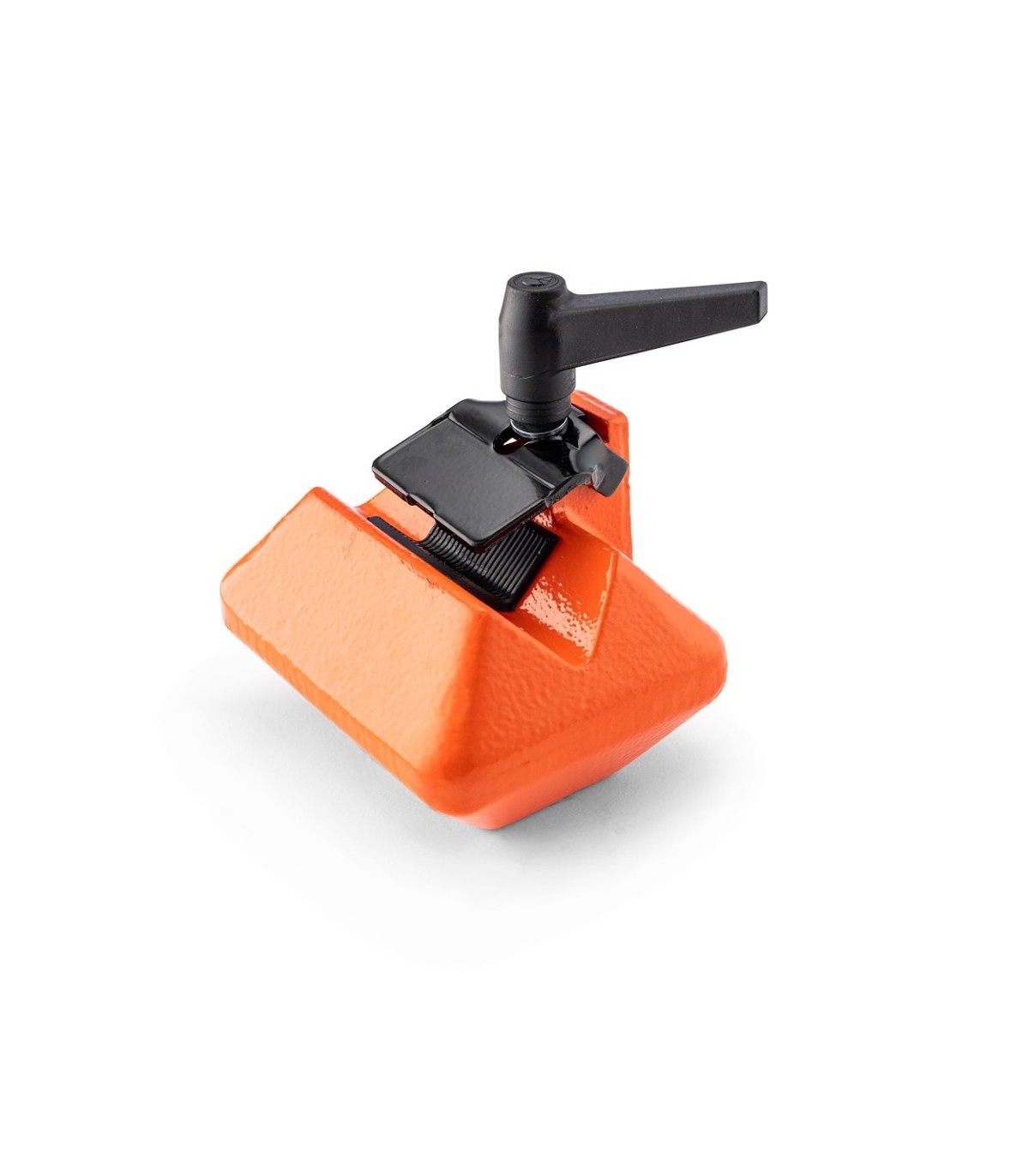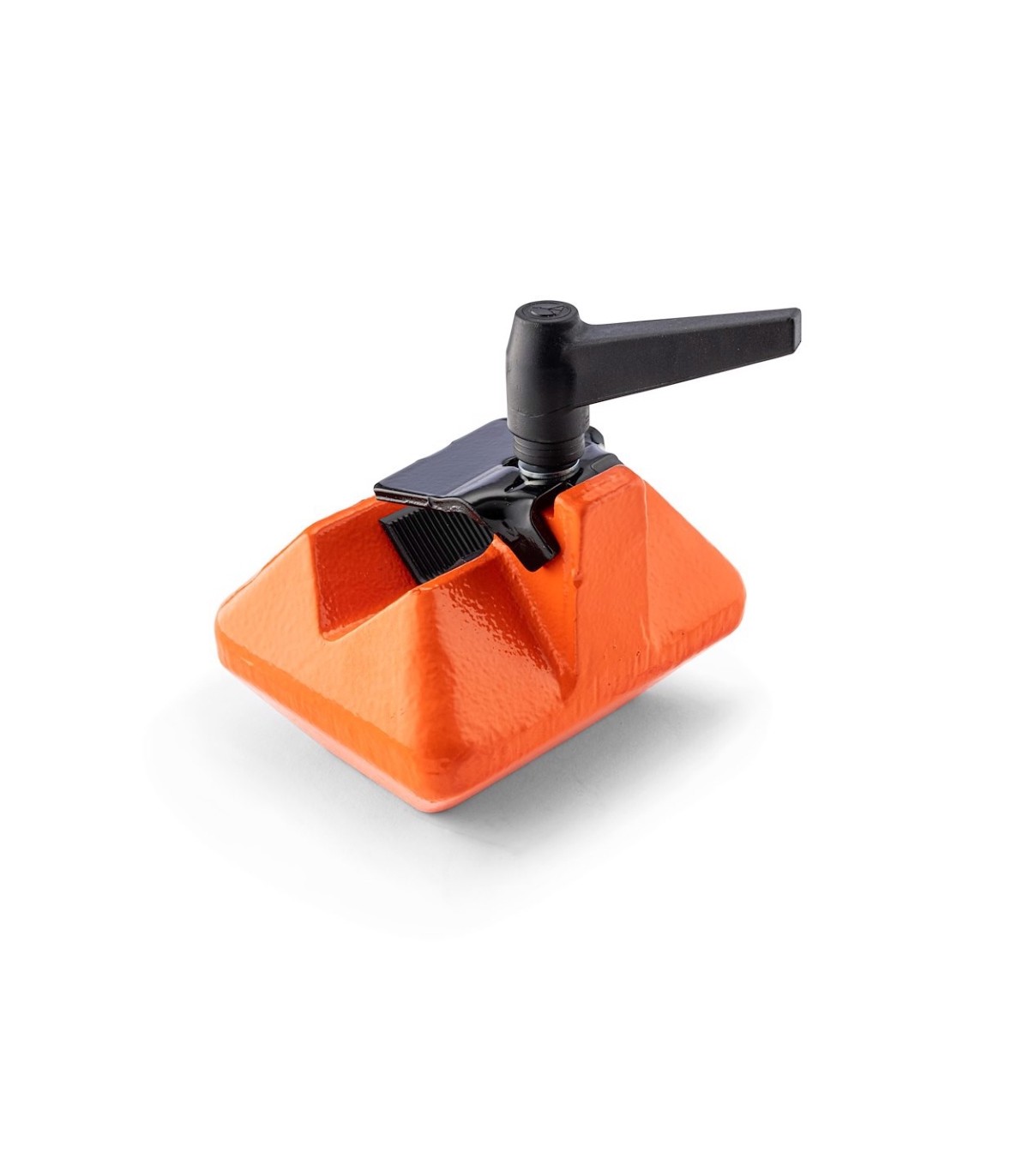 Contrapeso 4,3kg de hierro pintado naranja, con palometa de apriete. Para jirafas, barras y tubos de diámetro 2,2cm hasta 3,5cm.