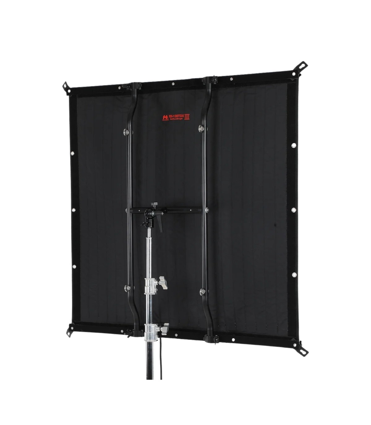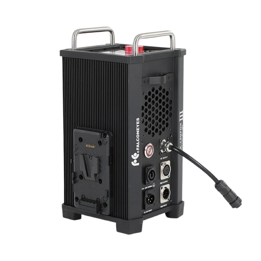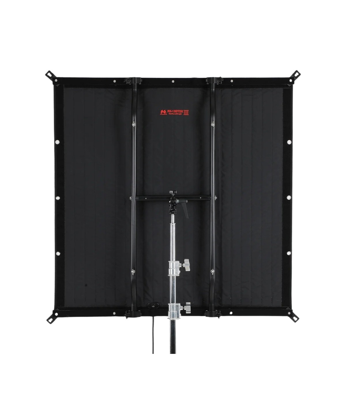 Panel flexible Rollflex III (RX-120TDX III) de 680W LED matricial Bicolor 3000K a 5600K, wireless DMX, de Falcon Eyes. Sus características principales son la ligereza y la flexibilidad, pero al ser panel matricial genera multisombras si lo ponemos cerca de un objeto a una pared, por esa razón viene con una caja de luz para convertirlo en softlight con sombra medio suave, haz 75º. Modos de trabajo: CCT y efectos. Incluye panel de 680W con brazo soporte, caja de luz, nido de abeja (eggrate), control DMX, adaptador V-Lock, cable a cabeza, cable alimentación, 2 adaptadores de montaje y maleta con ruedas de transporte. Datos fotométricos a 5600K: SIN caja de luz: 34.100 Lux a 0.5m, 15.500 a 1m, 5.140 a 2m, 2.680 a 3m. Indicado para andar liger@ de equipaje y tener siempre un recurso a mano para una esquina, un personaje sentado en una mesa, en un coche...