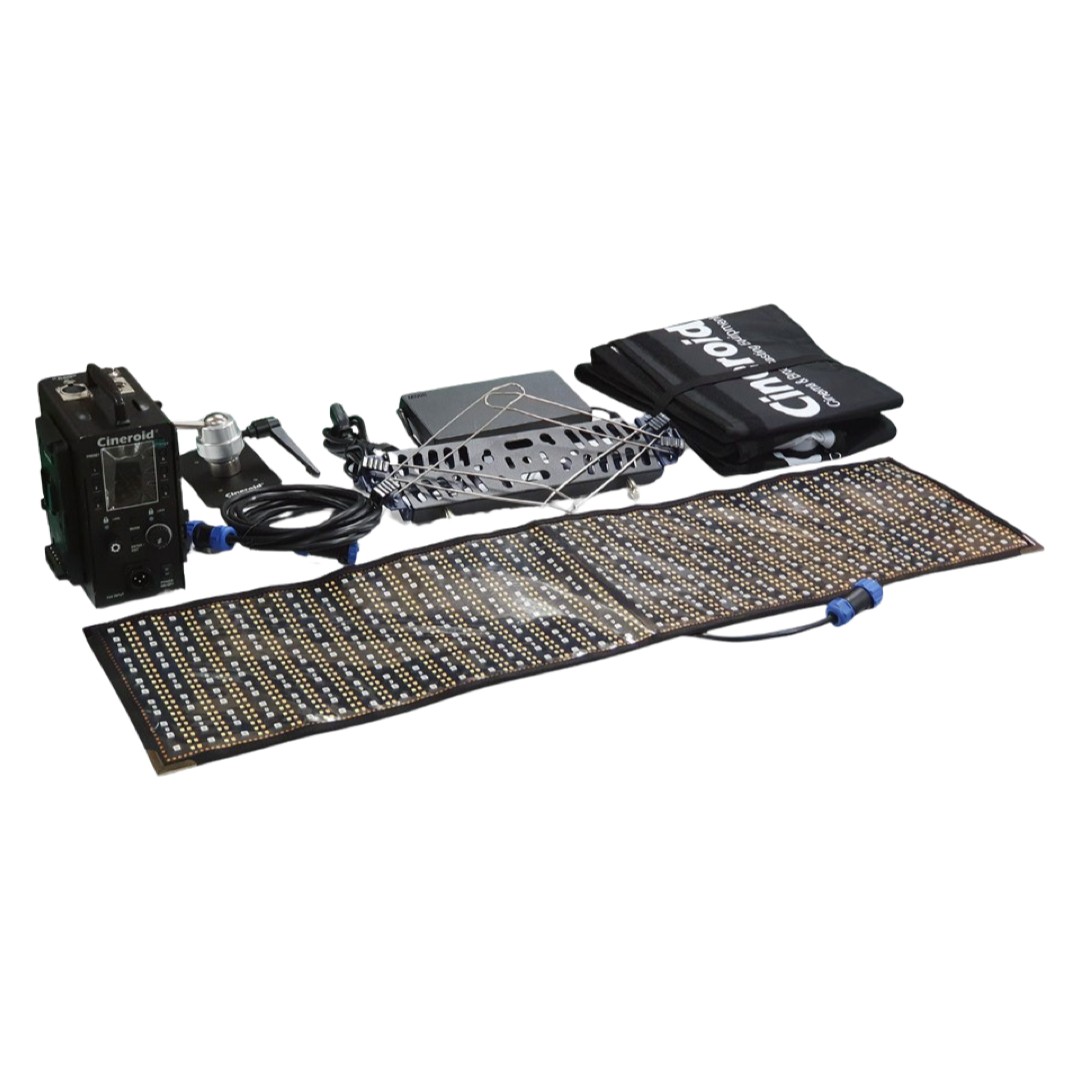 Panel LED flexible Cineroid Saturn de 250W, LED matricial RGBWW 2700K a 6500K, DMX, 140º. Sus características principales son la ligereza y la flexibilidad. Modo de trabajo: CCT, HSI y efectos. Incluye panel de 250W de 90x24cm, brazo X con rótula tilt-top y manguito 16mm, caja de luz, control AC/DC con V-Lock, cable a cabeza de 3m, cable alimentación y bolsa acolchada para transporte. Datos fotométricos a 5600K: SIN difusor: 6.024 Lux a 1m, 1.752 a 2m, 875 a 3m. Indicado para andar liger@ de equipaje y tener siempre una fuente de luz potente.