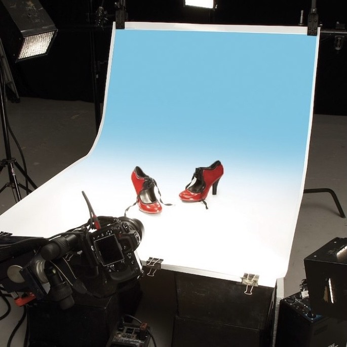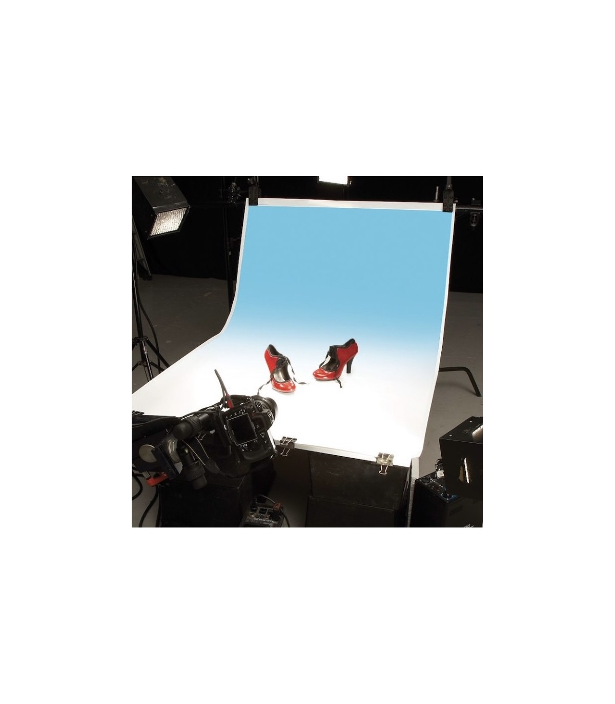 Fondo fotográfico Colorgrad de cartulina de color degradado de blanco a agua (316) de Colorama. Papel de alta calidad, con superficie no reflectante. Usado habitualmente para fotografía de producto. Colorama es el fondo más popular entre los fotógrafos y Colorgrad es su gama de fondos degradados.