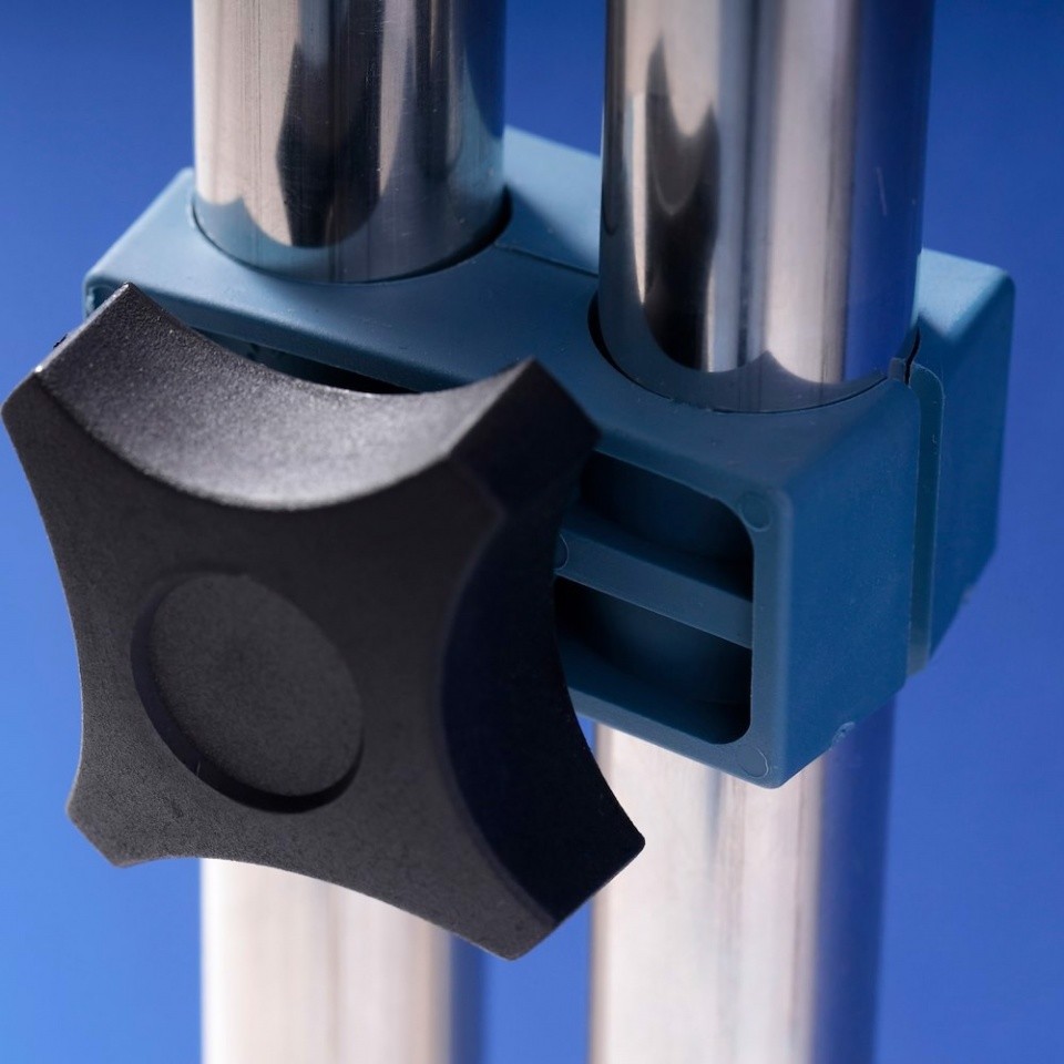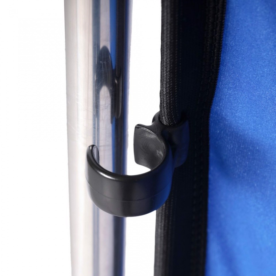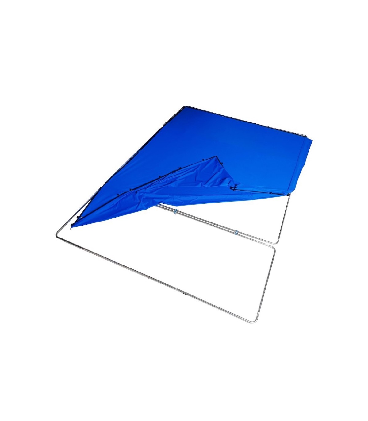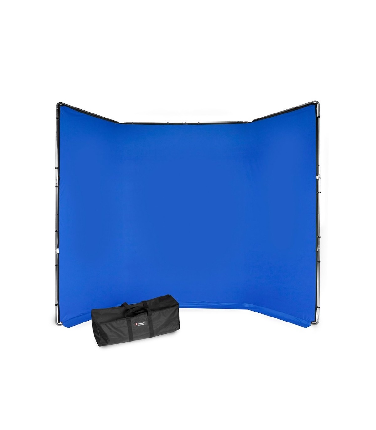 Kit chroma key FX azul de 400x290cm portátil. Incluye 3 marcos de aluminio, 4 clips de unión marcos, 2 tensores, la tela sintética chroma de color azul y la bolsa de transporte. Peso 11kg. Móntate el chroma key donde quieras y en un momento.