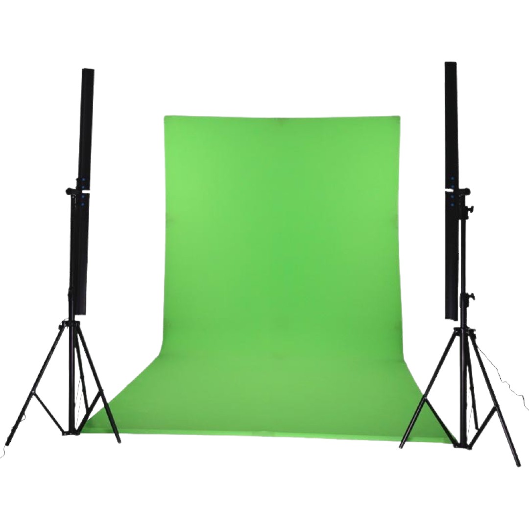 Fondo plegable chroma key verde en "I" o "L" con marco de LEDGO. Altura de 220cm y fondo de 200cm, con suelo de 200x220cm. Incluye tela chroma verde, marco y bolsa de transporte.