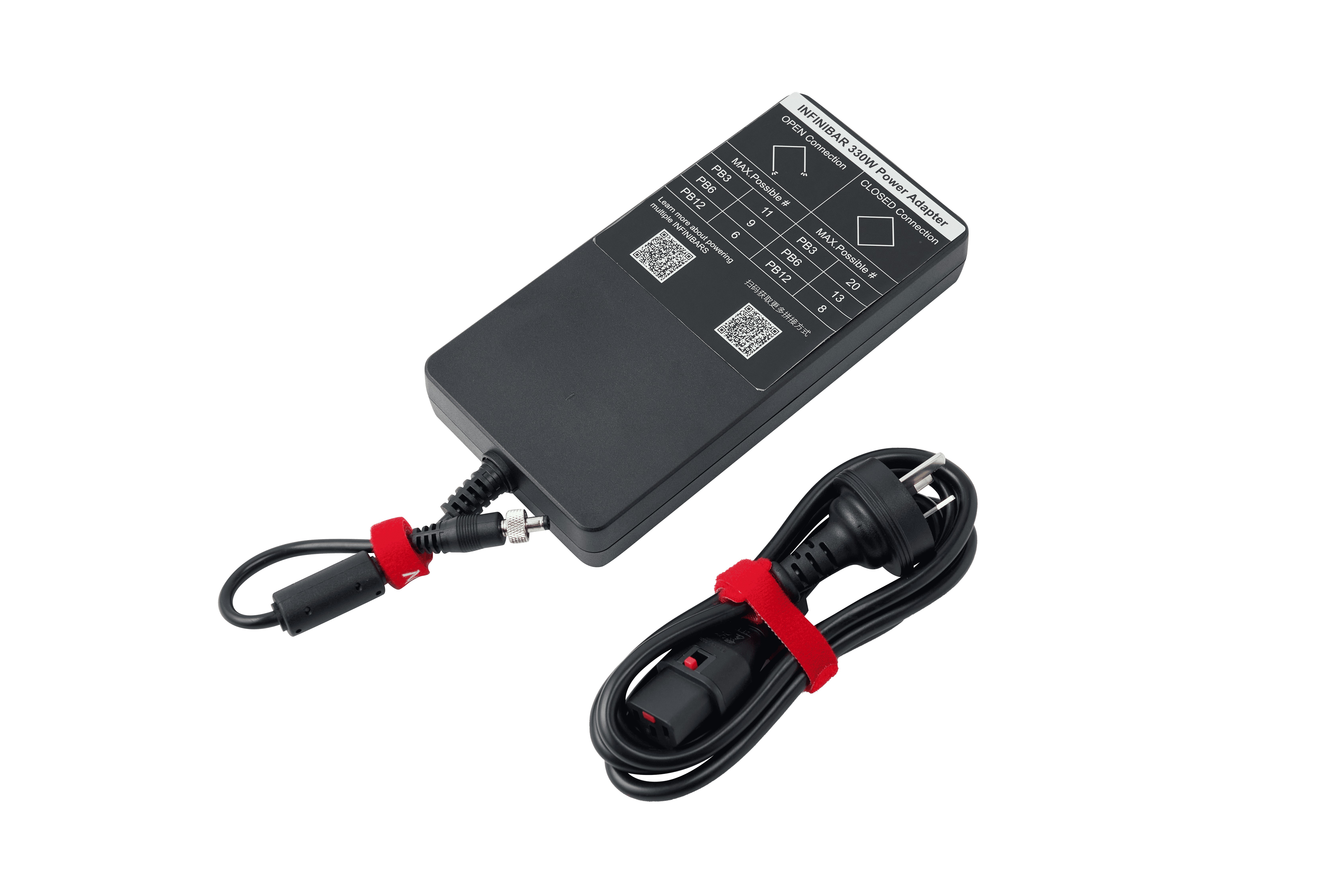 Kit alimentación 330W para INFINIBAR, compatible con los modelos INFINIBAR PB3, PB6 y PB12 de Aputure. Incluye adaptador y cable alimentación 15m; SIN cables de extensión. Máximo 20 x PB3 ó 13 x PB6 ó 8 x PB12 en circuito cerrado. Máximo 11 x PB3 ó 9 x PB6 ó 6 x PB12 en circuito abierto.