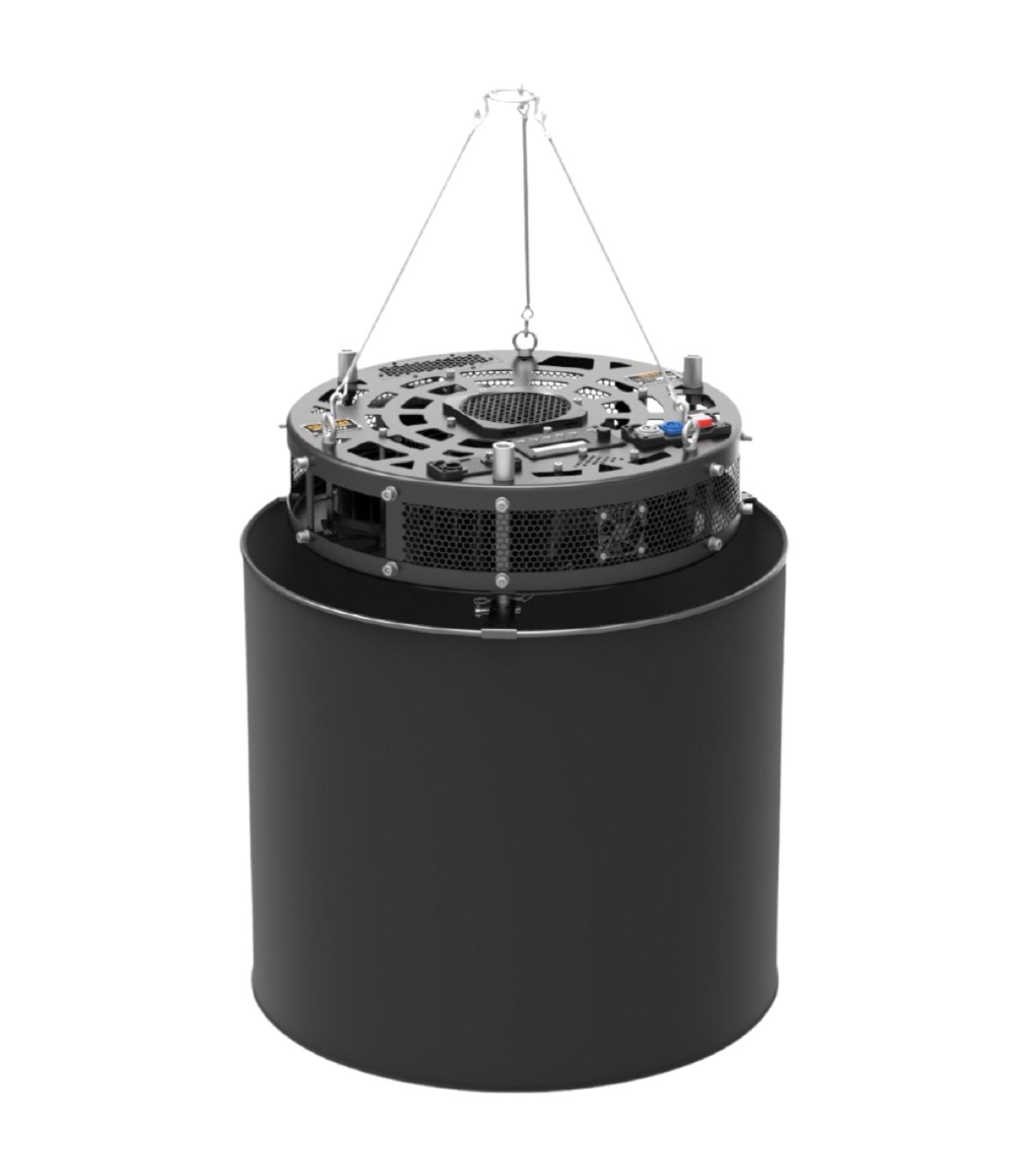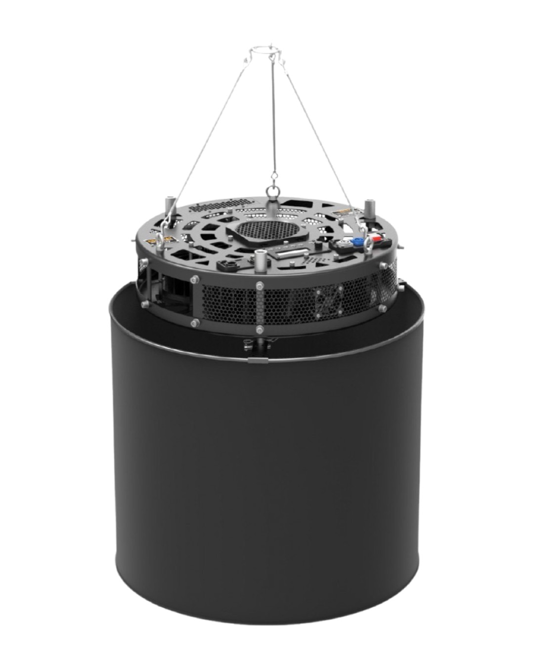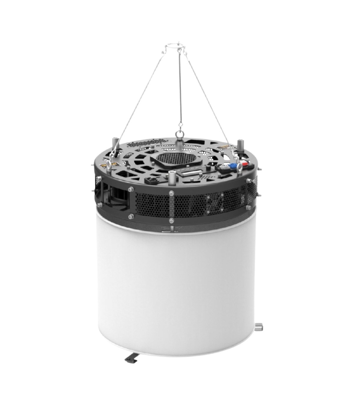 Foco Helios Spacelight 480W LED matricial Bicolor 2700K a 6000K con 4 lentes, DMX; luz suave envolvente con base más dura y lateral más difuminado para relleno. Incluye cabeza 480W con cadenas para cuelgue, cable alimentación AC, tapa difusora, camisa difusora seda y camisa negra faldón. Datos fotométricos a 5600K SIN difusor: 1.620 Lux a 3m, 405 a 6m, 180 a 9m. El spacelight se utiliza colgado del techo y produce una luz de relleno 360º suave y envolvente, controlable con la camisa negra. Indicado para plató de media altura.