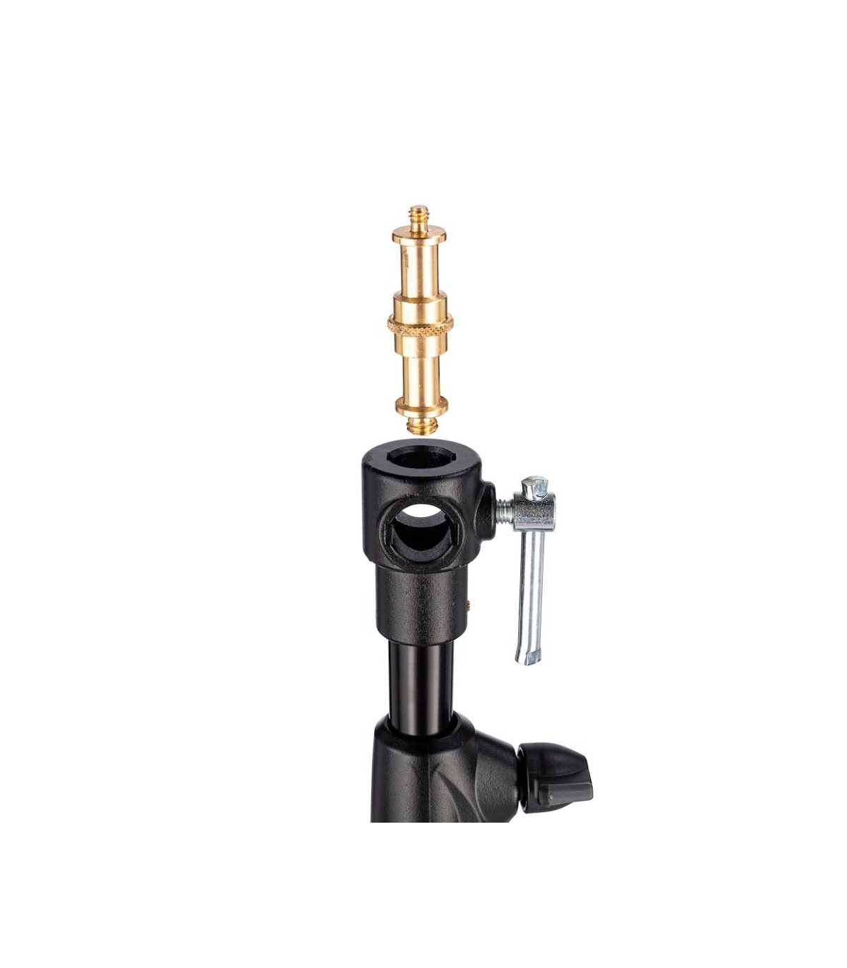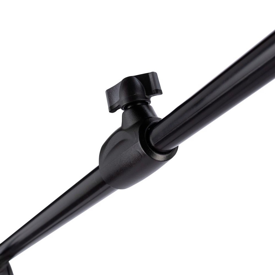 Trípode Combi Boom de aluminio negro, convertible a jirafa, con manguito 16mm con palometa y espárrago 16mm (013). SIN saco contrapeso. Trípode de 4 secciones (3 extensiones); las dos últimas convertibles en jirafa. Alturas trípode: máxima 392cm, mínima 131cm, plegado 113cm. Otras medidas trípode: diámetro huella 109cm, capacidad 9kg, peso 2,7kg. Otras medidas en modo jirafa: extensión máxima 191cm, extensión mínima 19cm, capacidad con extensión máxima y contrapesada 2kg. Este es el trípode jirafa dos en uno para focos o paneles pequeños.