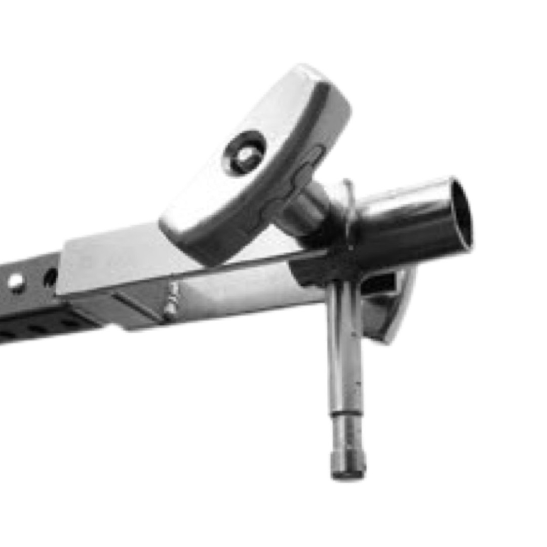 Jirafa Max Menace de acero gris, con espárrago 16mm y manguito 29mm, móvil; con base con ruedas y freno, y columna doble. Jirafa de 3 secciones (2 extensiones), con múltiples agujeros tipo estantería metálica. SIN contrapeso (admite sacos de arena y pesas). El ingenioso sistema de contrapesado permite montarla pegada a la pared. Medidas: altura máxima columna y brazo 609cm, altura mínima -100cm, altura plegada 190cm, alcance máximo plano 305cm, alcance minimo plano 213cm. Otras medidas: capacidad 34kg hasta 80kg, peso 98kg. Indicado para alcanzar posiciones difíciles con un foco o panel. MAX admite proyectores de hasta 80kg, lo que le permite colocar casi cualquier iluminación en casi cualquier lugar del plató: luces traseras, sobre las paredes del plató y en lugares donde los ascensores están restringidos, como techos, balcones, etc. MAX se puede mover fácilmente en superficies planas y niveladas. Matthews, también conocida como MSE, es la marca americana de referencia en la industria del cine.