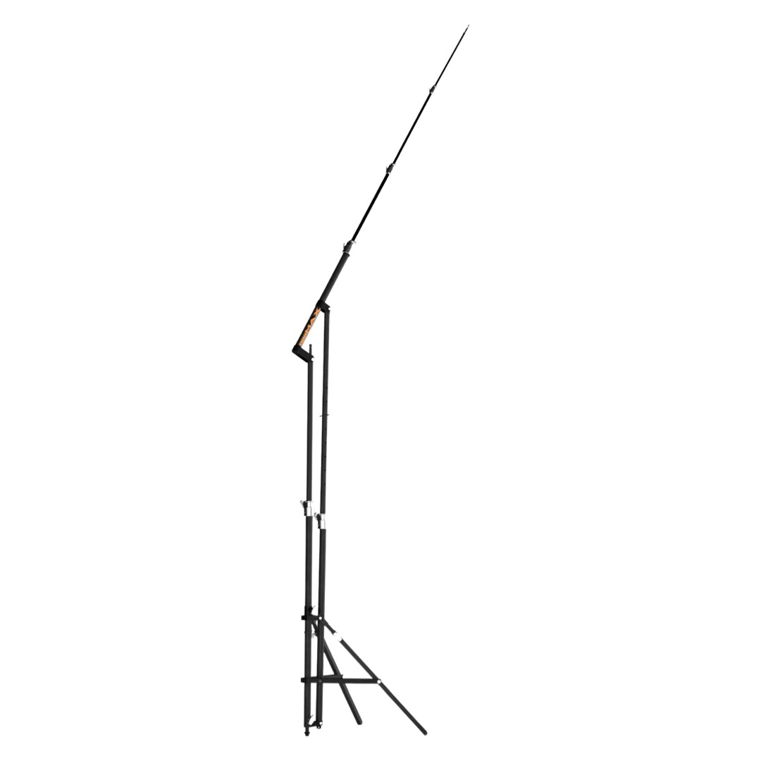 Jirafa Mini MAX de aluminio negro y acero, con espárrago 16mm fijo; con base y columna doble. Jirafa de 4 secciones (3 extensiones). SIN contrapeso (admite sacos de arena y pesas). El ingenioso sistema de contrapesado permite montarla pegada a la pared. Medidas: altura máxima columna y brazo 489cm, altura mínima -92cm, altura plegada 180cm, alcance máximo plano 248cm, alcance minimo plano 100cm. Otras medidas: capacidad 9kg, peso 17kg. Indicado para alcanzar posiciones difíciles con un foco o panel. MAX admite proyectores de hasta 9kg, lo que le permite colocar casi cualquier iluminación pequeña, o reflector, en casi cualquier lugar del plató: luces traseras, sobre las paredes del plató. Matthews, también conocida como MSE, es la marca americana de referencia en la industria del cine.