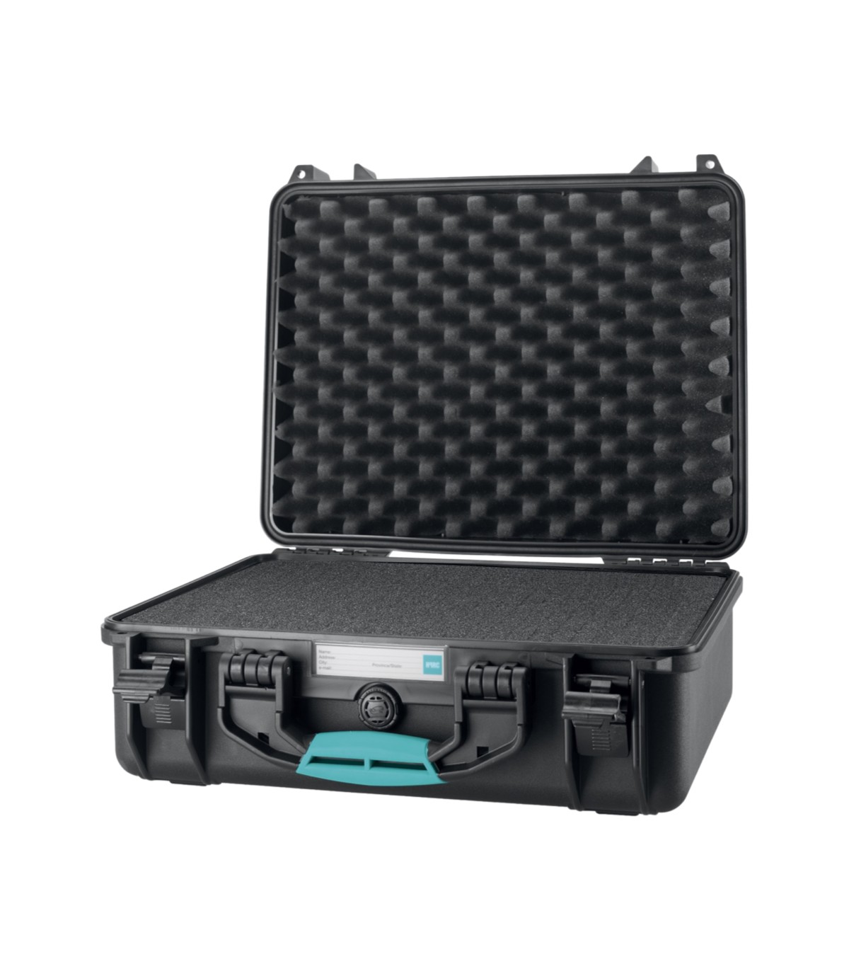 Maleta reciclable 2460C negra, hermética con válvula, con espuma precortada. Irrompible, impermeable, resistente a los ácidos, a las rayaduras, a condiciones climáticas extremas y cambios de temperatura. Medida exterior 435x378x193mm; medida interior 409x306x175mm. La resina TTX01® permite producir maletas que son más livianas en peso y más robustas. La mezcla especial que añaden hace que la carcasa de HPRC sea más fina y elástica, aumentando así el grado de resistencia a los golpes y su ligereza. Todas las maletas y componentes de HPRC son 100% reciclables: los desechos de producción y transformación se reintegran al ciclo de producción.