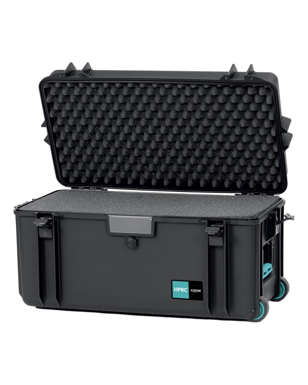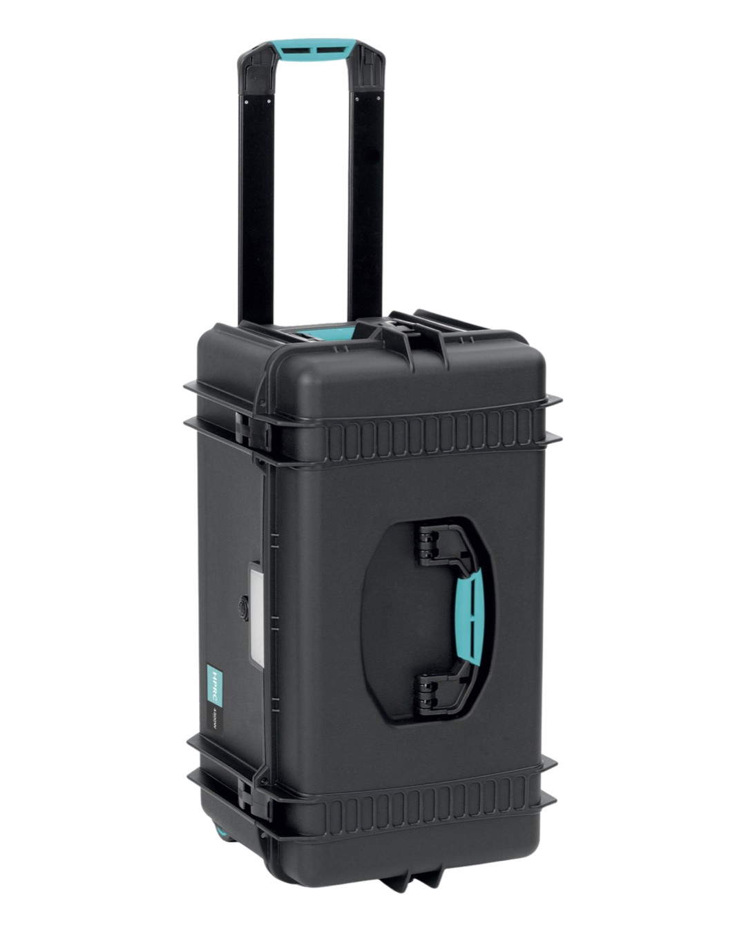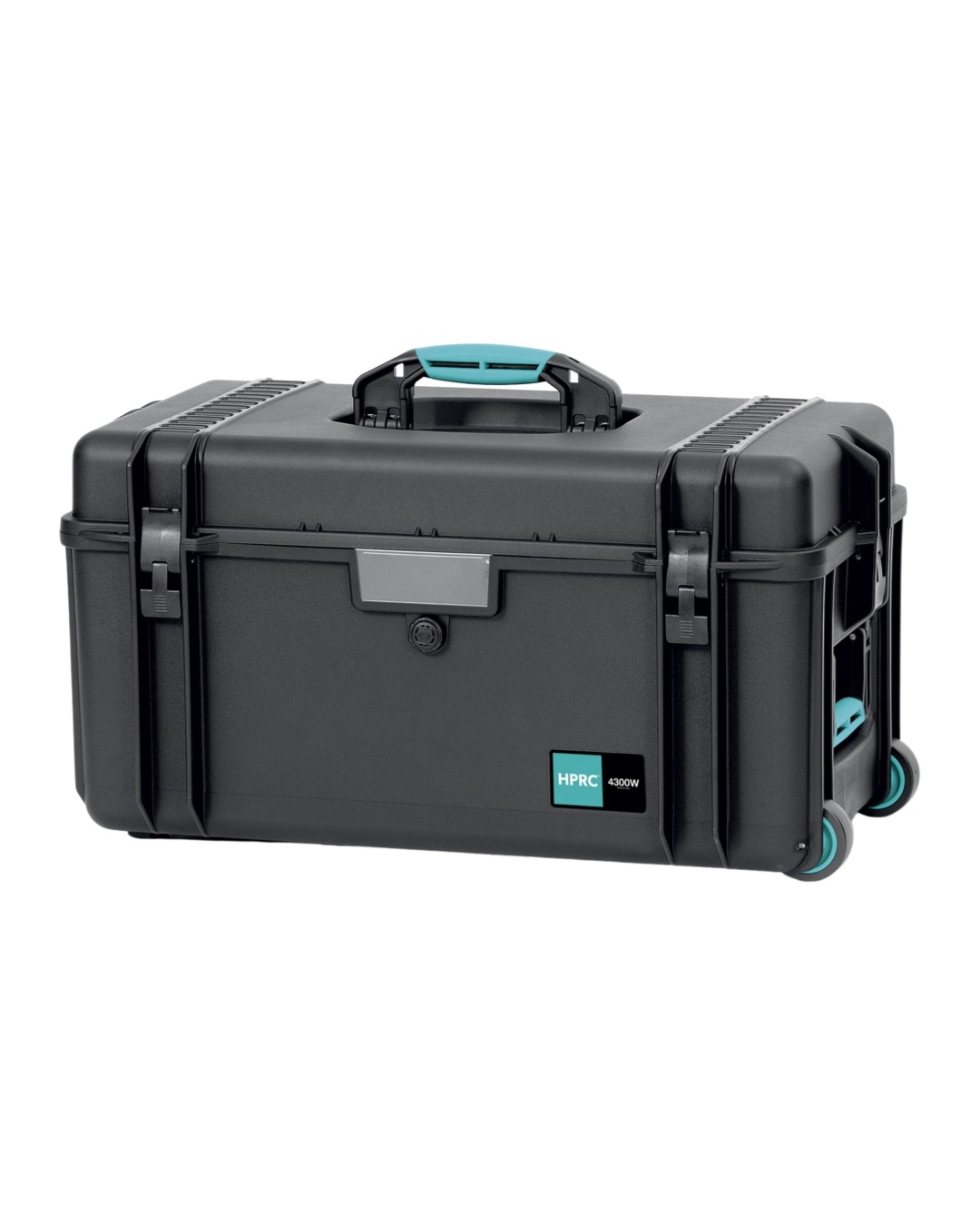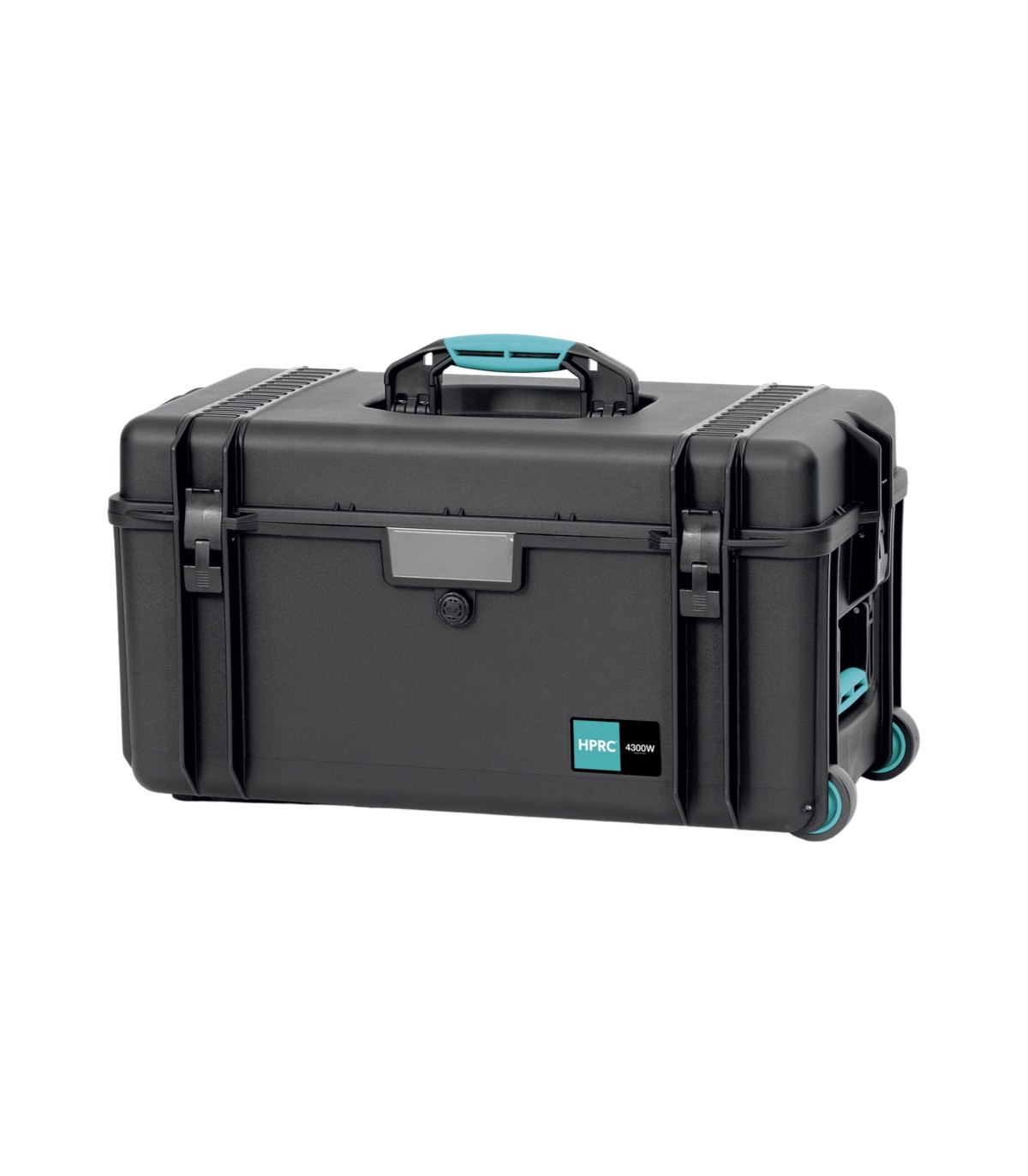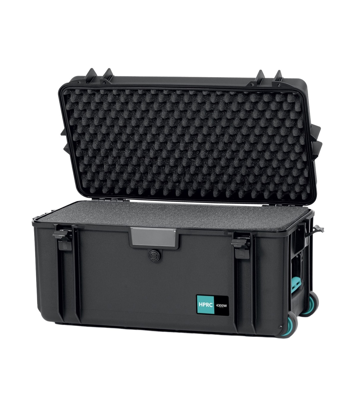 Baúl reciclable 4300CW negro con ruedas, hermético con válvula y espuma precortada. Irrompible, impermeable, resistente a los ácidos, a las rayaduras, a condiciones climáticas extremas y cambios de temperatura. Medida exterior 690x380x358mm; medida interior 580x320x299mm. La resina TTX01® permite producir maletas que son más livianas en peso y más robustas. La mezcla especial que añaden hace que la carcasa de HPRC sea más fina y elástica, aumentando así el grado de resistencia a los golpes y su ligereza. Todas las maletas y componentes de HPRC son 100% reciclables: los desechos de producción y transformación se reintegran al ciclo de producción.