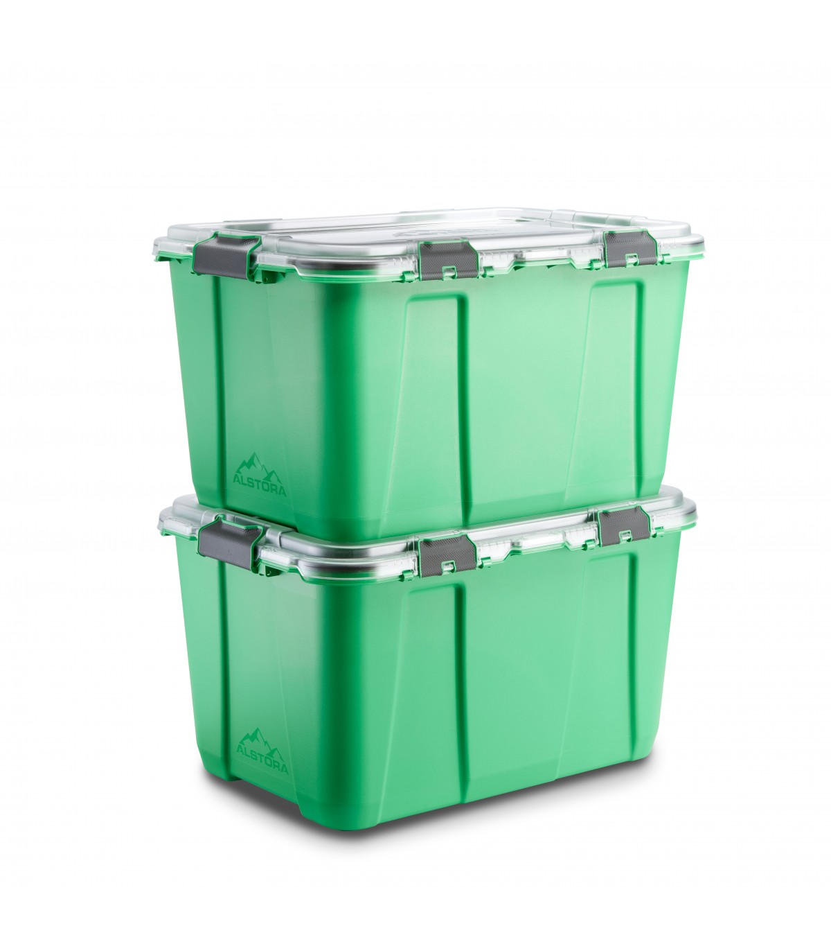 Contenedor reciclable 76 litros; color verde con tapa transparente y 6 cierres-bisagra. Medida exterior 687x477x390mm. El contenedor está aislado del ambiente en el que se encuentra: la funda y la tapa de cierre completo bloquean la entrada de cualquier agente externo, preservando la integridad del contenido; la oxidación, el polvo, los parásitos serán un recuerdo lejano. También evitan la fuga/paso de sustancias al exterior, por ejemplo evitando la salida de olores. La construcción robusta está diseñada para soportar caídas y apilamientos y durar mucho tiempo. La tapa de policarbonato, también resistente a los impactos, ofrece una visión clara del contenido y permite apilar los contenedores. Cuando no están en uso, se pueden apilar de manera similar, uno dentro del otro para ahorrar espacio. Garantizado por 10 años. Todos los contenedores y componentes de Alstora son 100% reciclables: los desechos de producción y transformación se reintegran al ciclo de producción.