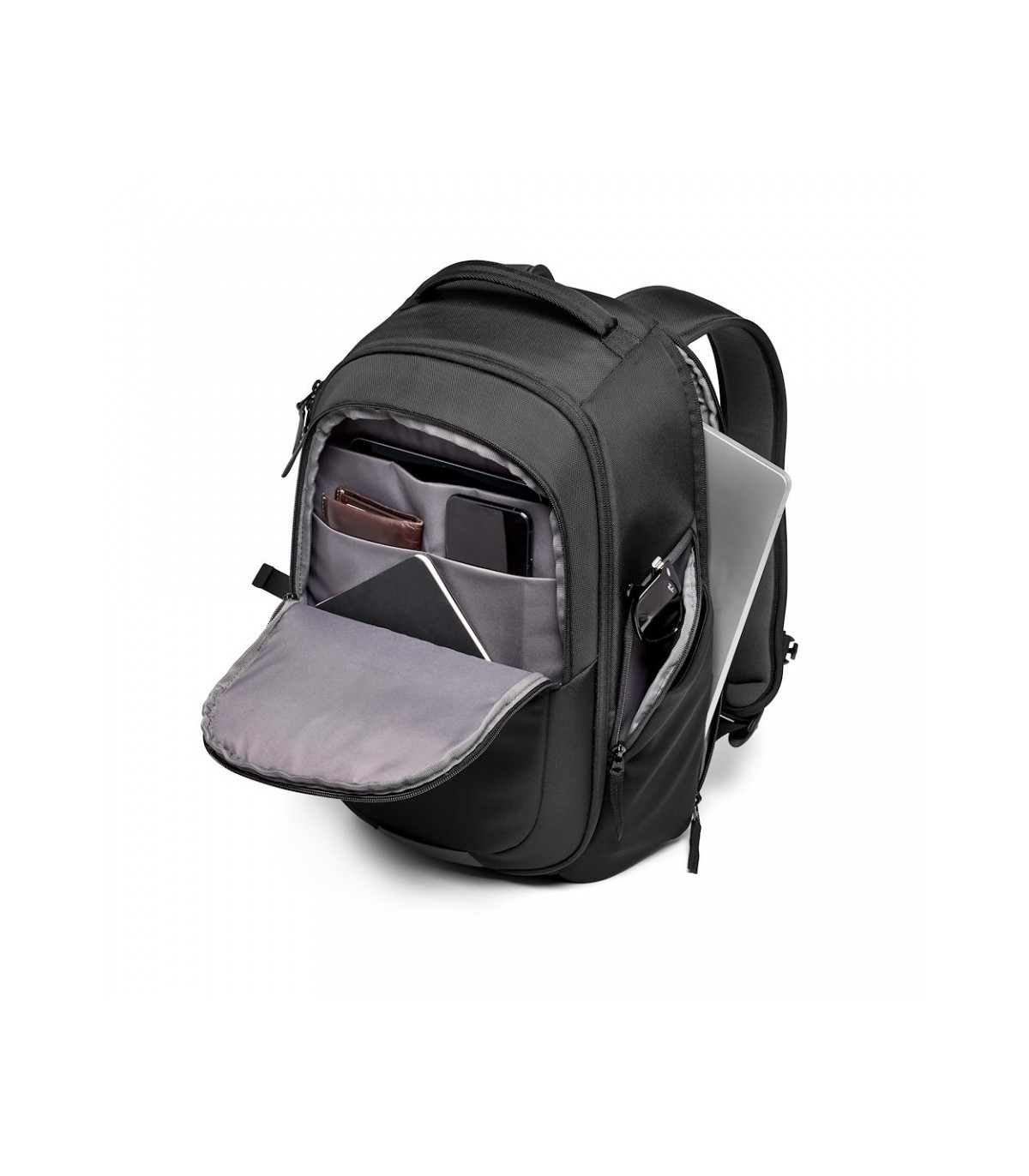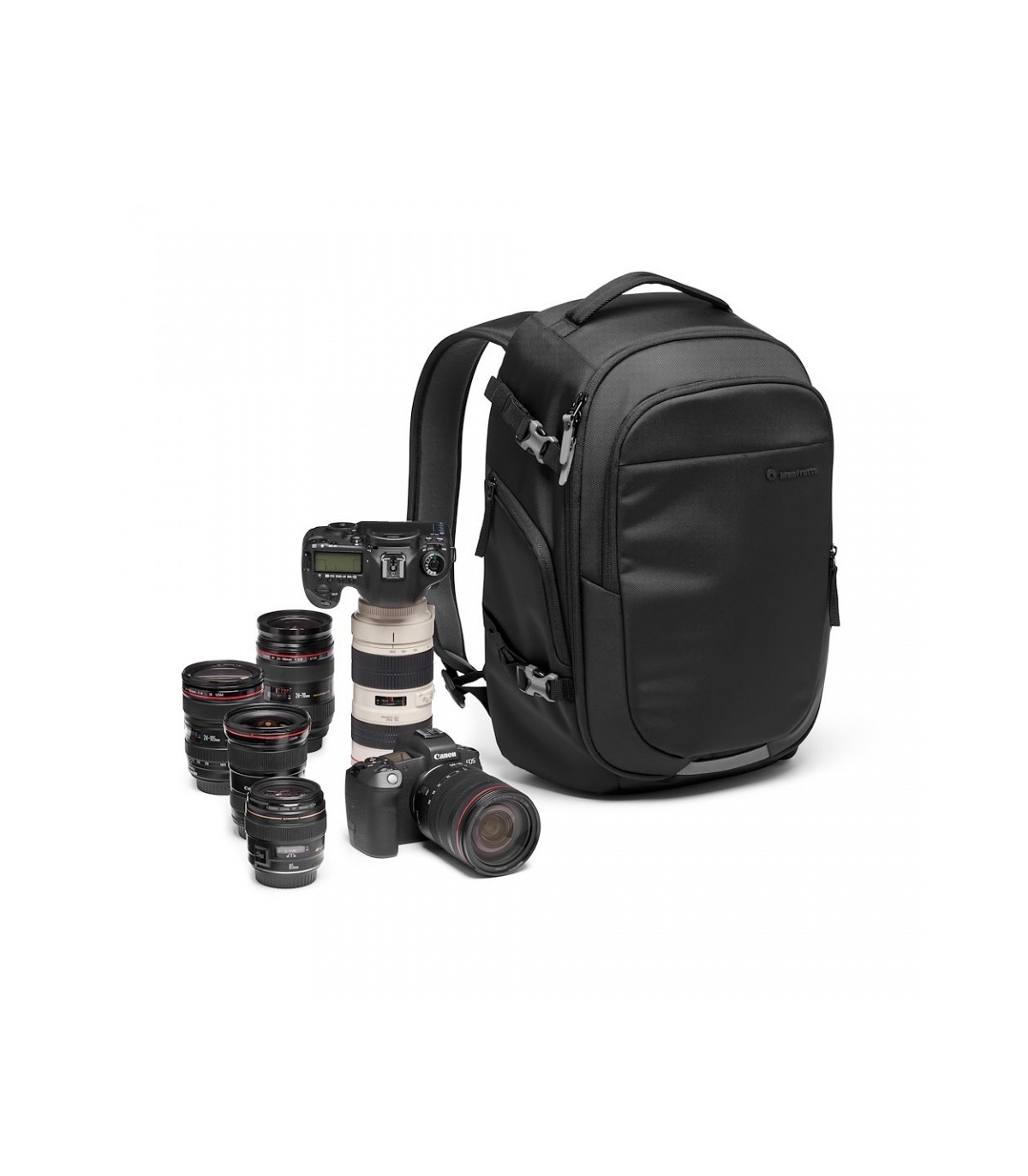 Mochila Advanced Gear III acolchada de tejido sintético negro; para transporte de cámara y portátil. Medidas: exterior 33x18,5x47cm, interior 29x13,5x39cm. Mochila compacta y funcional para cámara y portátil dedicada por completo al equipo fotográfico. La mochila Advanced Gear III para DSLR y CSC es una mochila innovadora ligera, compacta y fácil de llevar. Lleva de forma segura una DSLR con una óptica 70-200 mm f/2,8 montada, así como 4 objetivos adicionales, o puede utilizarse igualmente para llevar una cámara CSC con un objetivo 70-200/4 montado más 2-3 objetivos adicionales, así como un kit DJI Mavic Air 2. Incluye un bolsillo acolchado específico para el portátil de 15 pulgadas, de fácil acceso cuando se está en movimiento.