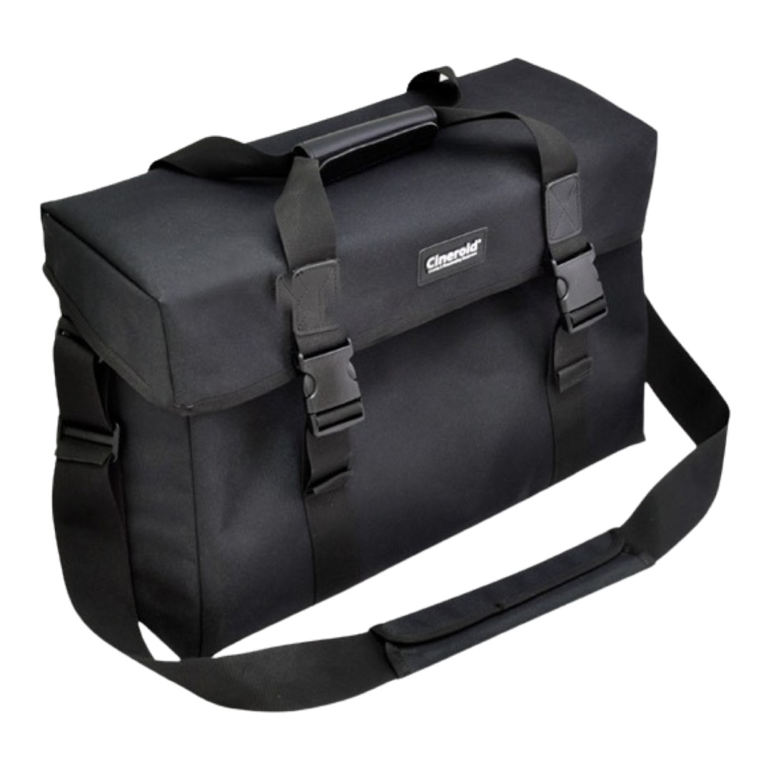 Bolsa acolchada para transportar 3 paneles flexibles de 46x25cm, de Cineroid. Medidas: exterior 53x38x21cm, interior 46x28x16cm. Con asa y bandolera. La bolsa Cineroid es una solución compacta con divisiones internas intercambiables para paneles de luces y accesorios. Es la solución perfecta para el transporte y protección de los paneles Cineroid FL800, CFL800, Saturno 120 y similares.