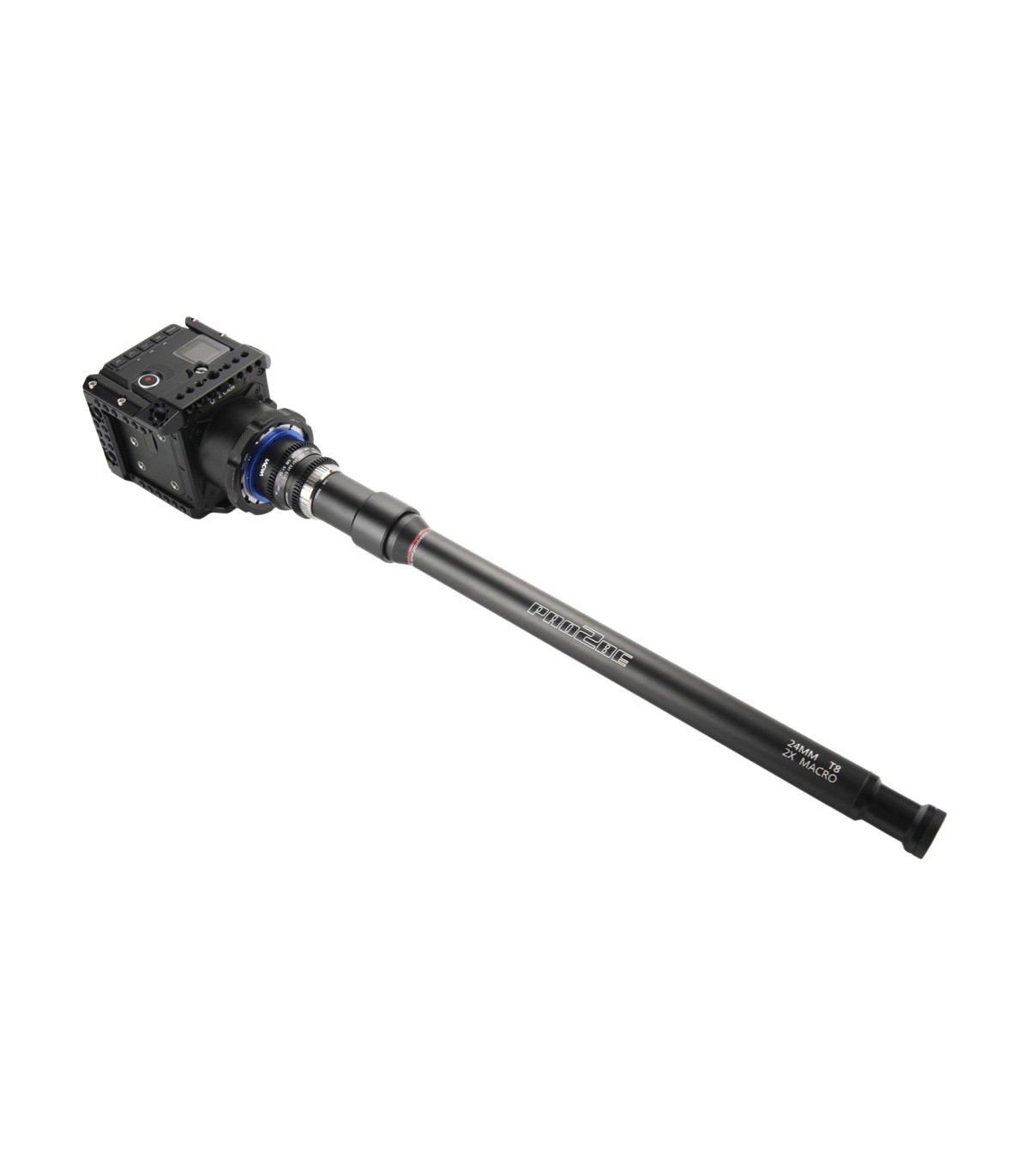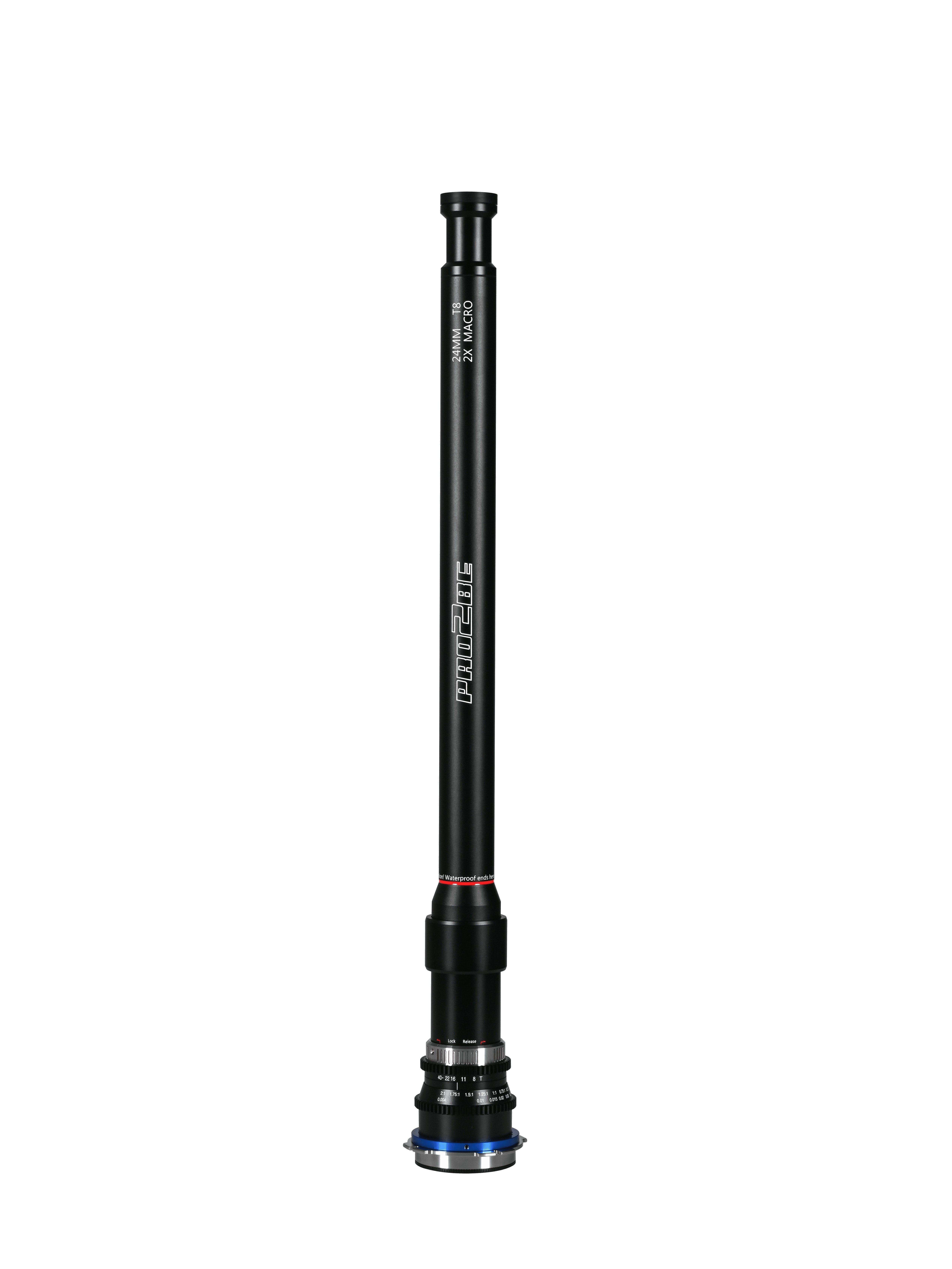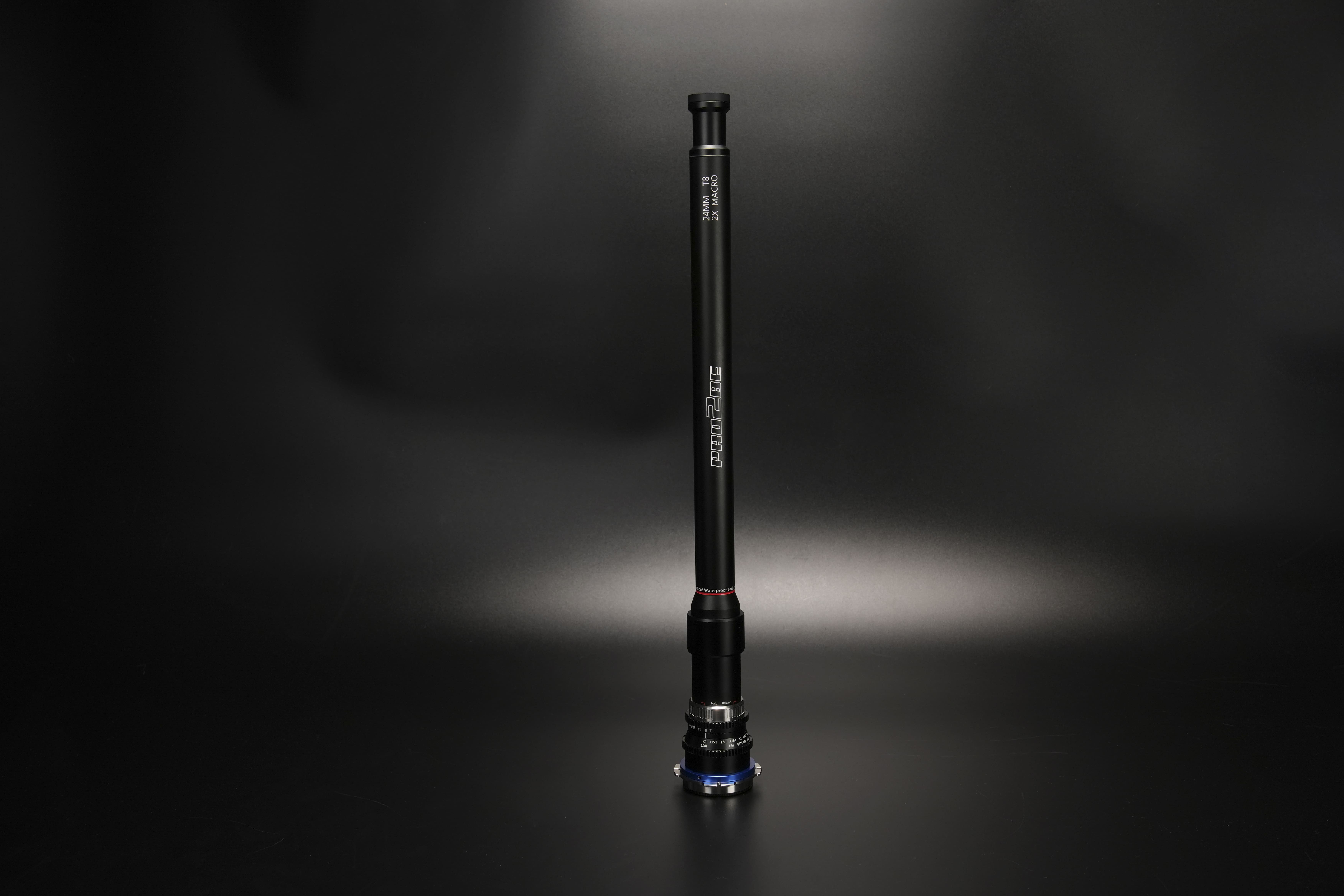 Óptica cámara para cine. Cine Pro2be sonda 0º 24mm T8 macro 2x con montura PL de Arri; incluye 1 lente sonda 0º y maleta. La serie Laowa Pro2be es la serie macro profesional más reciente y accesible para sensores Full Frame. Esta serie brinda una excelente calidad de imagen y ofrece comodidades modernas para satisfacer las necesidades dinámicas del set. El macro 2x permite capturar sujetos de diferentes tamaños con detalle. El Pro2be no sólo hereda todas las excelentes características del objetivo Probe, ahora mejora la luminosidad. El AoV de 85° y una distancia de trabajo muy cercana de 4cm ayudan a crear la perspectiva de "ojo de insecto". Los usuarios pueden meter la sonda larga e impermeable en un espacio reducido y bajo el agua para obtener una perspectiva única.