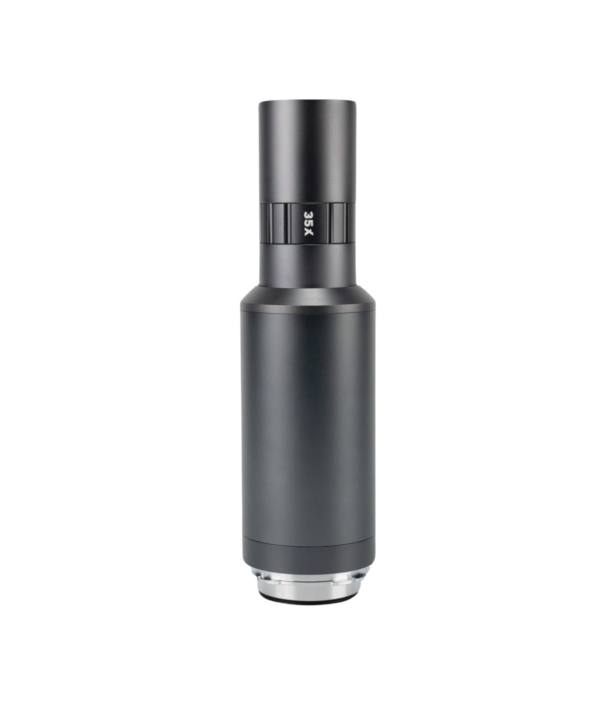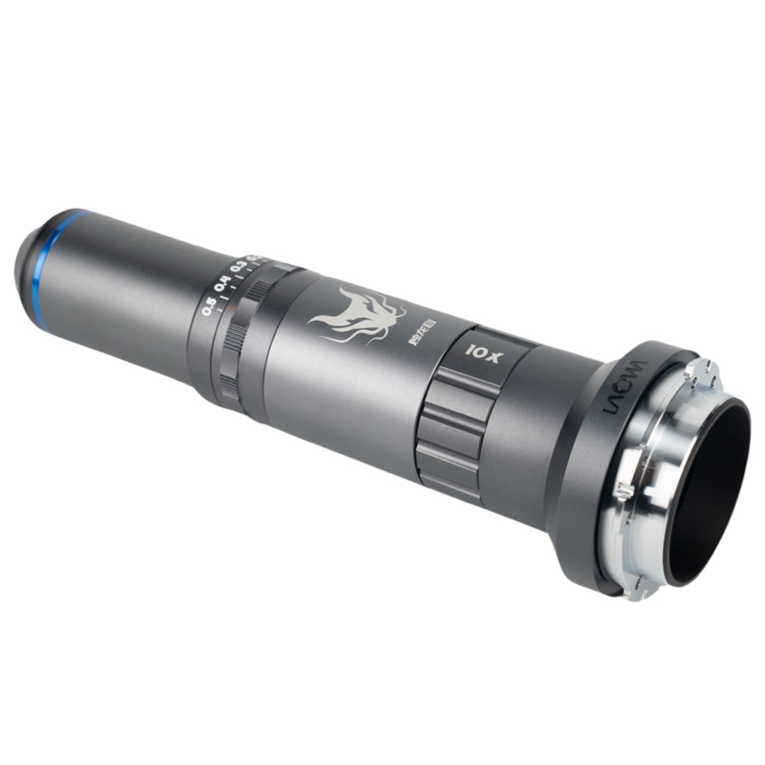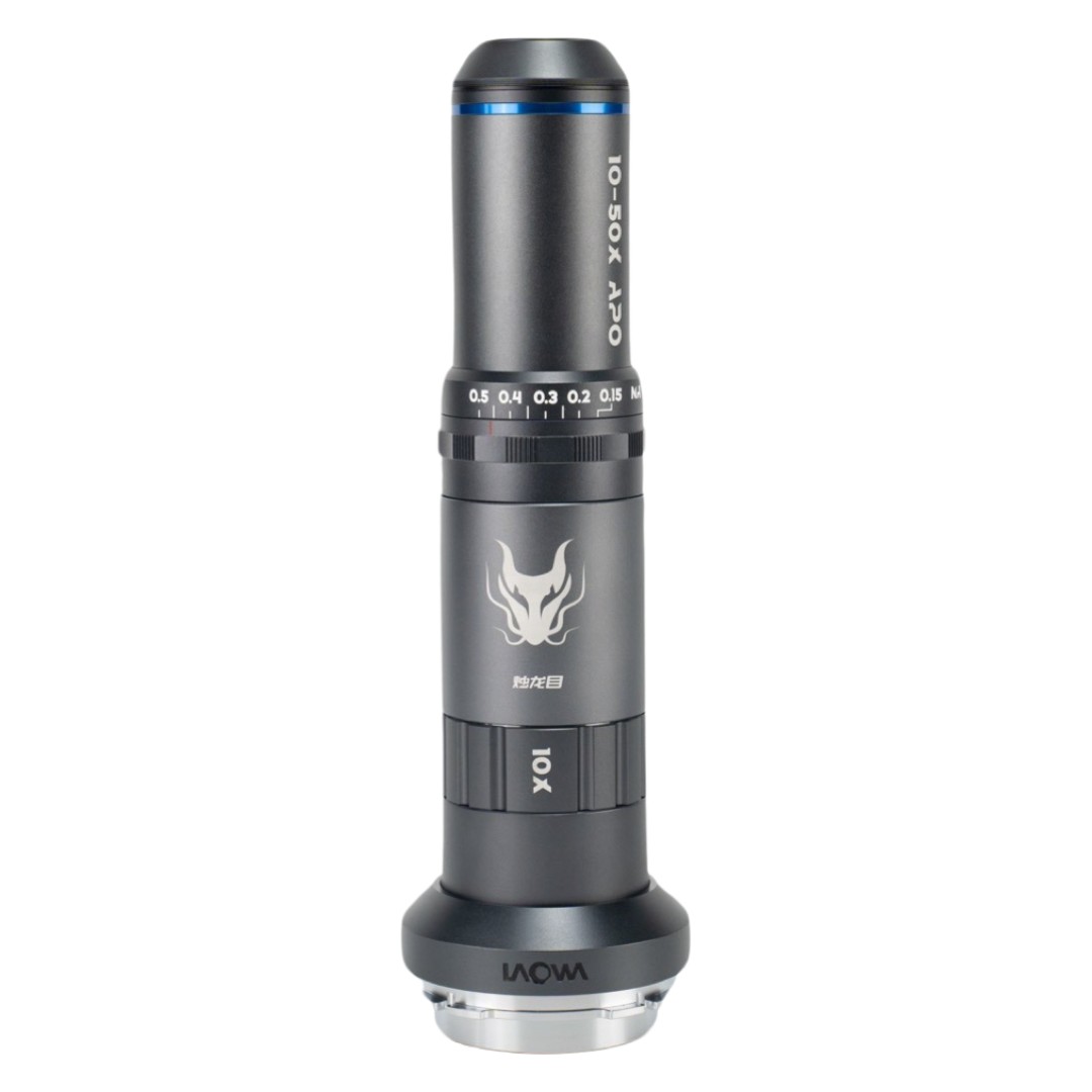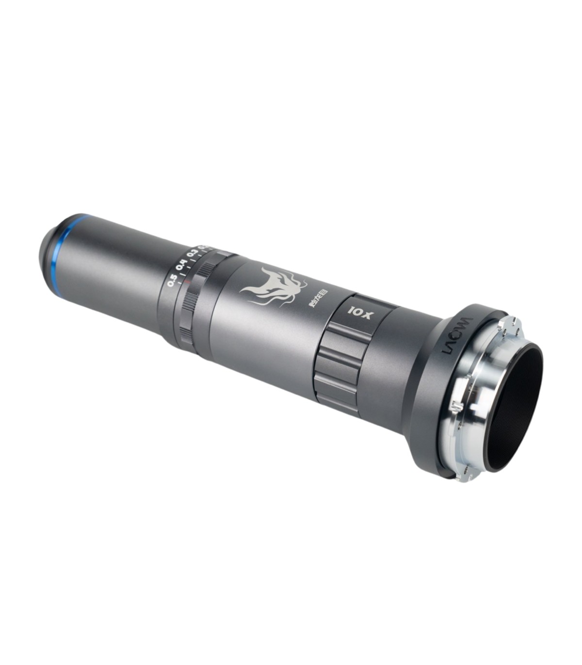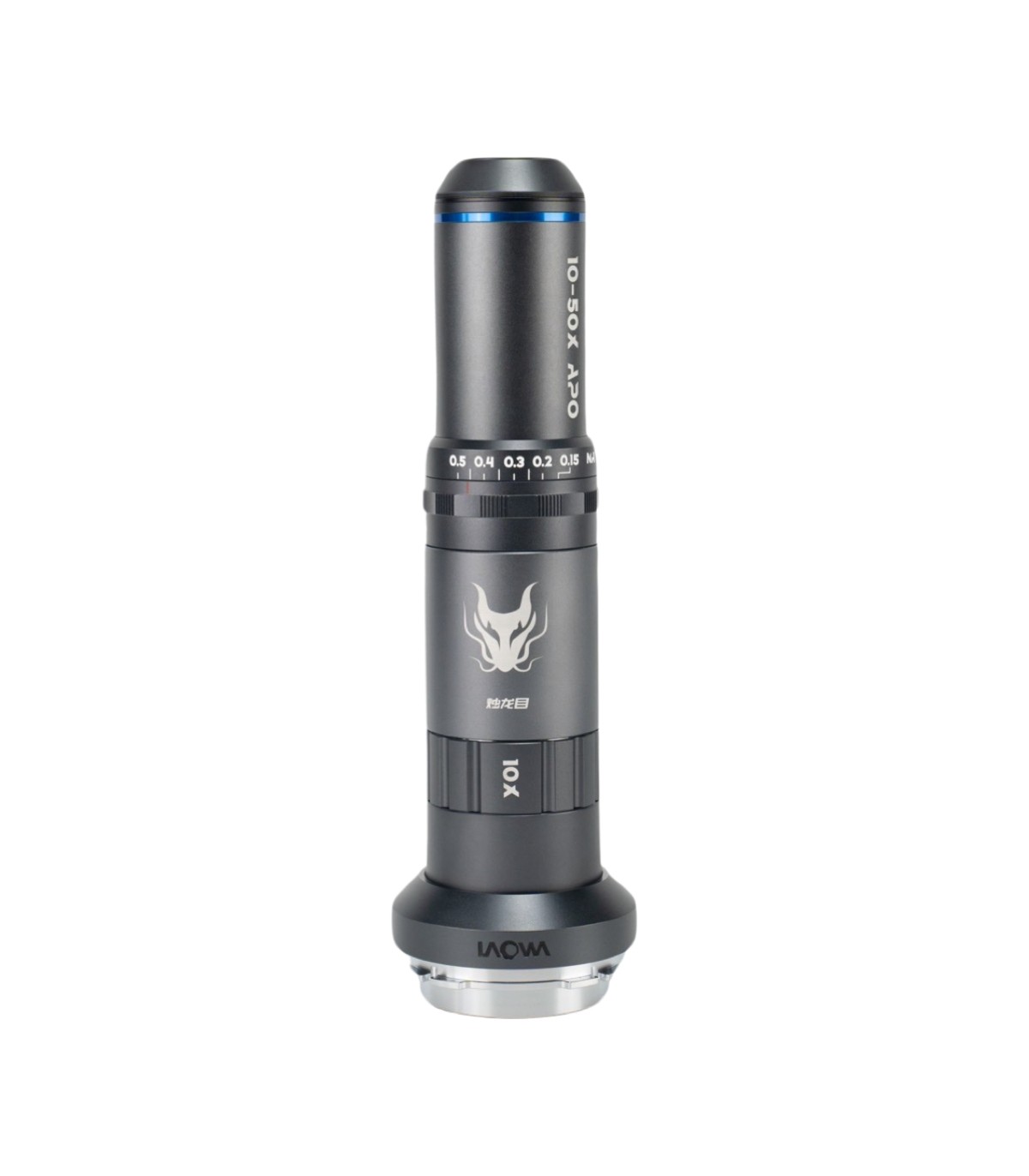 Óptica cámara para cine. Laowa Aurogon 20mm Full Frame 10/20/30/50x supermicro con montura PL de Arri; incluye maleta. La Aurogón es una óptica APO supermicroscópica con un juego de extensiones de 10, 20, 30 y 50 aumentos para el mercado de sensor Full Frame. Distancia de trabajo 20mm para tomas microscópicas, lo que brinda más oportunidades para ver en movimiento la antena de una hormiga o los ojos de una araña.