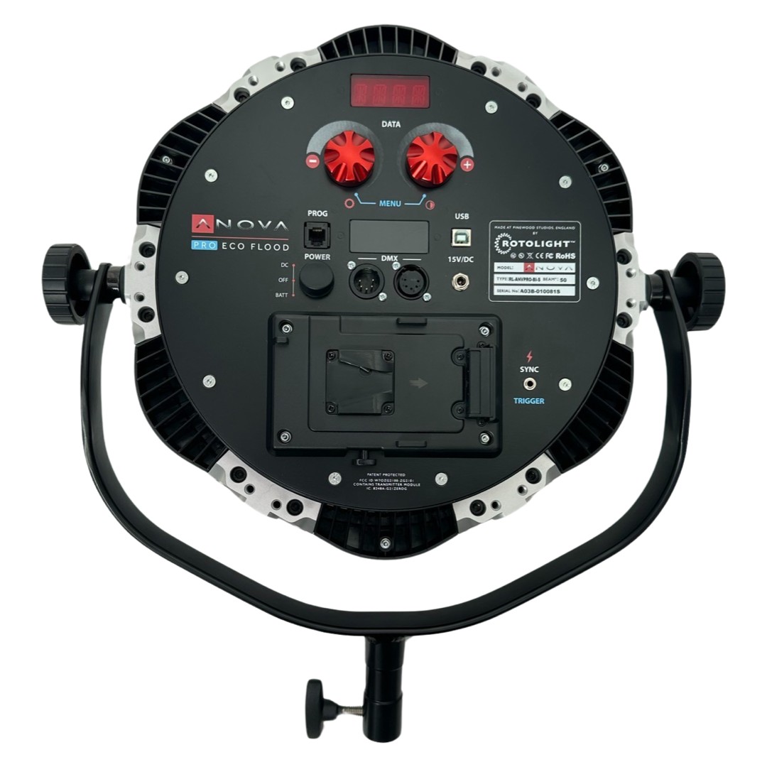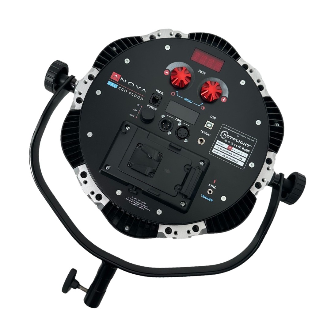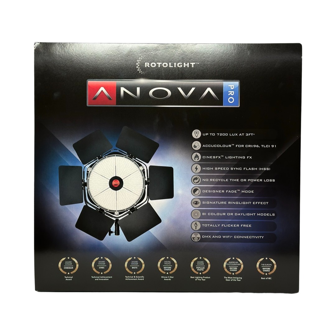 Panel Anova Pro 50º (versión 1ª) de 48W LED matricial Bicolor 3150K a 6300K, DMX, de Rotolight; luz dura con sombra poco marcada, haz 50º. Incluye panel 48W con horquilla con manguito 16mm/espárrago 29mm y control DMX, adaptador V-Lock y cable alimentación.