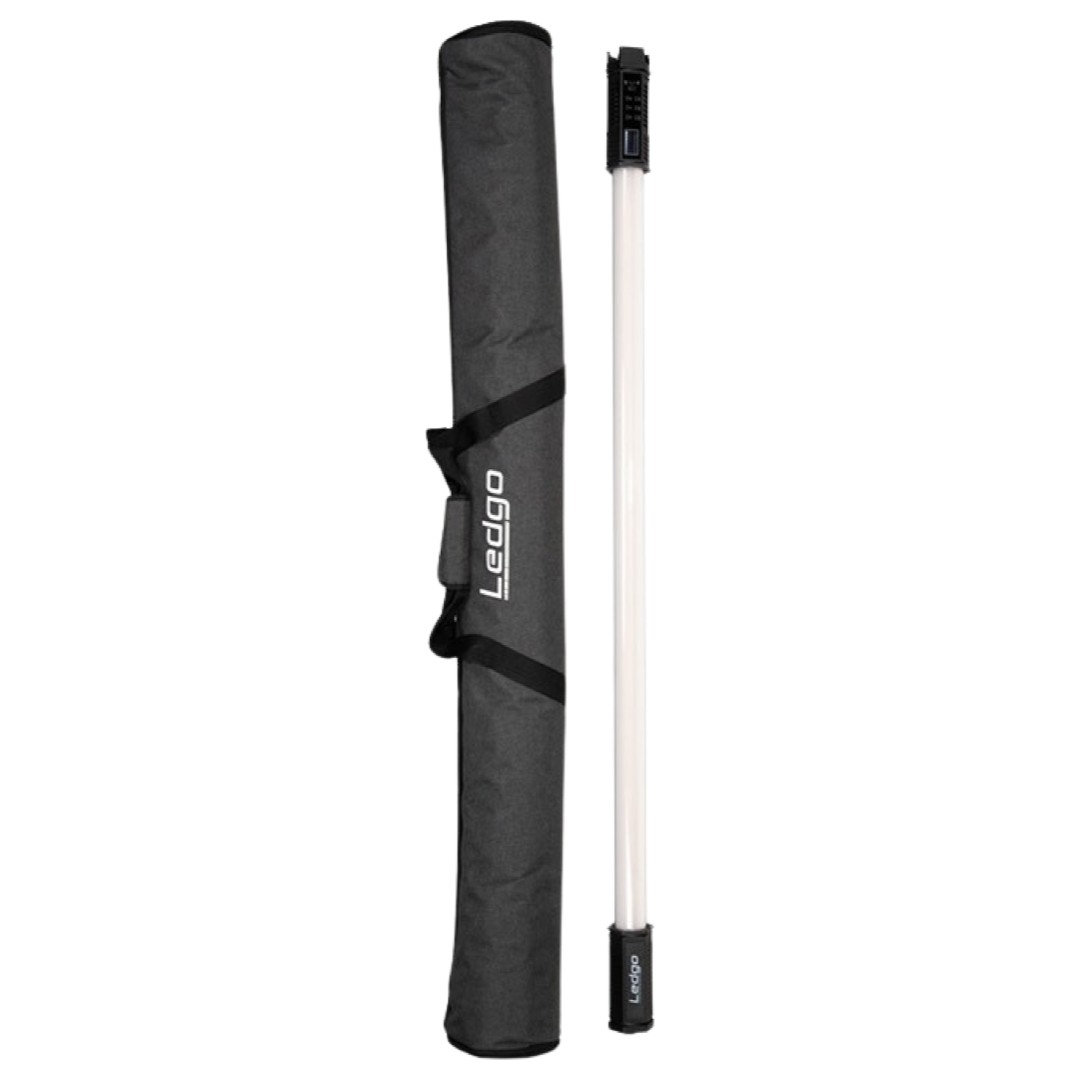 Tubo LED AltaTube de 120W RGBW 2700K a 7500K y 4' (120cm), con DMX, de Ledgo. Luz suave con sombra poco marcada, haz 180º. Modos de trabajo: CCT, HSI, gelatinas y efectos. Incluye tubo 129cm (100cm de luz) 120W AC, anillo para agarre con hembra M6, cable de alimentación, fuente de alimentación y bolsa. Datos fotométricos a 5600K: modo silent 674 Lux a 1m, modo normal 1.740 Lux a 1m, modo boost 2.160 Lux a 1m. Indicado para andar liger@ de equipaje y tener siempre un recurso a mano para una esquina, en un coche. Sus empuñaduras hexagonales permiten posarlo horizontalmente sin que se mueva.