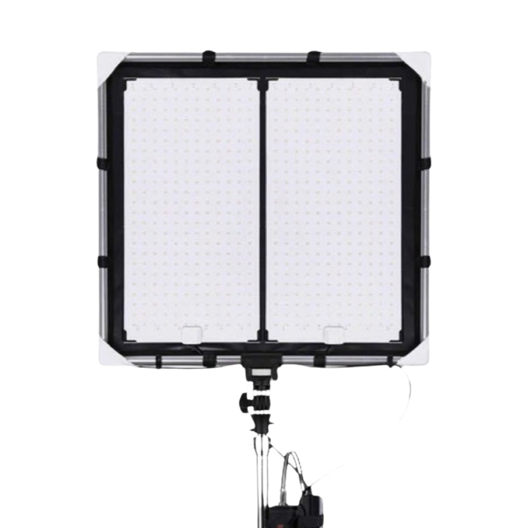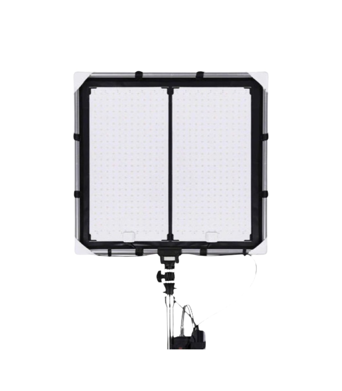 Kit 2 paneles flexibles Versatile de 72W LED matricial RGBWA 3200K a 5600K, DMX, 120º, LEDGO. Sus características principales son la ligereza y la flexibilidad. Modo de trabajo: CCT, HSI y efectos. Incluye 2 paneles de 72W de 51x26mm con marco clásico "cuadrado" de 60x60cm, rótula tilt-top con manguito 16mm, difusor, trasera negra, control AC/DC con V-Lock, cable a cabeza de 1,5m, cable alimentación, fuente de alimentación, adaptador V-Lock y maleta de lona para transporte. Datos fotométricos por panel a 5600K: SIN difusor: 2.175 Lux a 1m. Indicado para andar liger@ de equipaje y tener siempre un recurso a mano para una esquina, un personaje sentado en una mesa, en un coche...