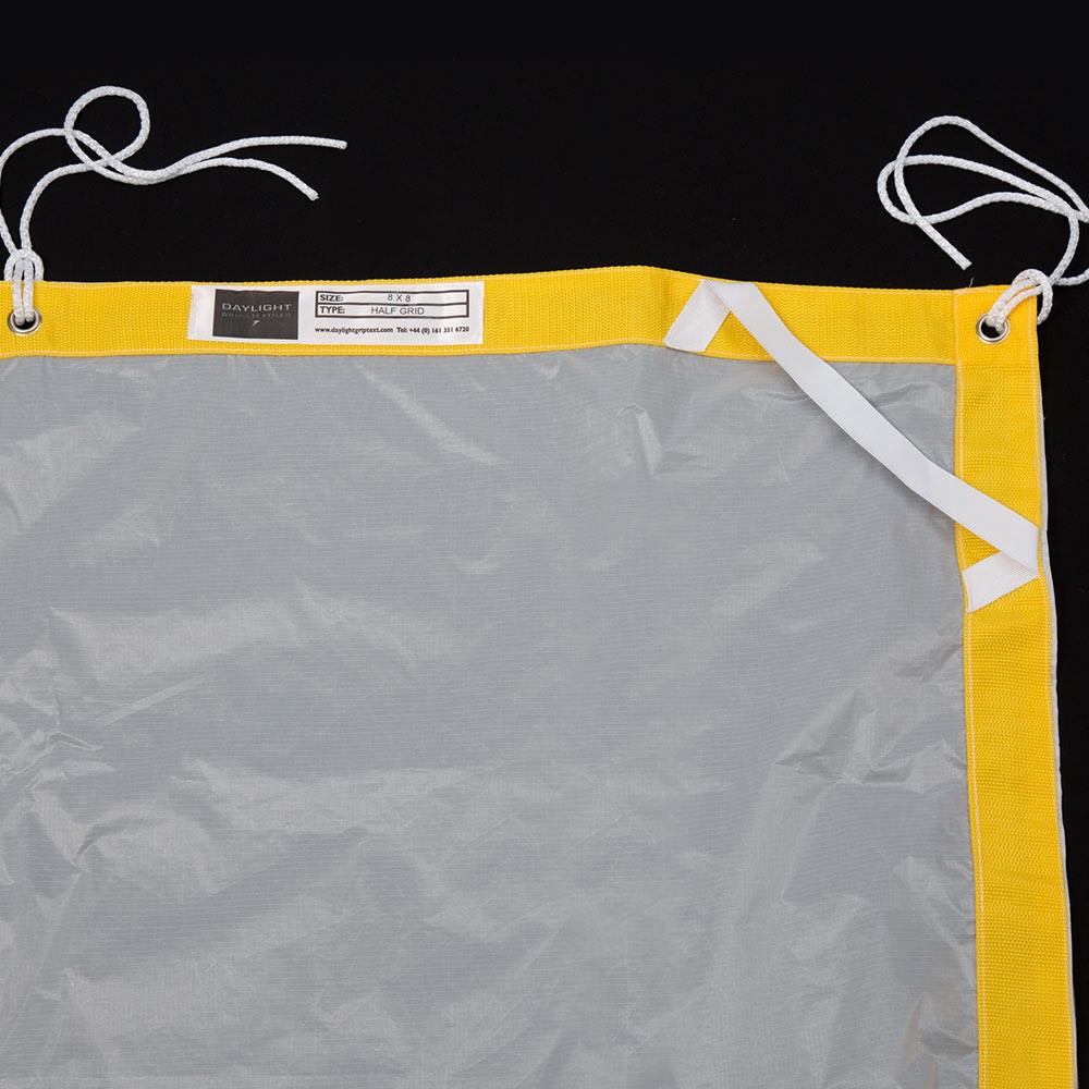 Textil para palio de 360x360cm (12x12'). Grid cloth 1/2 (para interiores). Difusor medio de tejido tramado reforzado similar a la seda. La tela de palio va reforzada por los cuatro lados y con ojales para las cintas de atar al palio; bolsa y cintas incluidos.