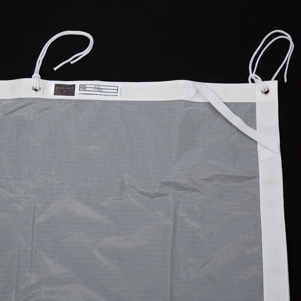Textil para palio de 360x360cm (12x12'). Grid cloth 1/4 (para interiores). Difusor moderado de tejido tramado reforzado similar a la seda. La tela de palio va reforzada por los cuatro lados y con ojales para las cintas de atar al palio; bolsa y cintas incluidos.
