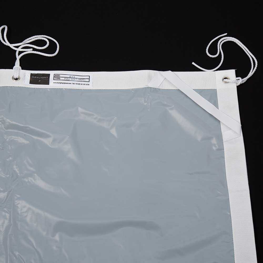 Textil para palio de 360x360cm (12x12'). Soft frost. Difusor super suave que permite combinar proyectores y reparte uniformemente su luz dejándola gentil y "sin sombras". La tela de palio va reforzada por los cuatro lados y con ojales para las cintas de atar al palio; bolsa y cintas incluidos.