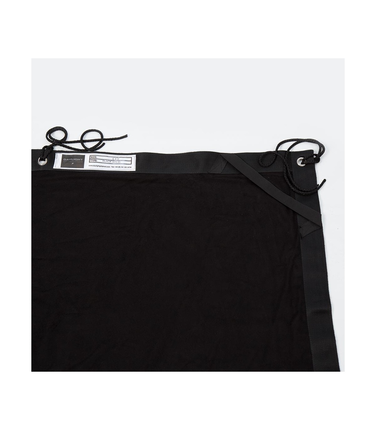 Textil para palio de 610x610cm (20x20'). Tela molton negra. Bloquea la luz un un 99%; viene a ser la bandera de recorte de los palios. La tela de palio va reforzada por los cuatro lados y con ojales para las cintas de atar al palio; bolsa y cintas incluidos.