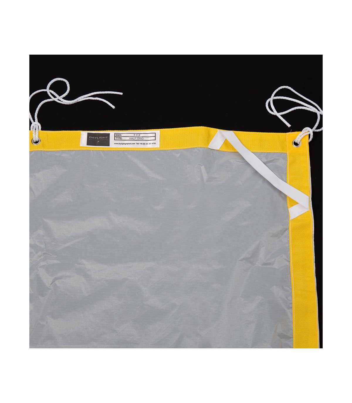Textil para palio de 610x610cm (20x20'). Grid cloth 1/2 (para interiores). Difusor medio de tejido tramado reforzado similar a la seda. La tela de palio va reforzada por los cuatro lados y con ojales para las cintas de atar al palio; bolsa y cintas incluidos.