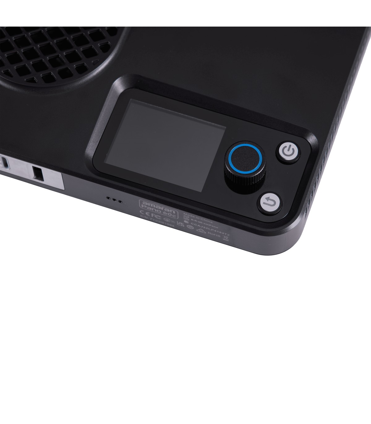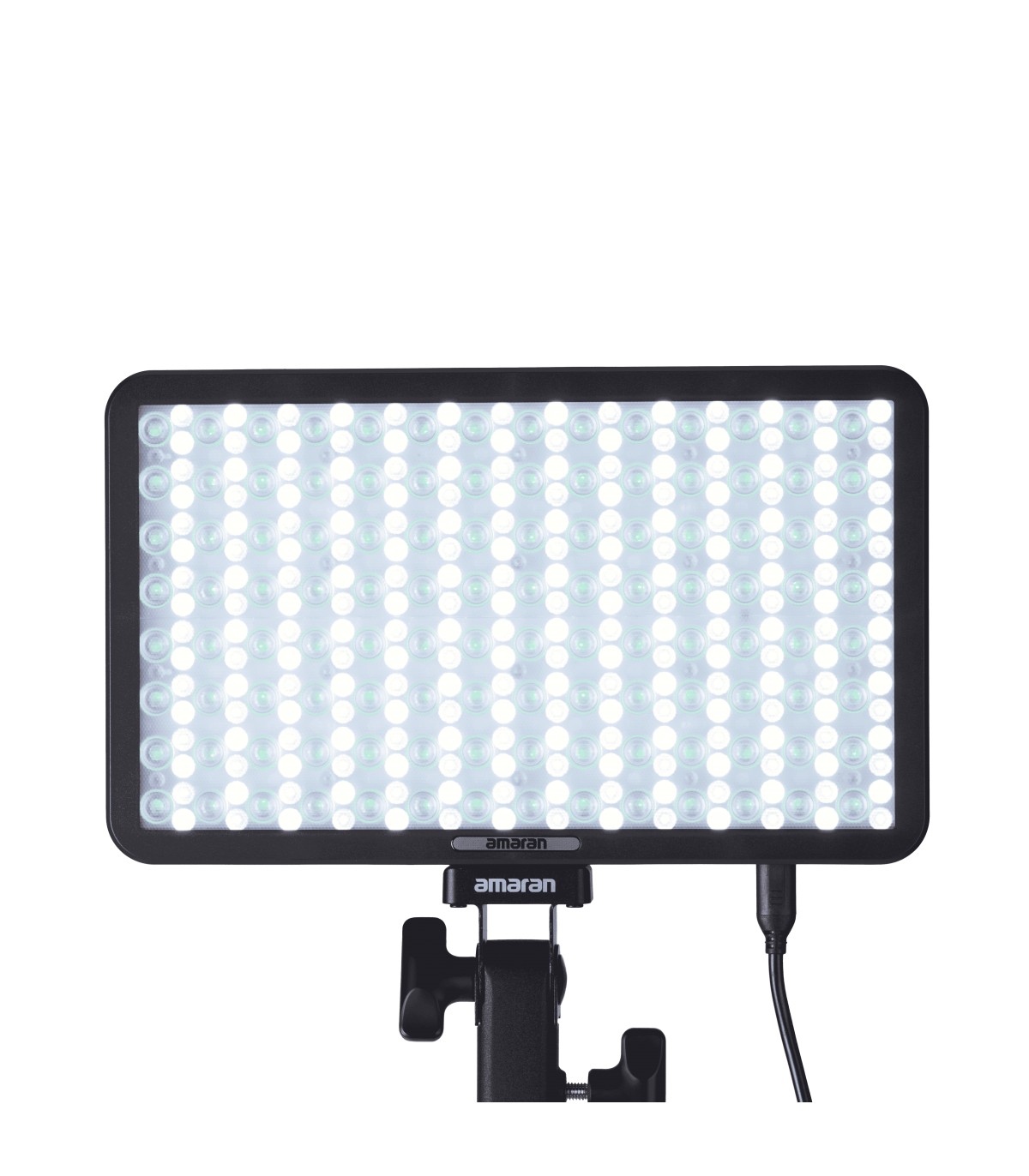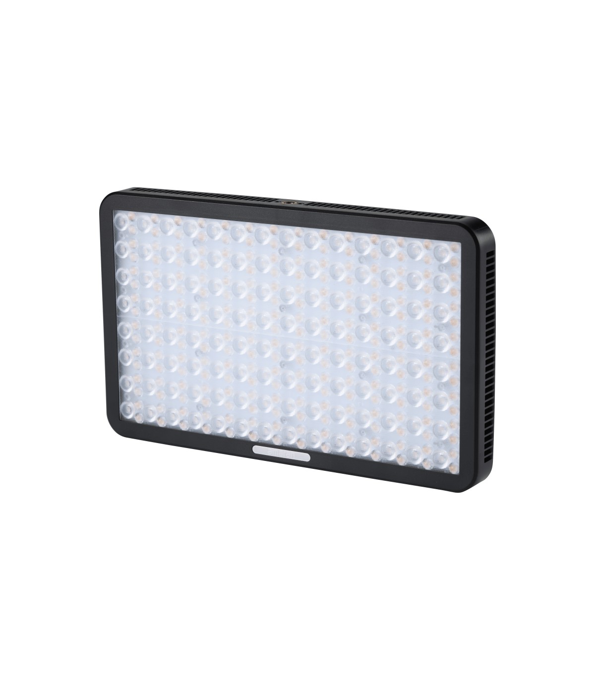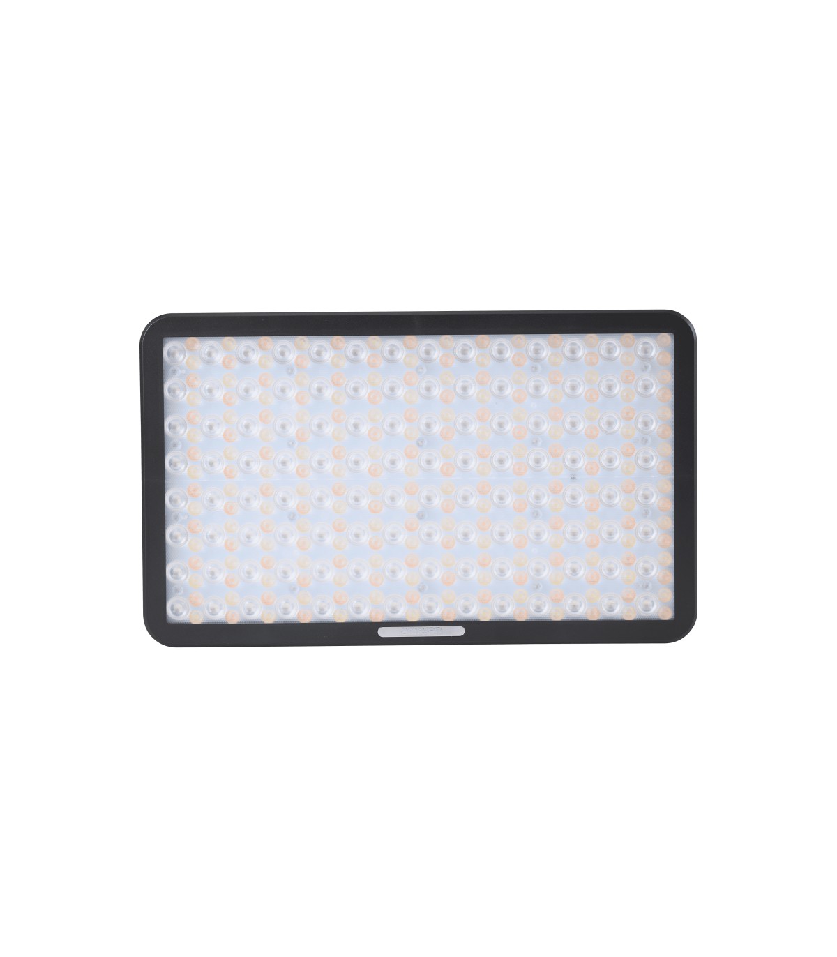 Panel Amaran Pano 60c de 60W, con LED matricial RGBWW 2,300K a 10,000K (1,800K a 20,000K con modo CCT+), en color charcoal (carbón). Panel compacto y portátil (25,5 x 15,5cm; 0,6kg), con modo de ventilador silencioso o inteligente. Modos de trabajo: CCT con ajuste verde/magenta, HSI, gelatinas y 12 efectos (fuegos artificiales, bombilla, paparazzi, fuego, TV, etc).