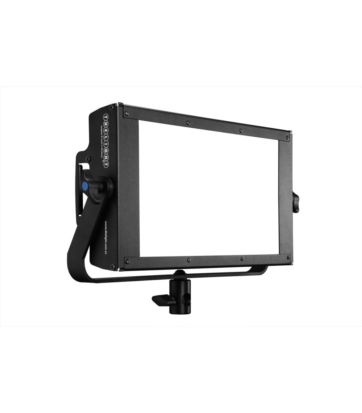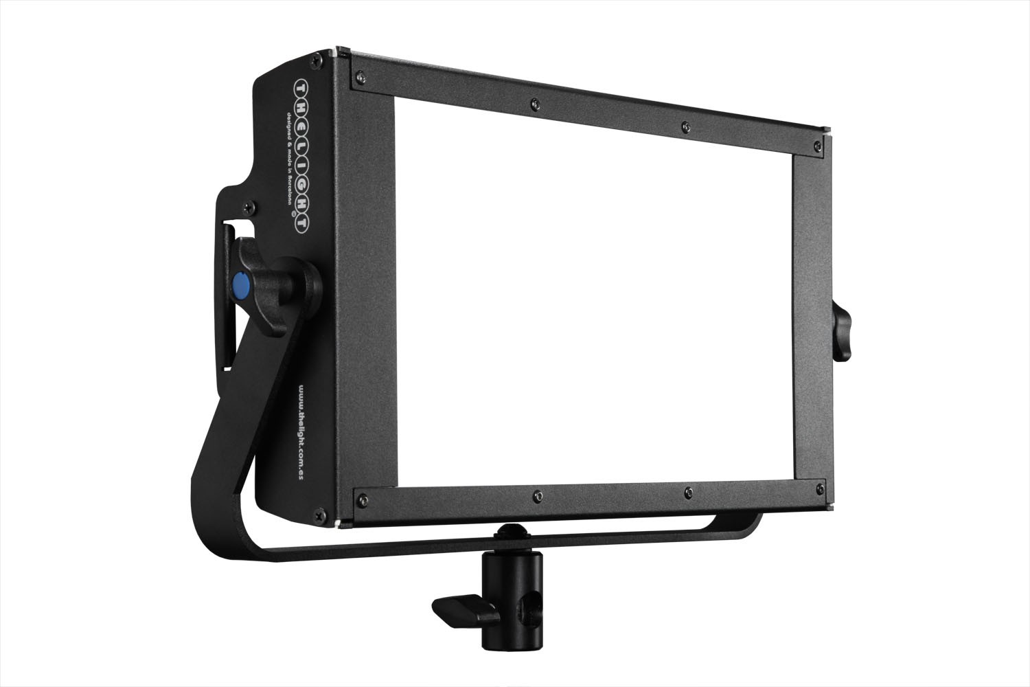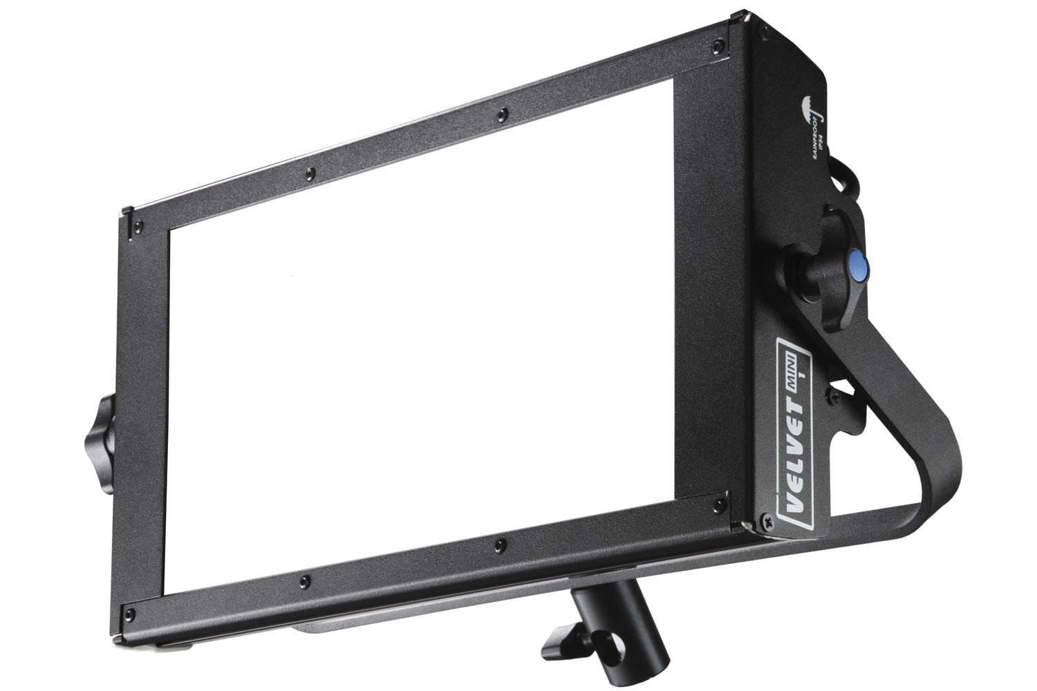 Panel LED Mini 1 Cine/Location de 50W LED matricial Bicolor 2700K a 6500K, con dimmer local, de Velvet; SIN fuente de alimentación; softlight con sombra suave, haz 100º. Incluye cabeza 50W con horquilla y manguito 16mm, y control local. Datos fotométricos a 5600K: 1.200 Lux a 1m, 170 a 3m. Indicado para rodajes de equipos pequeños en exterior por su alto índice IP54 para utilizarlo como luz de relleno; SIN control DMX.