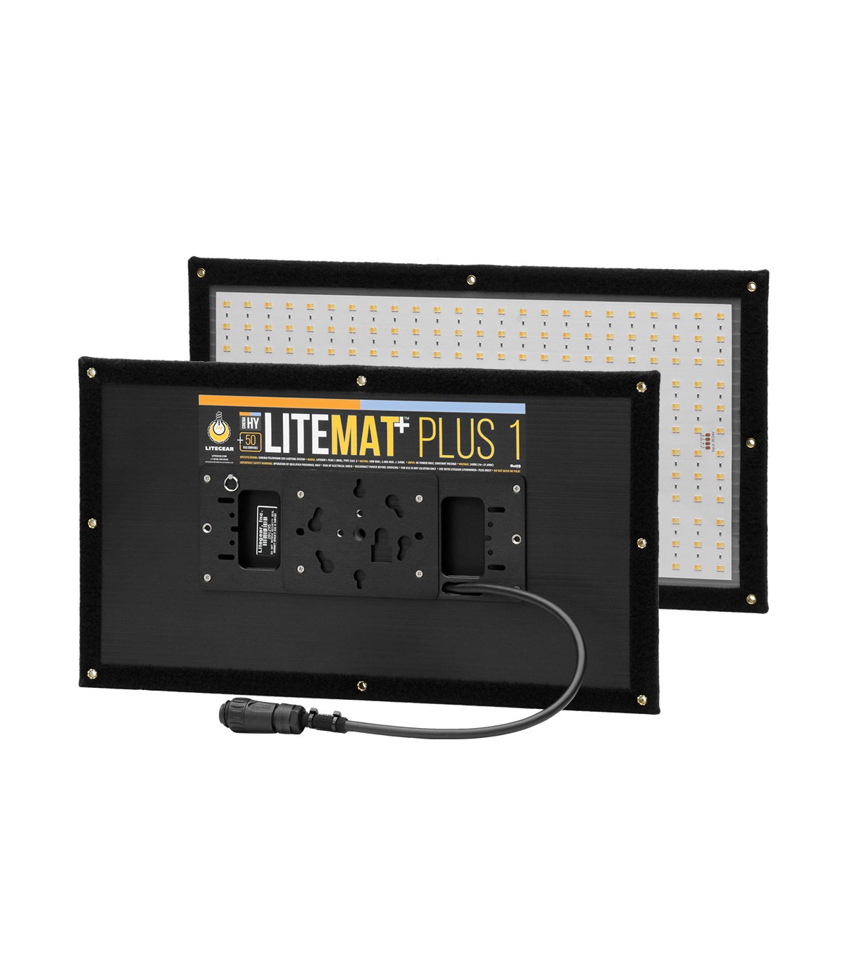 Panel ligero LiteMat Plus 1 de 50W LED Bicolor 2600K a 6200K, WDMX, de LiteGear. Su característica principal es la ligereza, pero al ser panel matricial genera multisombras si lo ponemos muy cerca de un objeto a una pared, por esa razón viene con tres difusores para convertirlo en softlight con sombra medio suave, haz 60º con eggcrate plástico cromado. Modo de trabajo: CCT con ajuste verde/magenta. Incluye panel 29x53cm de 50W con brazo montura K y manguito 16mm, 3 difusores, nido de abeja rígido (eggcrate), control 200W WDMX, cable a cabeza de 7m, cable alimentación, fuente de alimentación y bolsa de transporte. Datos fotométricos a 6000K SIN difusores: 2.549 Lux a 0.9m, 918 a 1.5m. Sistema liviano diseñado para cine, televisión y vídeo. Al proporcionar LEDs espaciados uniformemente distribuidos en un área grande, LiteMat crea una luz suave sin necesidad de difusión. El método de “pixelización suave” permite que la unidad logre niveles de brillo mientras mantiene un tamaño de 23mm de grosor y un peso de 1.1kg. Indicado para andar liger@ de equipaje y tener siempre un recurso a mano para una esquina, un techo...